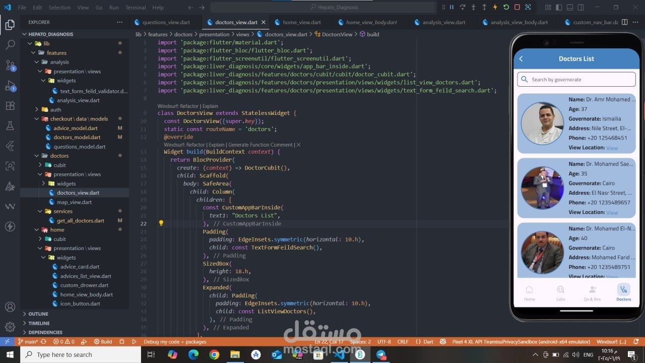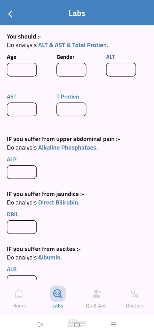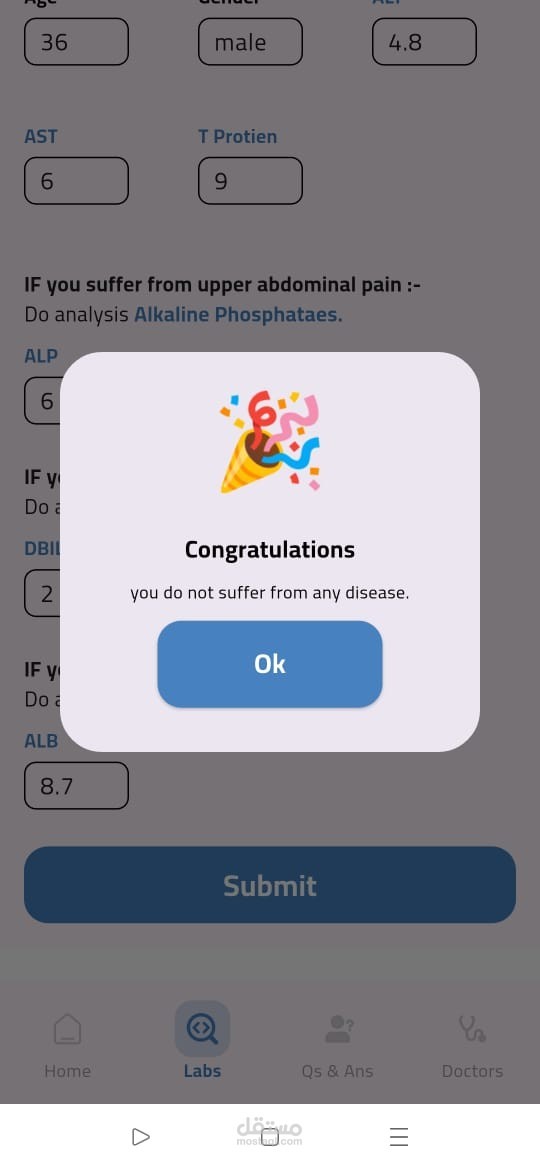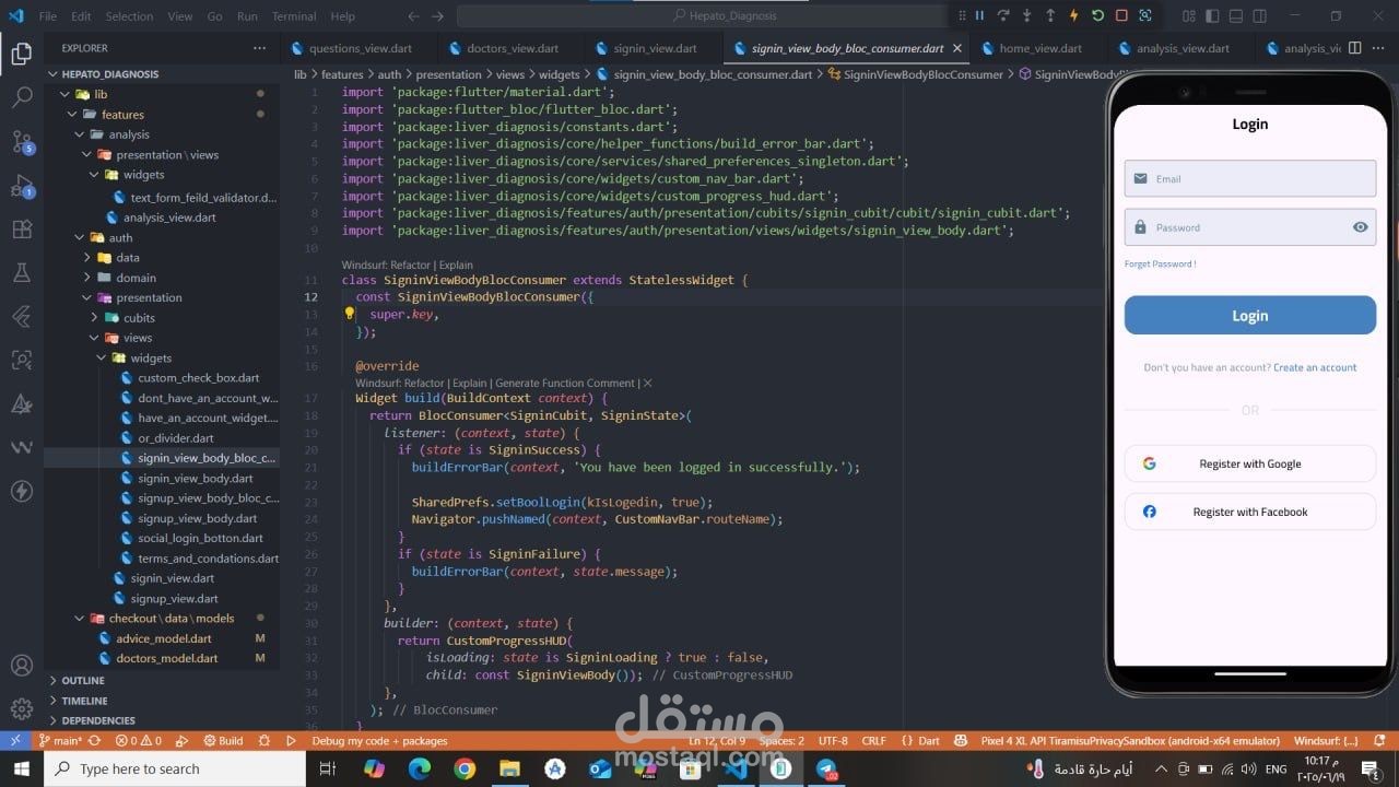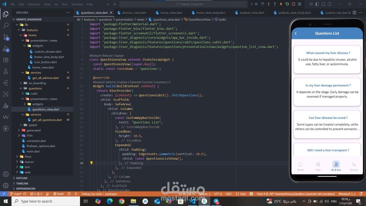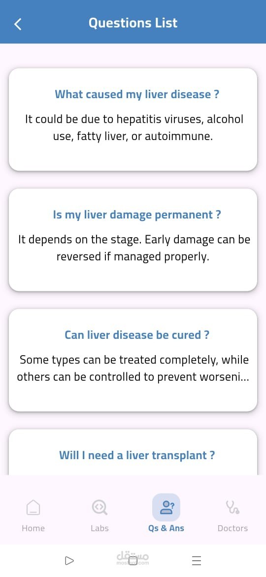 تطبيق صحي مبني باستخدام Flutter يقدّم تشخيصًا مبدئيًا لأمراض الكبد بالاعتماد على الذكاء الاصطناعي وتعلم الآلة. يقوم التطبيق بتحليل نتائج التحاليل الطبية باستخدام ML Model للتنبؤ بالحالة المحتملة للمريض. تم تطبيق MVVM Architecture مع Cubit لإدارة الحالة، ودمج Firebase Authentication لتسجيل الدخول الآمن، بالإضافة إلى استخدام Maps API لمساعدة المستخدمين في العثور على أطباء متخصصين قريبين حسب المحافظة، مع واجهة مستخدم مرنة وسهلة الاستخدام.