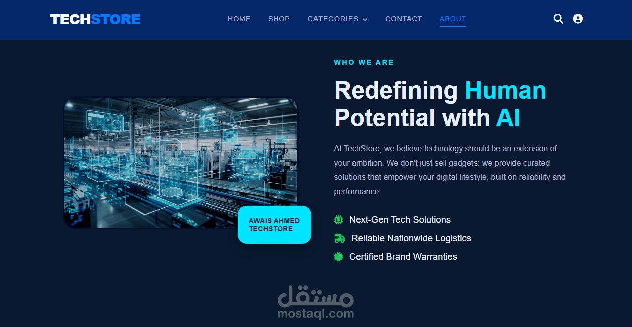 I developed TechStore, a high-performance E-commerce web application designed to provide a seamless shopping experience. The project focuses on modern UI/UX principles and robust front-end architecture.