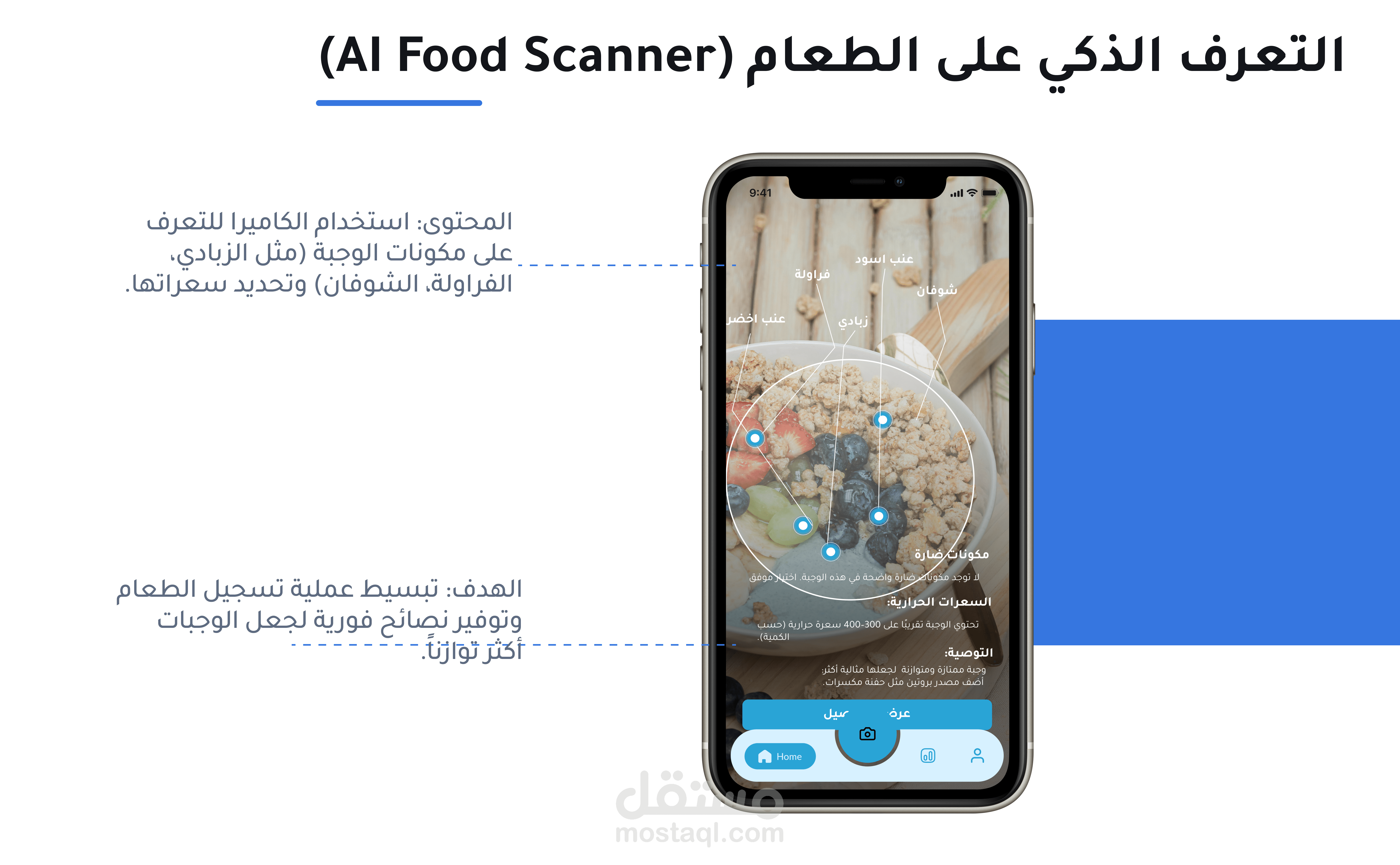 AI Food Scanner: التعرف الذكي على الطعام وحساب السعرات عبر الكاميرا.