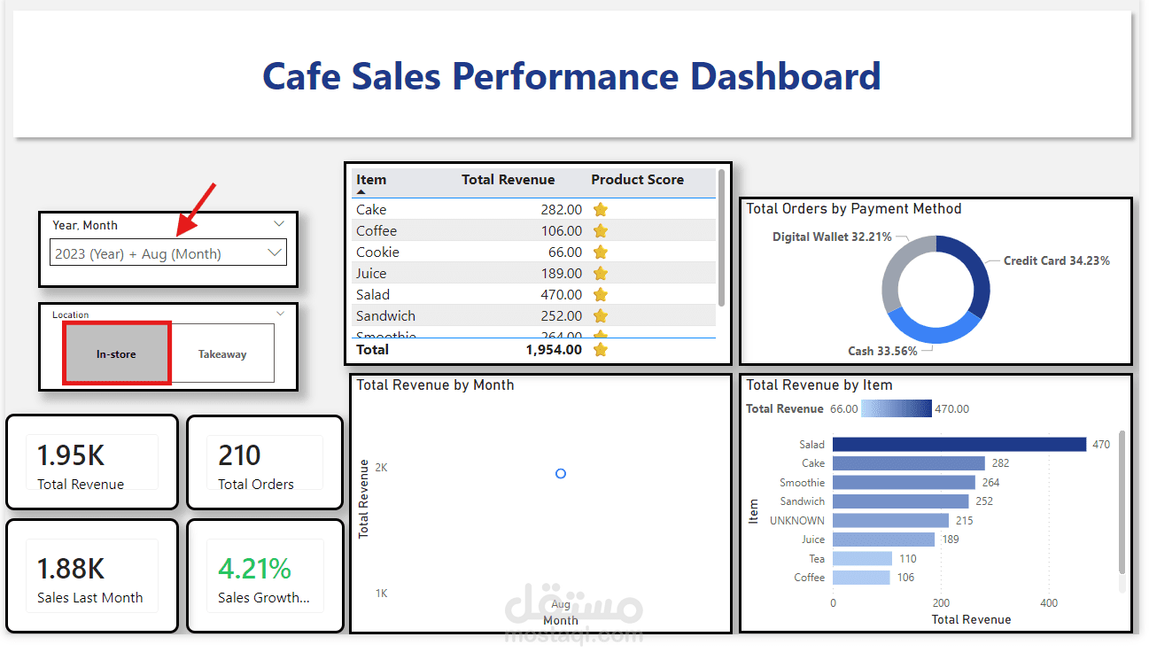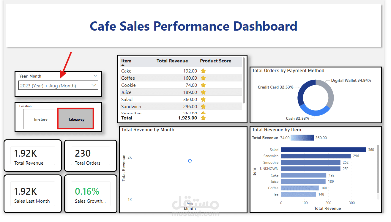 مشروع تحليل بيانات متكامل (End-to-End BI Solution) يهدف إلى تحويل بيانات مبيعات كافيه غير منظمة إلى Dashboard تفاعلي يساعد أصحاب القرار على فهم الأداء وتحسين الأرباح.
