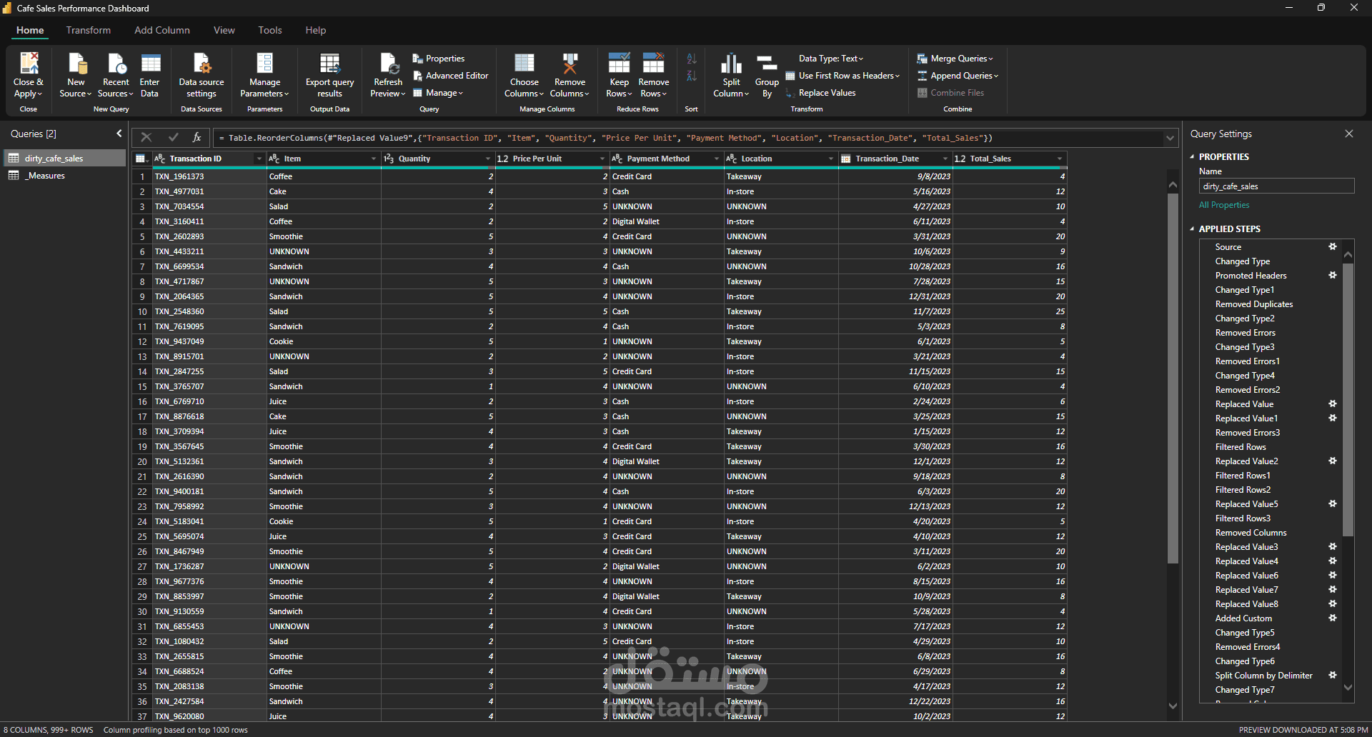 ? بدأت بمعالجة بيانات خام تحتوي على أخطاء وقيم ناقصة ومشاكل في التنسيق، ثم قمت بتنظيفها باستخدام Power Query وبناء Pipeline متكامل للـ ETL.