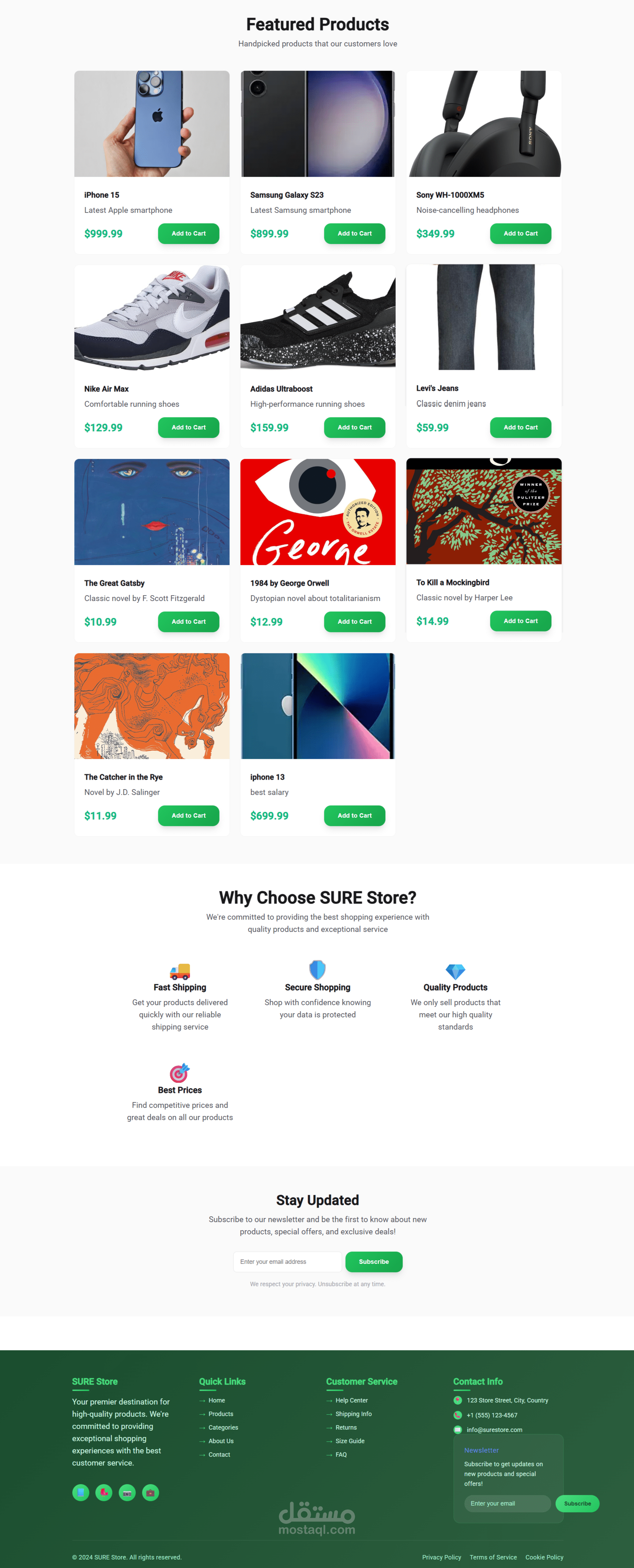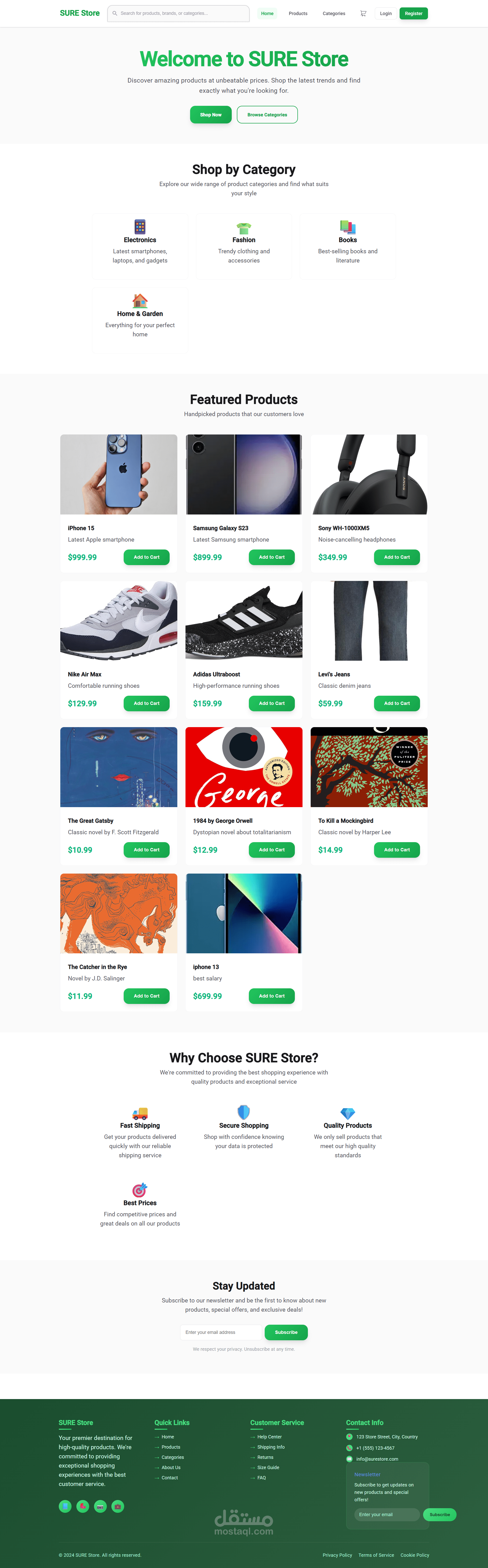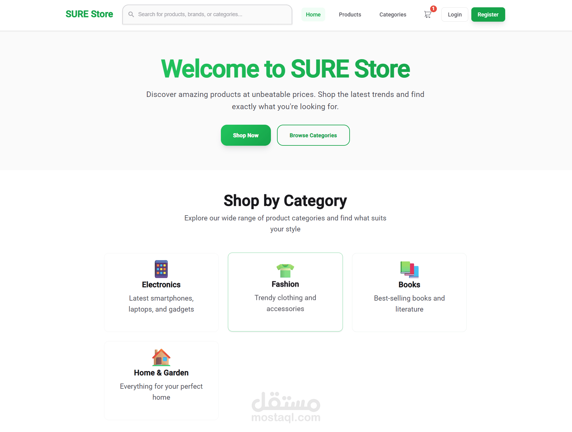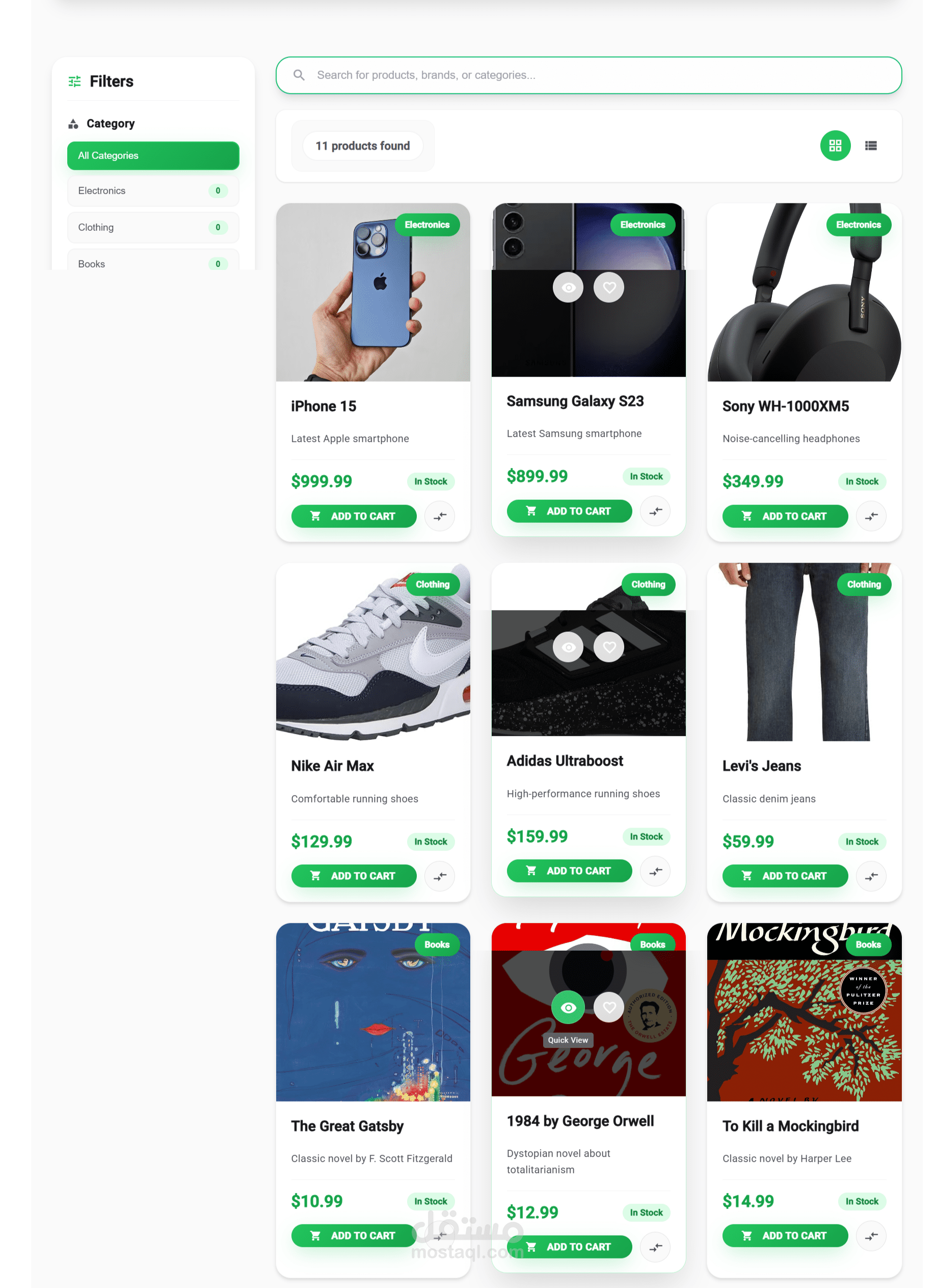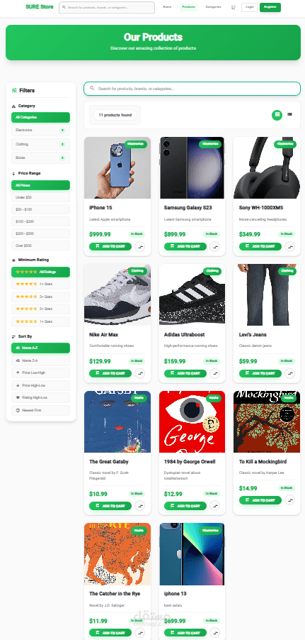 قمت بتطوير تطبيق تجارة إلكترونية متكامل **Full-Stack** باستخدام **ASP.NET Core** و **Angular**. قمت بتنفيذ **RESTful APIs**، ونظام **المصادقة باستخدام JWT**، بالإضافة إلى **الصلاحيات المعتمدة على الأدوار (Role-Based Authorization)** باستخدام **Entity Framework Core** مع **SQL Server**. كما طبّقت **Clean Architecture** ومبادئ **SOLID** وأنماط **Repository / Service** لضمان قابلية التوسع وسهولة الصيانة، مع تقديم **واجهة مستخدم متجاوبة** وتكامل آمن وفعّال مع الـ Backend.