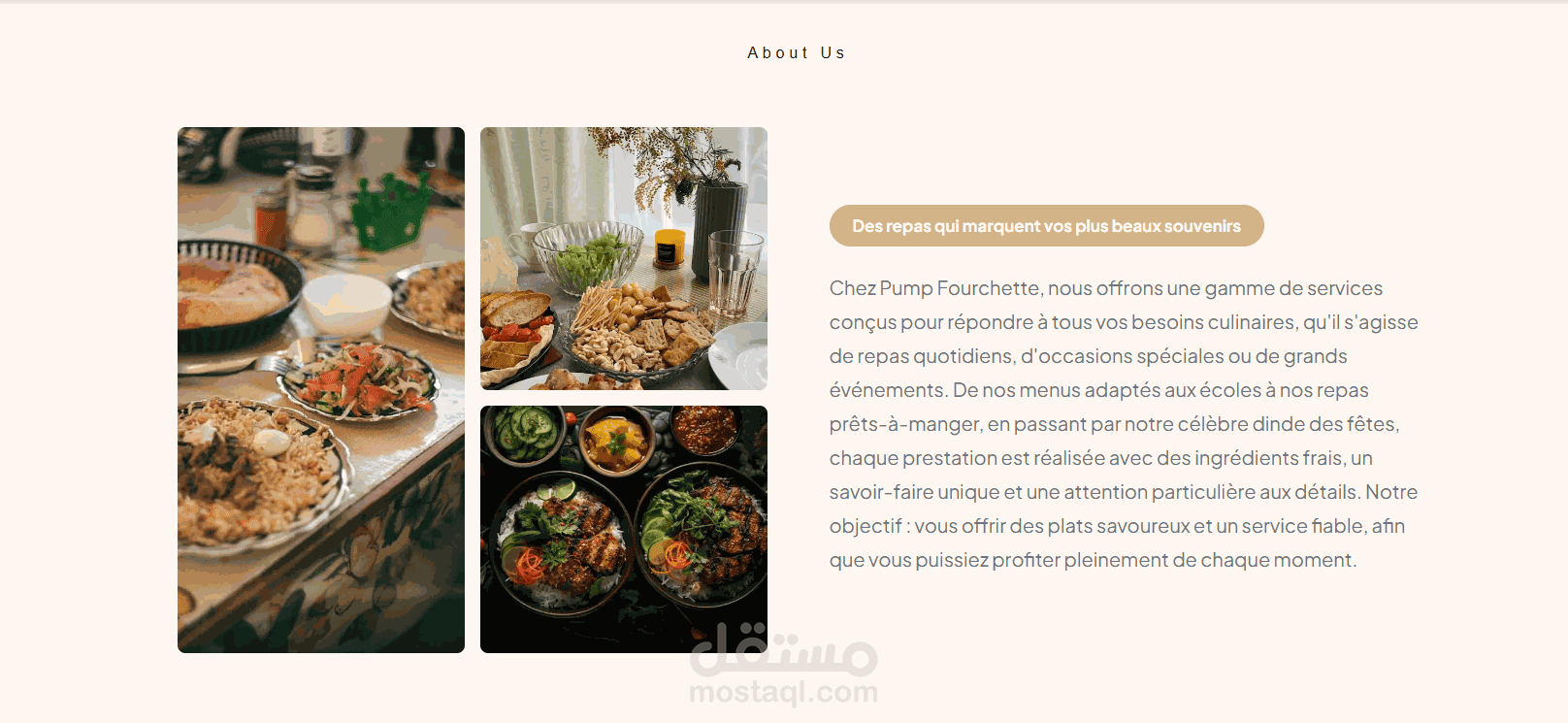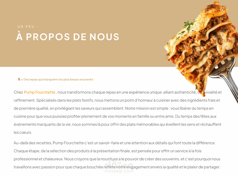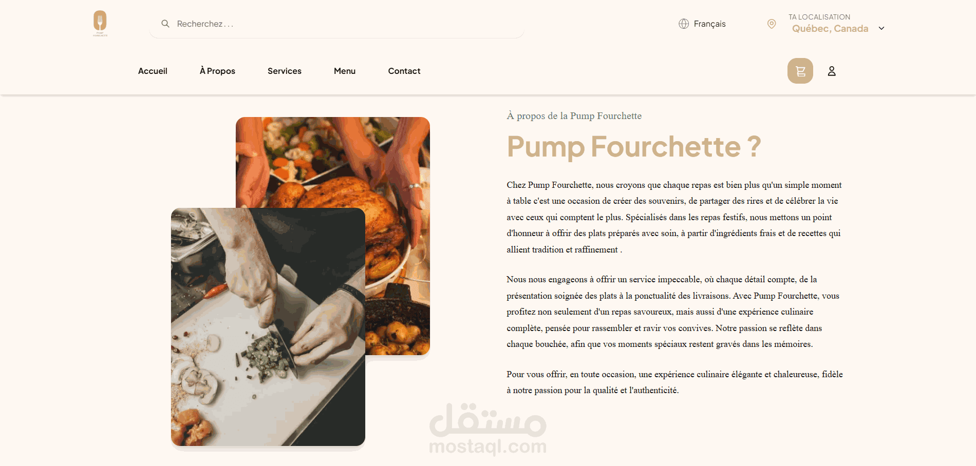 قمت بتصميم وتطوير الموقع الرسمي لـ Pump Fourchette، وهي شركة طعام كندية متخصصة في تحضير وتوصيل الوجبات الاحتفالية والعائلية.