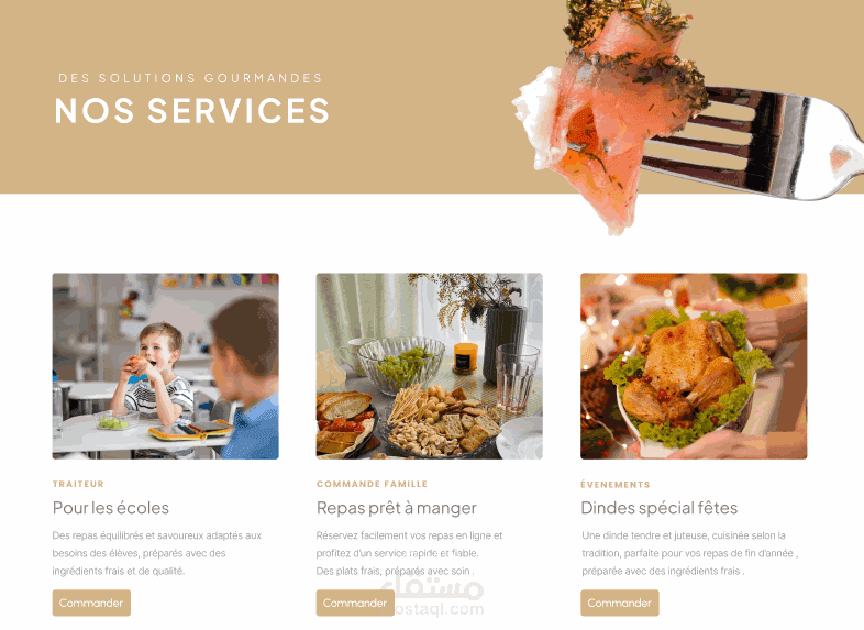 عرض 5 خدمات مختلفة: تموين المدارس، طلبات عائلية، ديك رومي للأعياد، وجبات نهاية الأسبوع، مناسبات خاصة