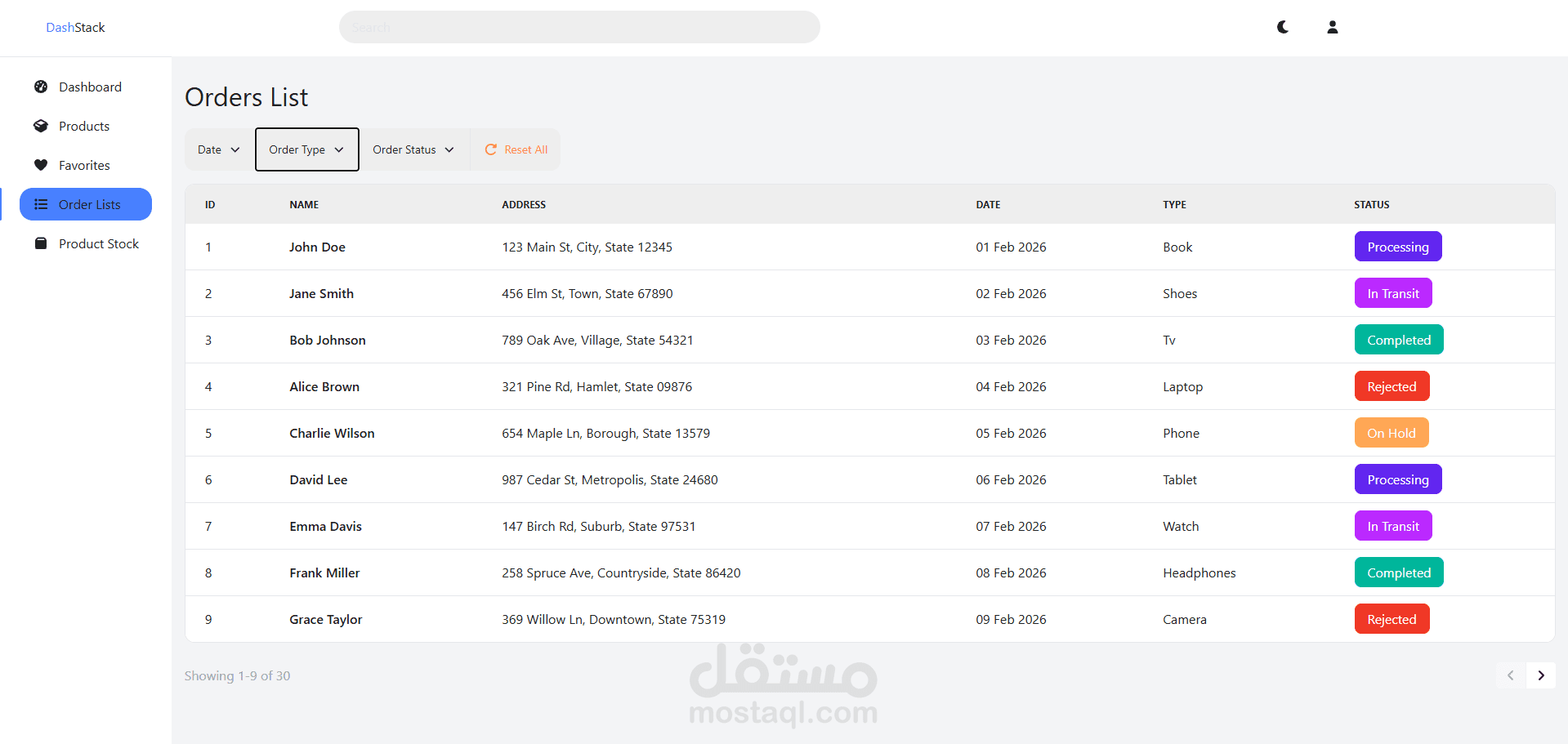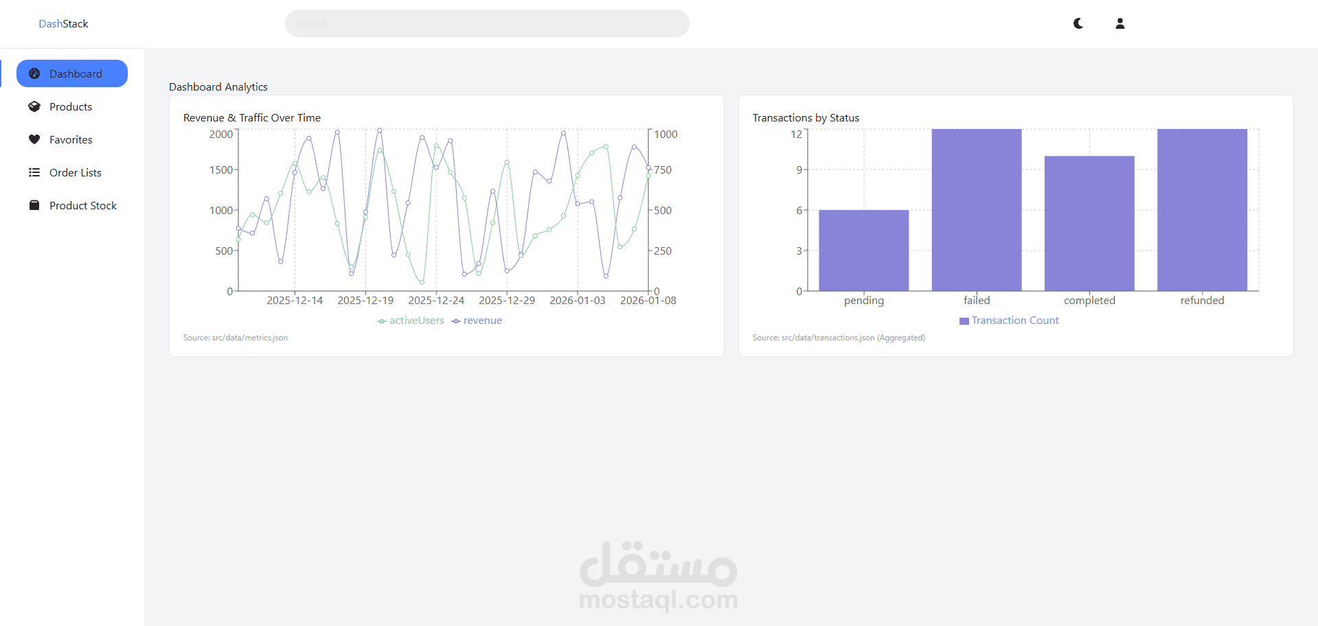 DashStack هو نظام Dashboard متكامل تم تطويره لإدارة المنتجات والمخزون بشكل احترافي وسهل الاستخدام، مع التركيز على تقديم تجربة مستخدم سريعة وسلسة.