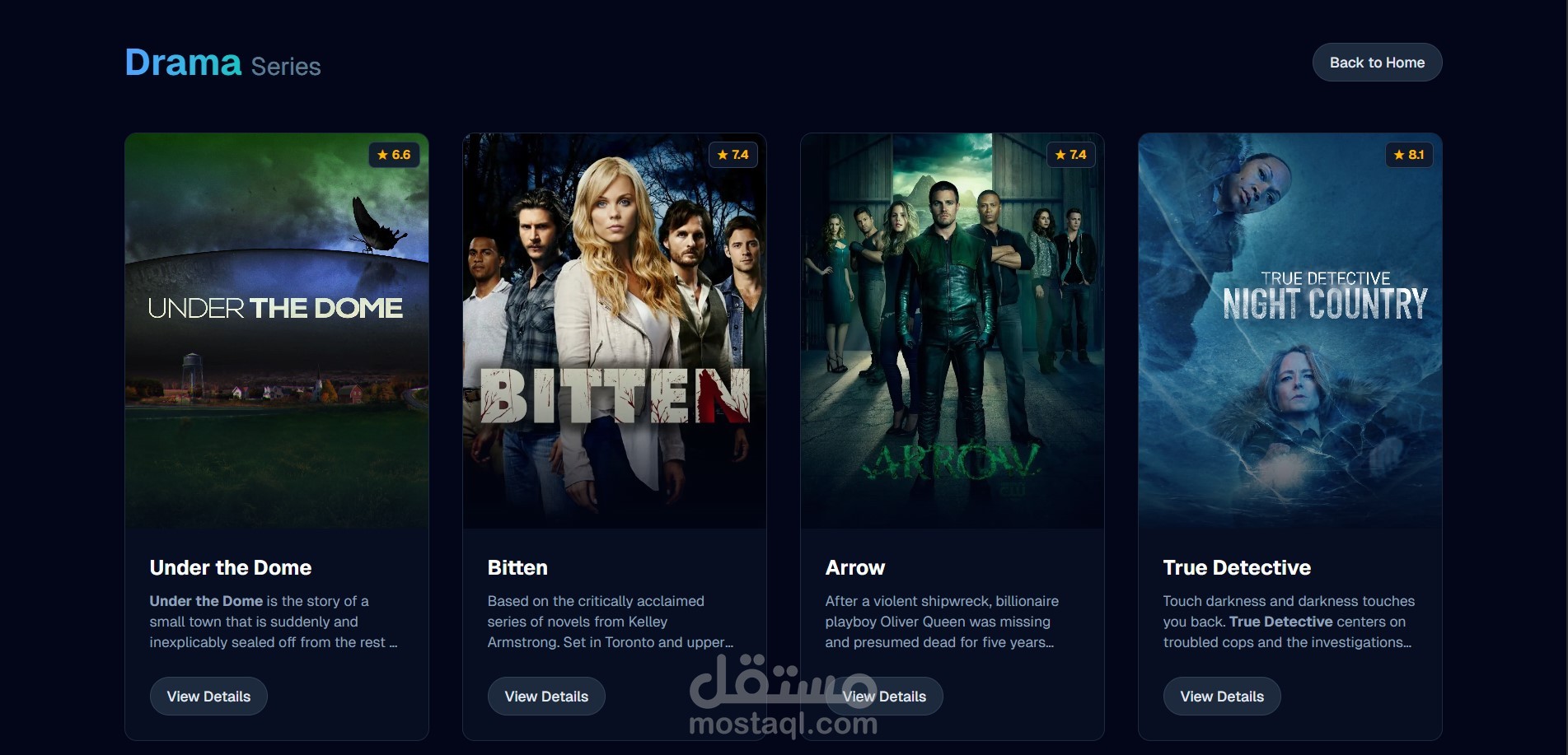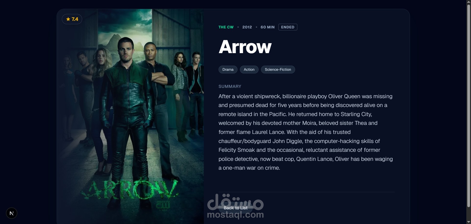 Responsive Grid System: تصميم واجهة عرض شبكية متجاوبة تعرض ملصقات الأفلام وبياناتها بدقة عالية على مختلف أحجام الشاشات.