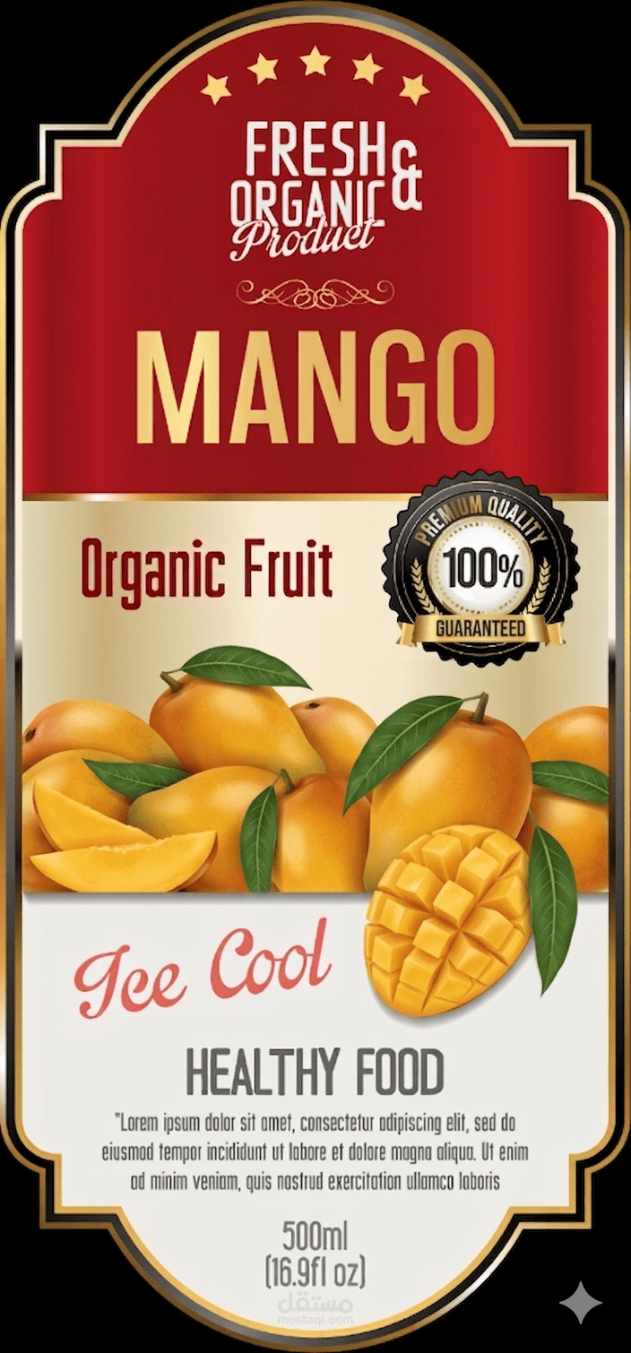 تصميم إعلاني لمنتج عصير مانجو.