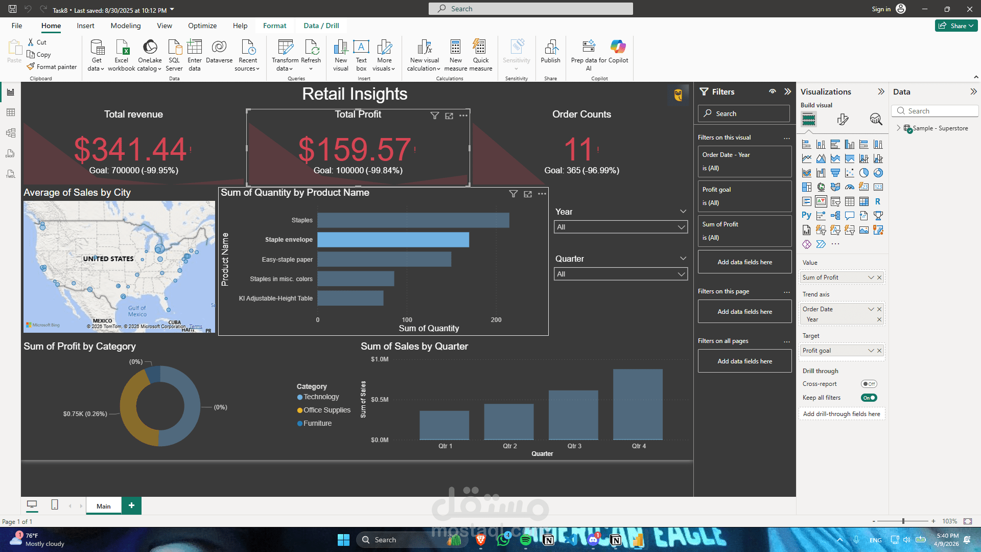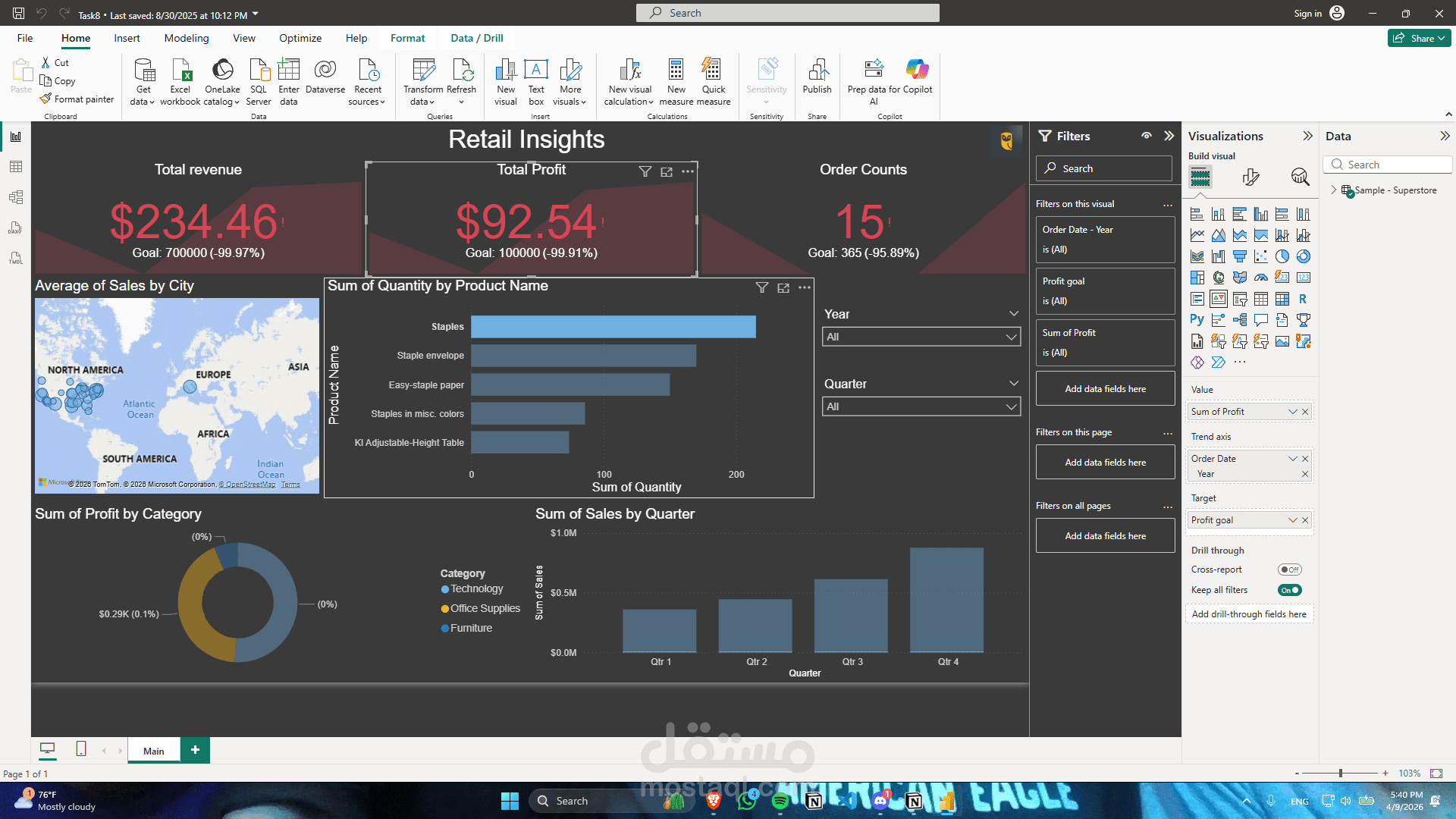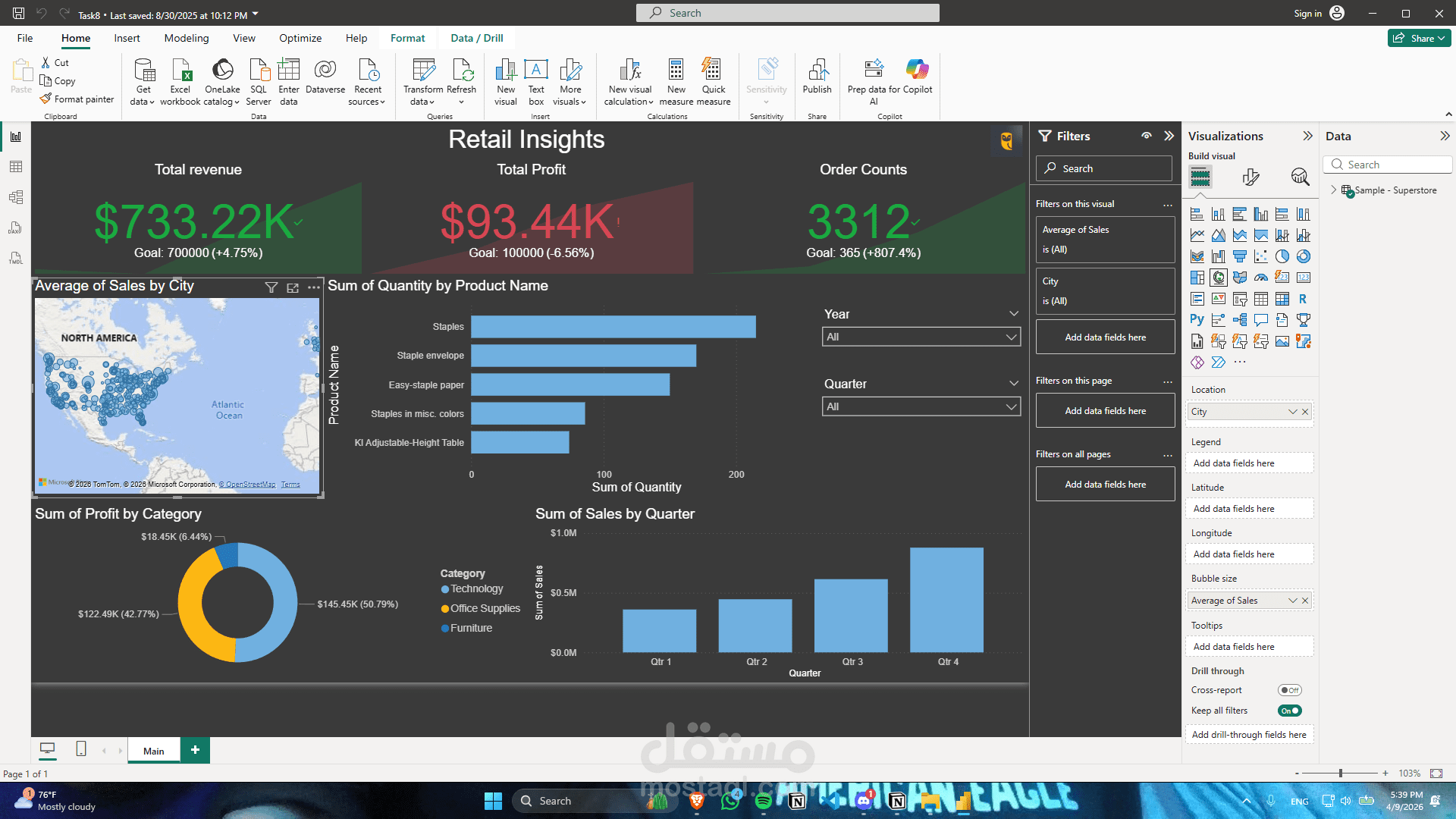 Used Power BI to create an interactive dashboard from a cleaned retail dataset