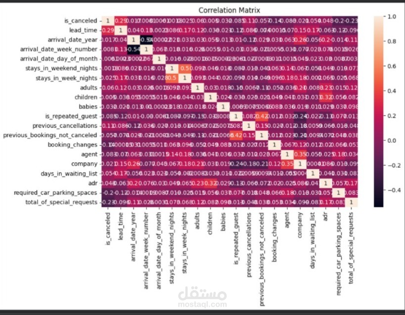 نموذج تعلم آلي لتوقع حجوزات الفنادق وإلغاءها.