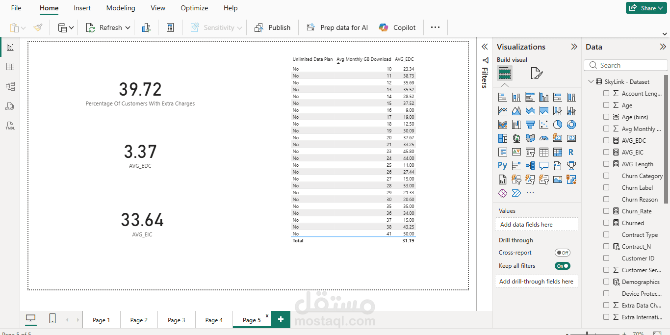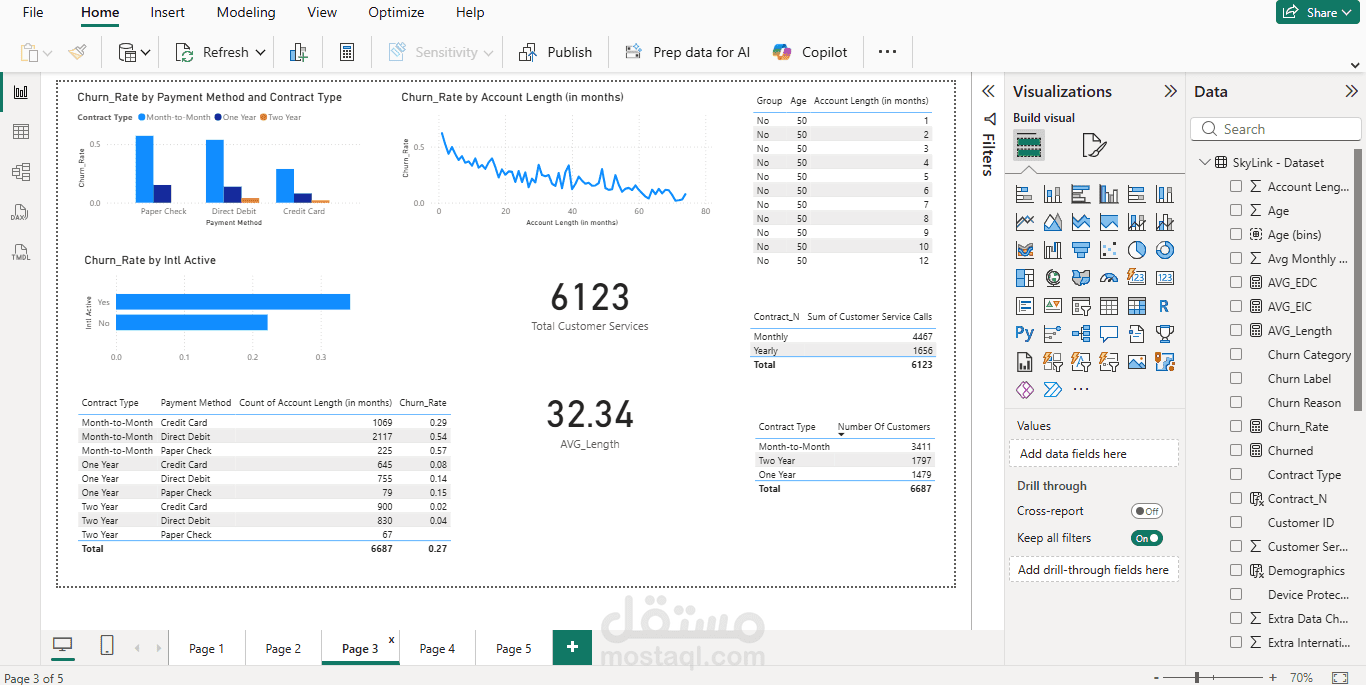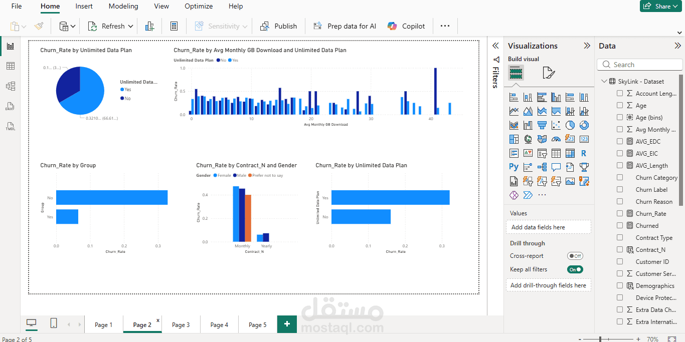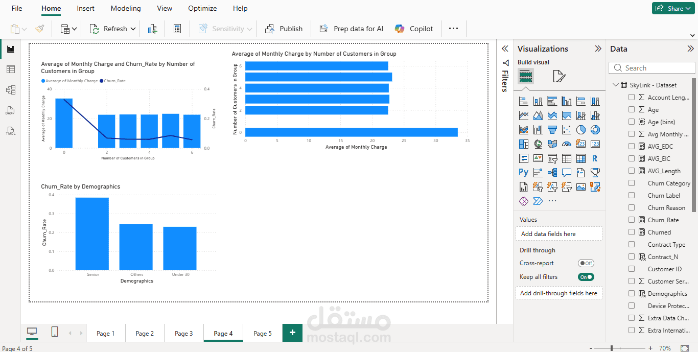 يتضمن هذا المشروع إنشاء تقرير تفاعلي باستخدام Power BI بالاعتماد على بيانات Skylink Dataset بهدف تحليل البيانات واستخراج رؤى تساعد في اتخاذ القرار. بدأت العملية بمرحلة تنظيف وتجهيز البيانات، ثم بناء نموذج بيانات مناسب مع إنشاء العلاقات بين الجداول لضمان دقة التحليل.