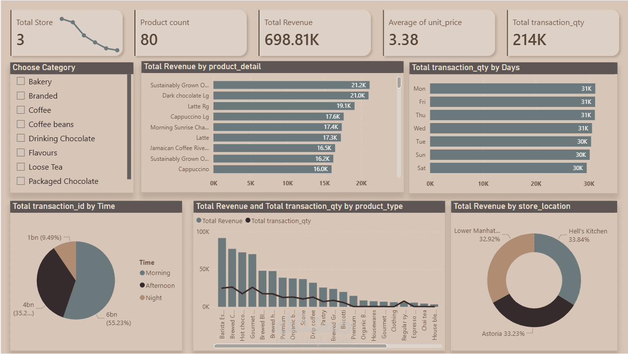 The Coffee Shop Sales Analysis Dashboard is an interactive business intelligence project built using Power BI, with a fully customized UI design created in Figma.