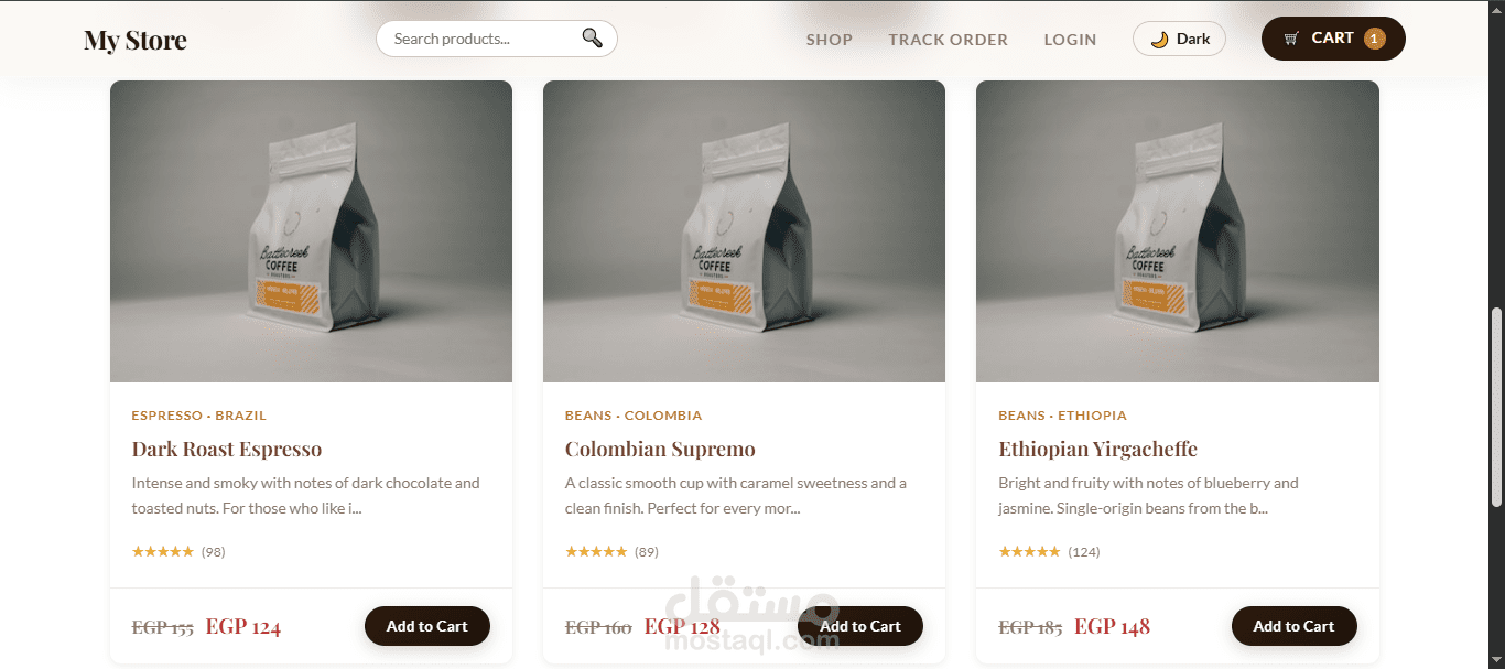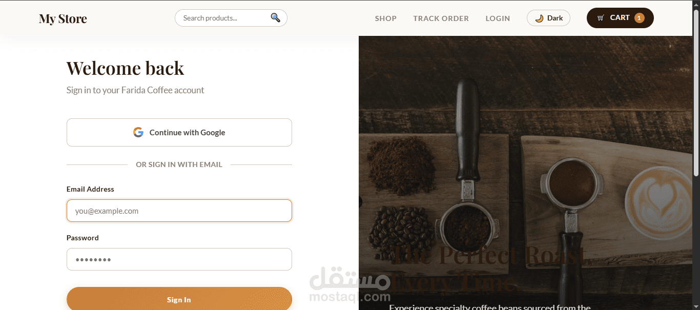 The application supports a complete order lifecycle, including cash-on-delivery and Instapay payment options, along with real-time order tracking for both registered users and guests. User authentication is secure and flexible, featuring email/password login, Google OAuth integration, and encrypted password handling using bcrypt.