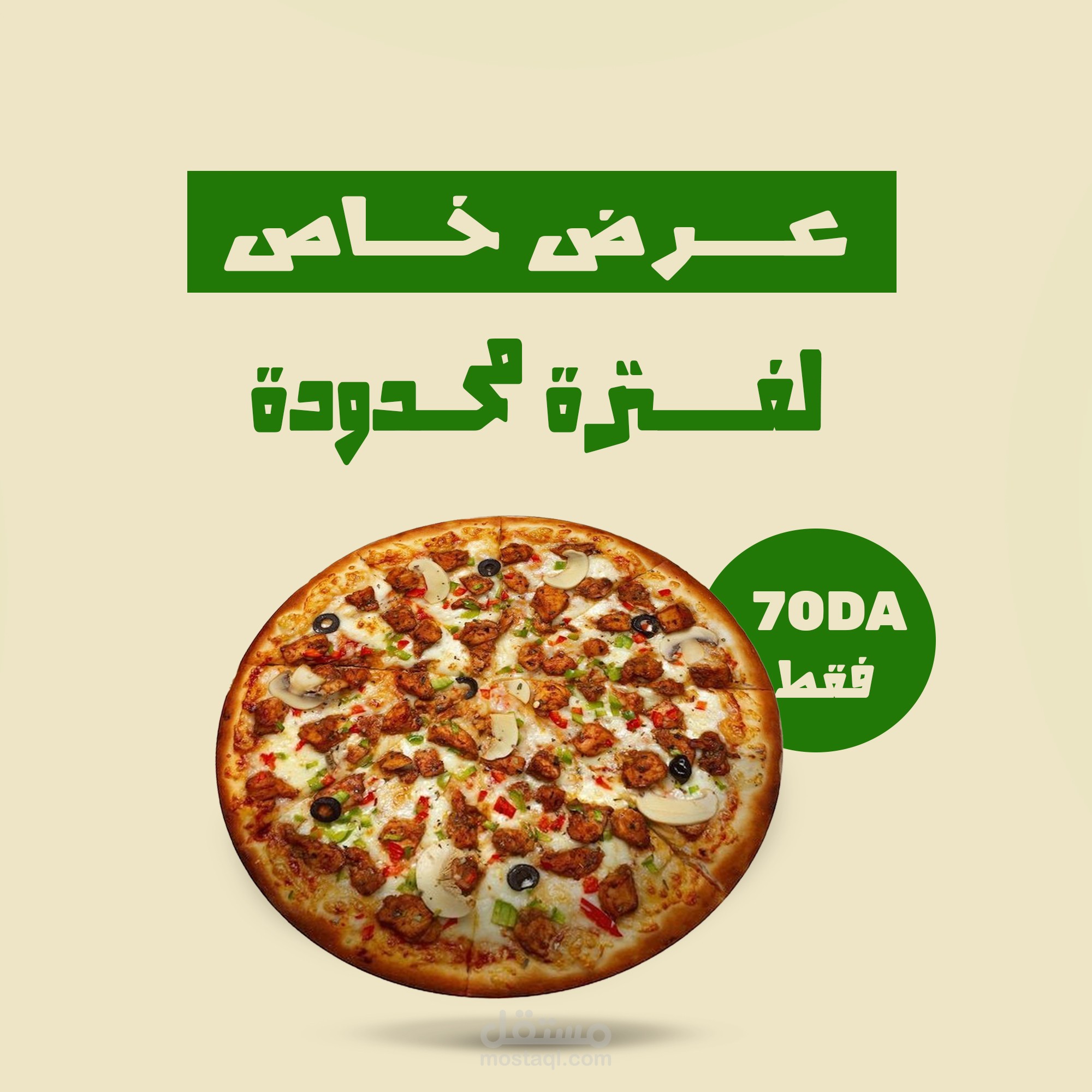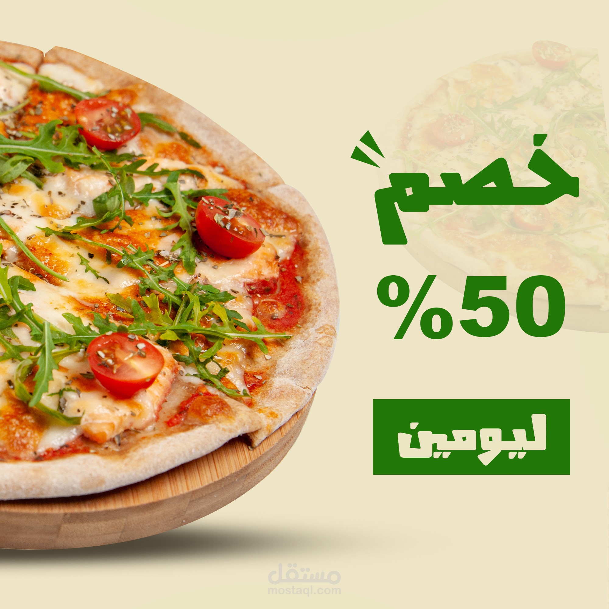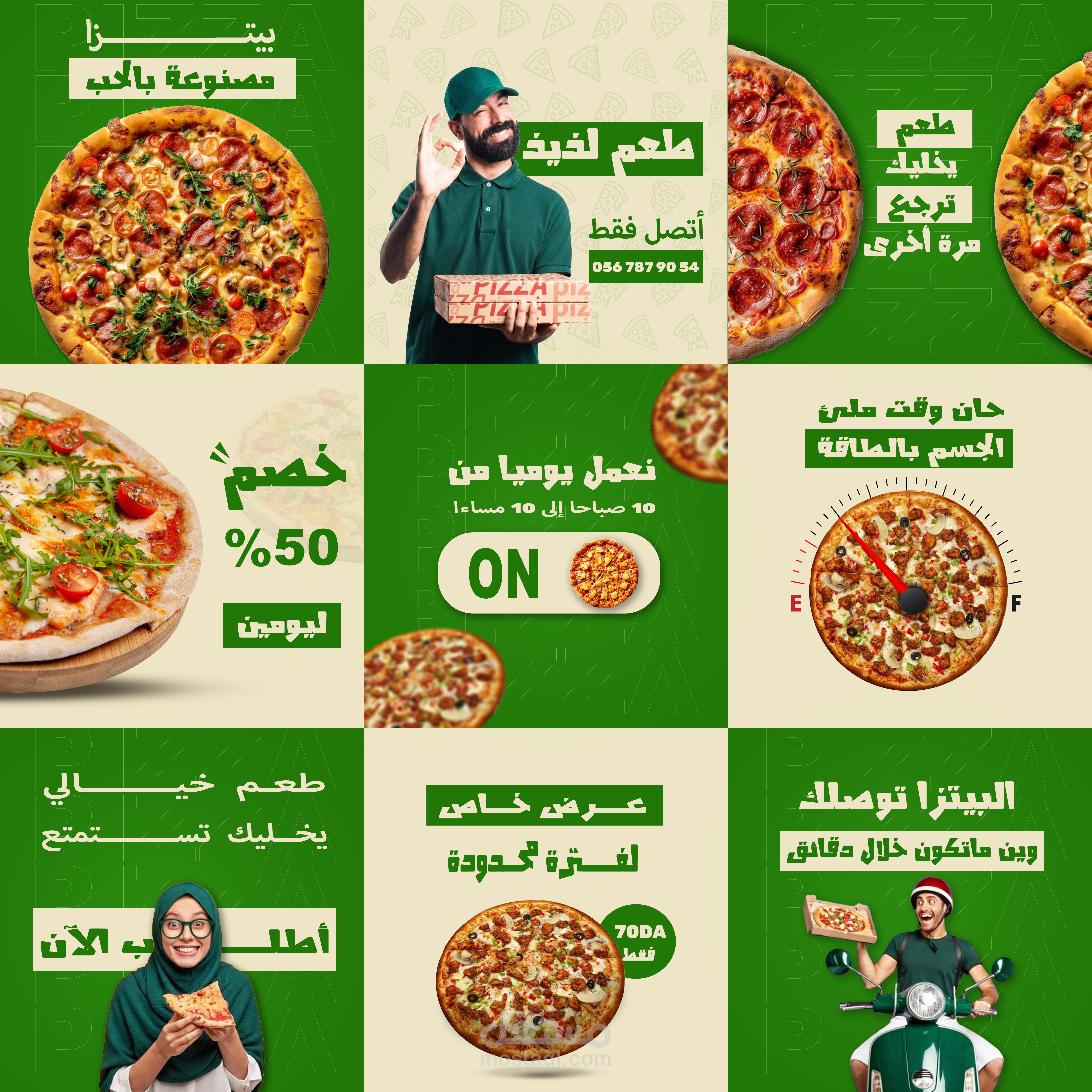 The design focuses on clean layout, strong typography, and a green color theme to create a fresh and appetizing visual identity.