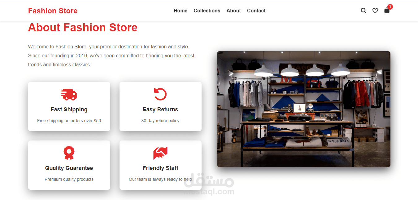 موقع متجر إلكتروني لعرض وبيع الملابس بتصميم عصري واحترافي يركز على تجربة المستخدم وسهولة التصفح.