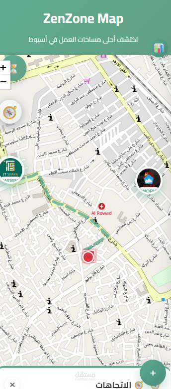 توفر خريطة ZenZone Map تجربة ذكية وسلسة لاستكشاف مساحات العمل المتاحة، حيث تتيح للمستخدم تحديد موقعه الجغرافي بدقة، وعرض أقرب المساحات إليه بشكل مباشر. كما تقوم الخريطة برسم المسار الأمثل للوصول إلى المكان المختار، مع حساب الوقت المتوقع للوصول بناءً على موقع المستخدم الحالي وسرعته ، مع ميزة انه مناسب لكل احجام الشاشات .