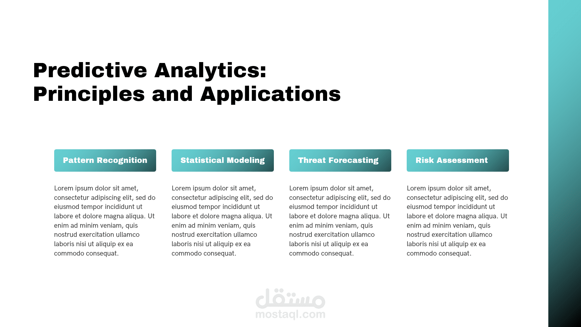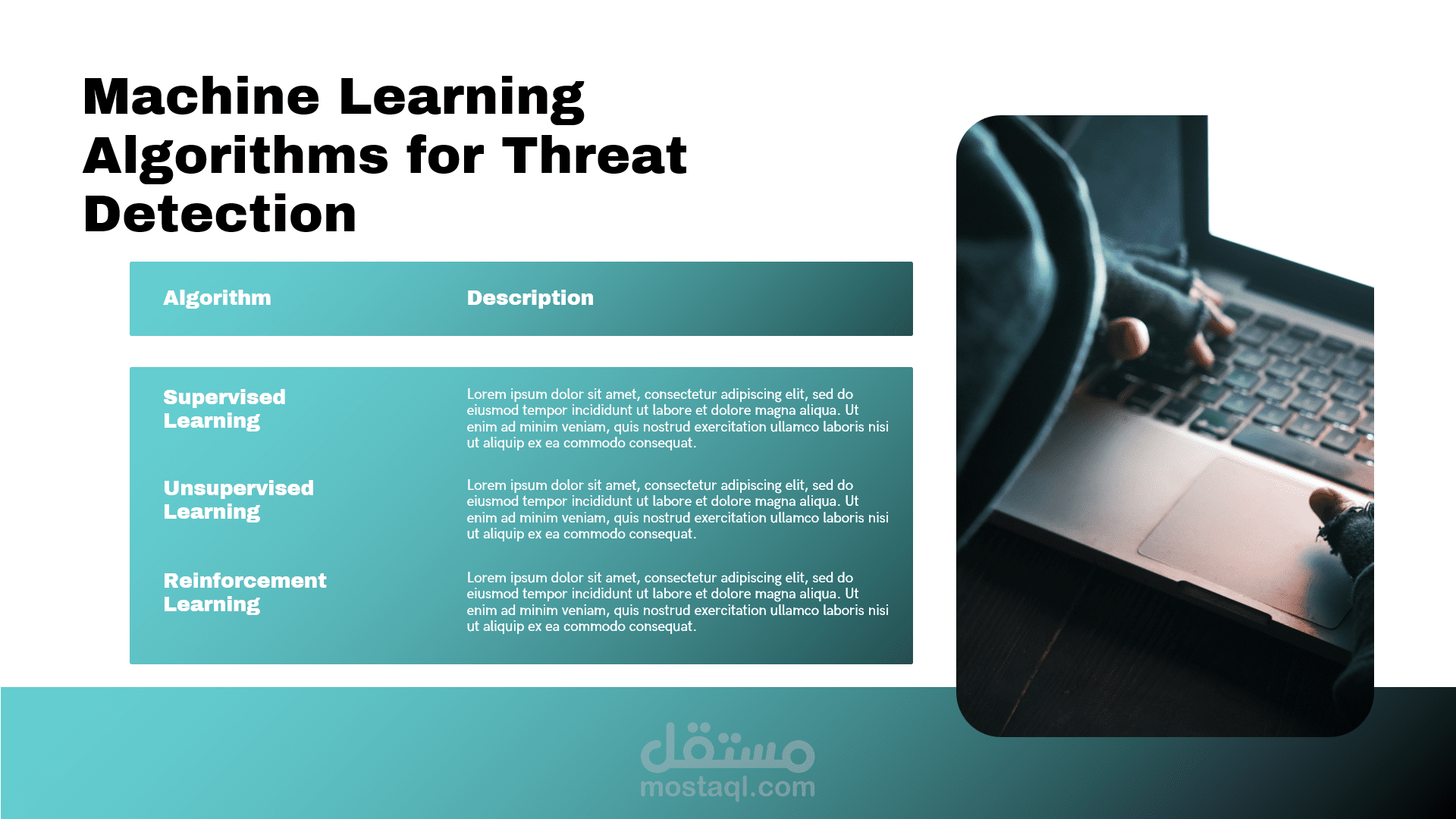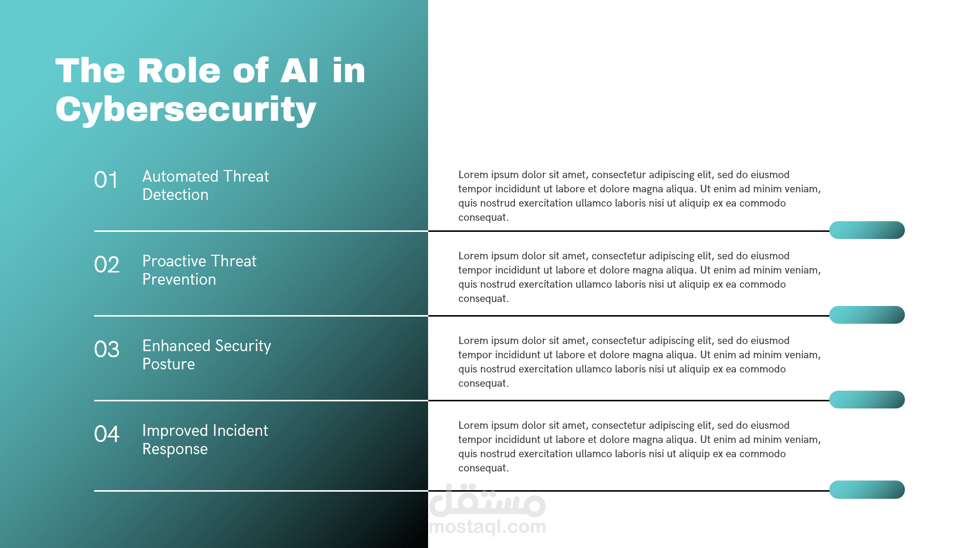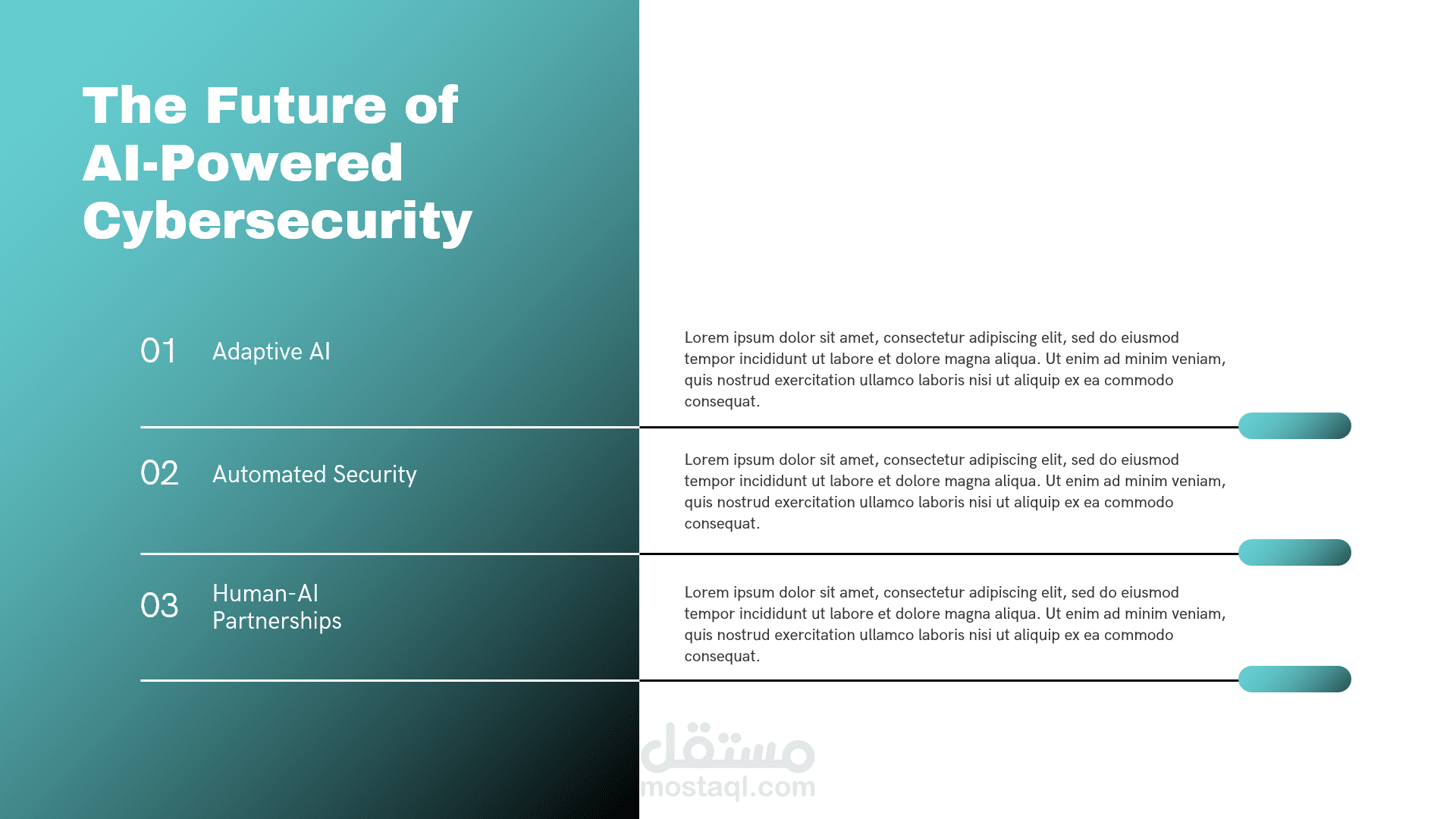 يتناول هذا العرض التقديمي محورين أساسيين في هندسة البرمجيات والأمن الرقمي، حيث يقدم شرحاً مفصلاً لنموذج تقدير التكاليف (COCOMO) بالإضافة إلى استعراض التقنيات الحديثة للذكاء الاصطناعي في حماية البيانات.أبرز محاور العرض:نموذج COCOMO (The Constructive Cost Model): تعريف النموذج: مقدمة حول النموذج الخوارزمي الذي طوره الدكتور باري بوم لتقدير تكاليف الجهد والوقت للمشاريع البرمجية.أهداف النموذج: كيفية التنبؤ بالموارد المطلوبة بناءً على تحليل بيانات مشاريع سابقة.المدخلات والمخرجات: الاعتماد على حجم المشروع بمقياس (KSLOC) لإنتاج تقديرات دقيقة للجهد البشري بالأشهر (Person-Months).مستويات النموذج: شرح الفروقات بين المستويات الثلاثة: الأساسي (Basic)، الوسيط (Intermediate)، والتفصيلي (Detailed).الذكاء الاصطناعي في الأمن السيبراني: تعزيز الحماية: دور الذكاء الاصطناعي في الكشف التلقائي عن التهديدات والوقاية الاستباقية منها.خوارزميات التعلم الآلي: استعراض تطبيقات التعلم الخاضع للإشراف (Supervised)، غير الخاضع للإشراف (Unsupervised)، والتعلم المعزز (Reinforcement Learning) في رصد الاختراقات.تحليل السلوك (Behavioral Analysis): استخدام النمذجة الإحصائية لتحديد الانحرافات عن السلوك الطبيعي وإطلاق الإنذارات.مستقبل الأمن الرقمي: استشراف مستقبل الشراكة بين الإنسان والذكاء الاصطناعي في الاستجابة السريعة للحوادث الأمنية.
