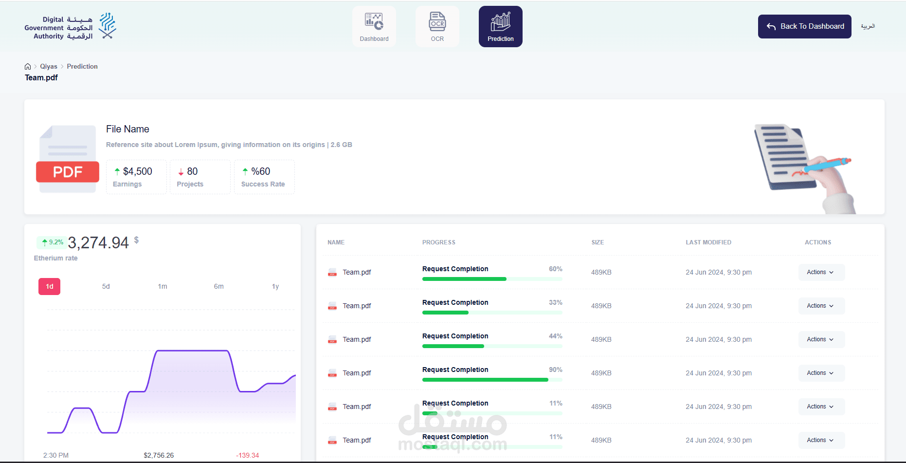 Developed a responsive AI-powered prediction dashboard using React.js that visualizes real-time data insights and prediction results. The platform features interactive charts, dynamic filtering, and clear data presentation to help users explore trends and make informed decisions. Focused on performance, UX‑driven interface design, and seamless data integration.