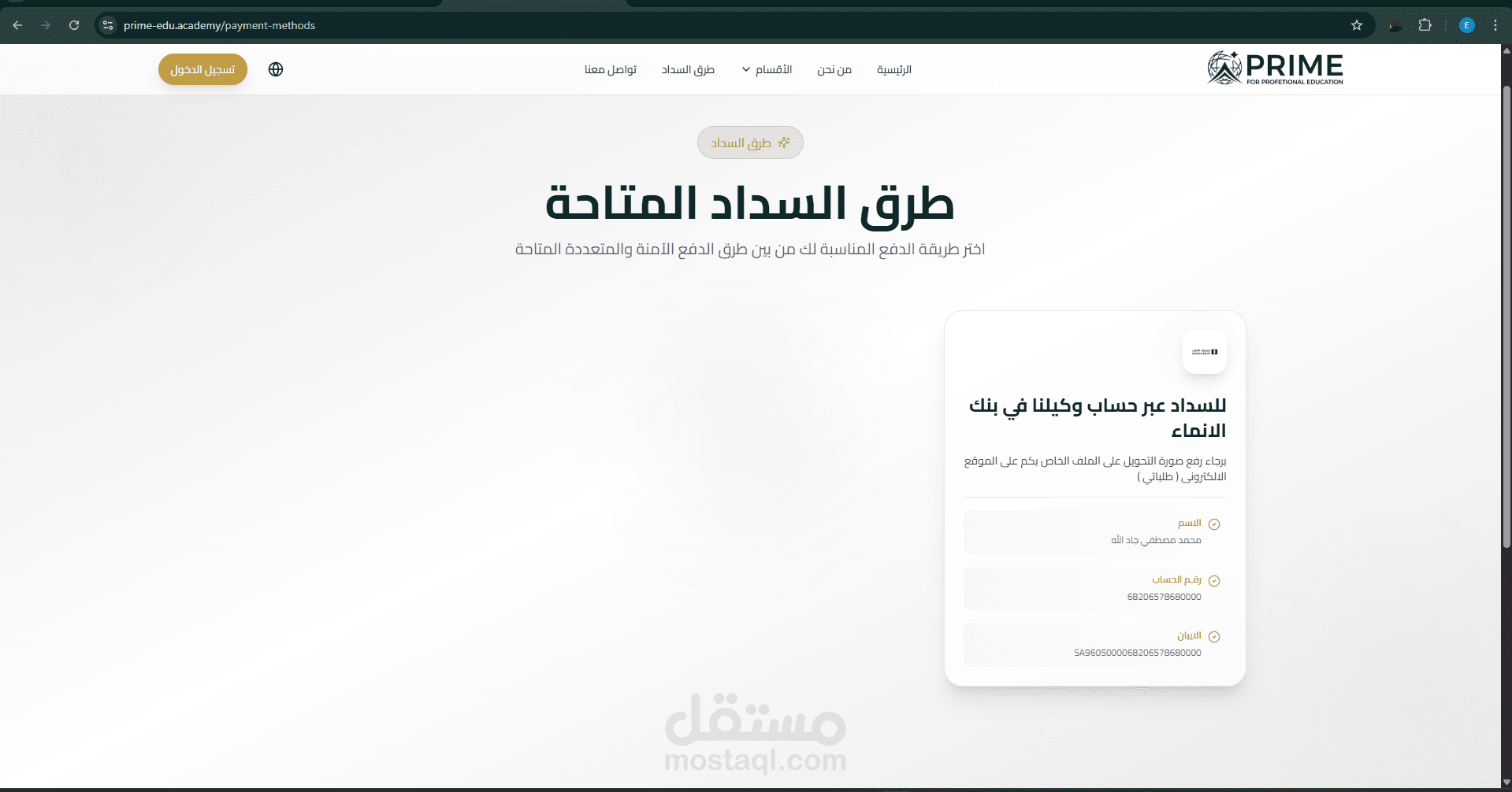 يدعم الموقع عرض الدورات التعليمية بطريقة منظمة من خلال بطاقات (Cards) تحتوي على تفاصيل البرنامج، مما يسهل على المستخدم استكشاف الخيارات المتاحة واختيار البرنامج المناسب له. كما تم تطوير صفحة طرق الدفع لعرض وسائل الدفع المتاحة بشكل واضح، مما يساعد في تحسين تجربة المستخدم وزيادة سهولة إتمام عملية التسجيل في الدورات.