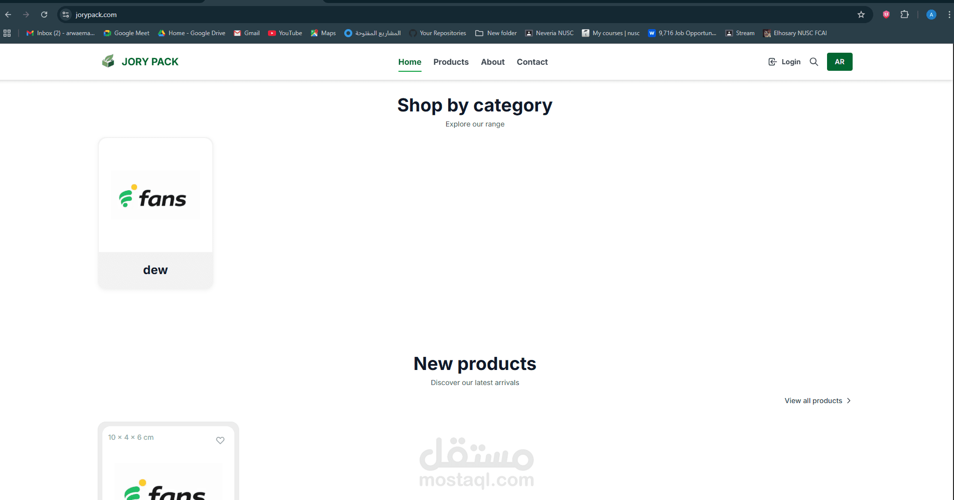 تم تطوير المشروع باستخدام React.js لبناء واجهة مستخدم سريعة وتفاعلية، مع تصميم Responsive يضمن تجربة استخدام ممتازة على جميع الأجهزة المختلفة مثل الموبايل والتابلت وأجهزة الكمبيوتر. يعرض الموقع المنتجات بطريقة منظمة من خلال أقسام متعددة مثل Shop by Category التي تساعد المستخدم على الوصول إلى المنتجات بسهولة، بالإضافة إلى عرض أحدث المنتجات (New Products) بطريقة جذابة باستخدام تصميم حديث يعتمد على UI/UX Best Practices.