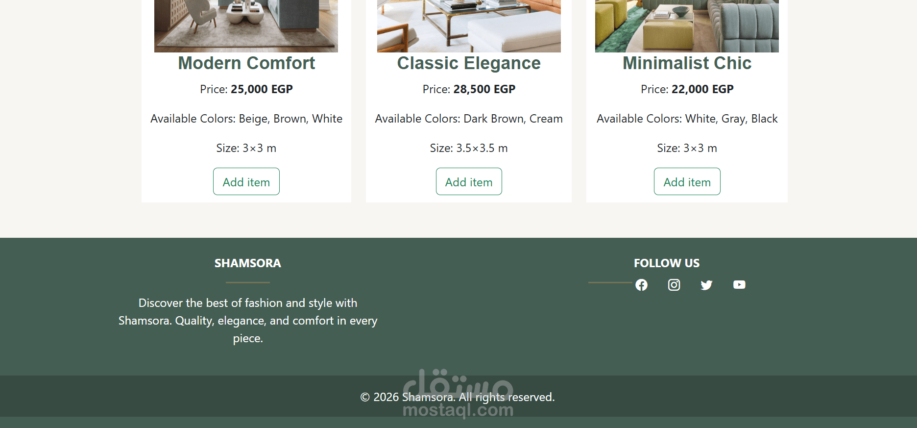انا صممت وطورّت موقع أثاث كامل بشكل عصري وبسيط، الهدف منه إنه يدي تجربة مستخدم سهلة وشكل شيك يعبر عن البراند.