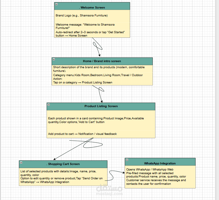 اشتغلت على المشروع من الصفر، وكنت مسؤولة عن اختيار اسم البراند وتحديد الألوان المناسبة، وكمان تصميم الـ UX flow عشان التنقل بين الصفحات يكون سهل ومريح.