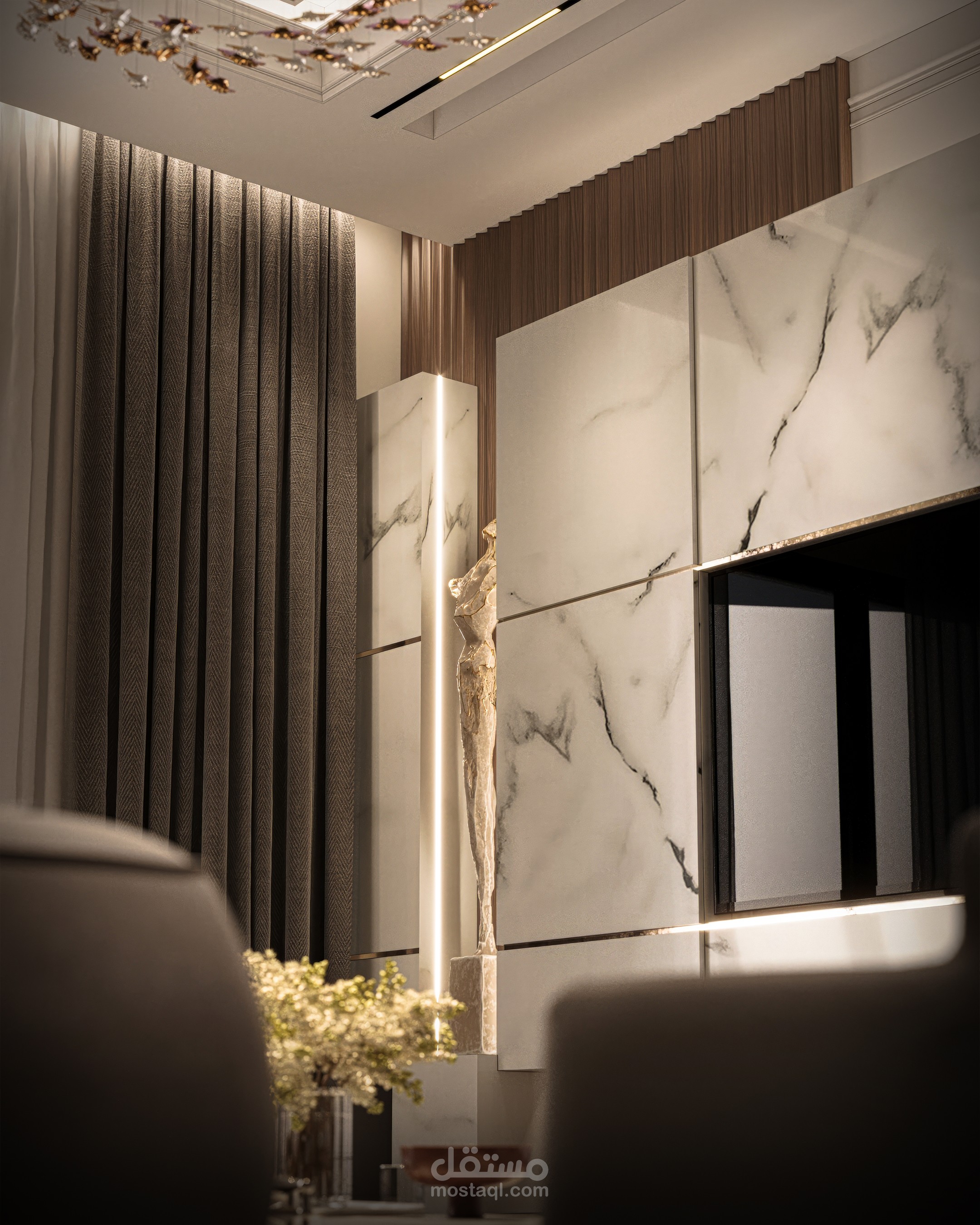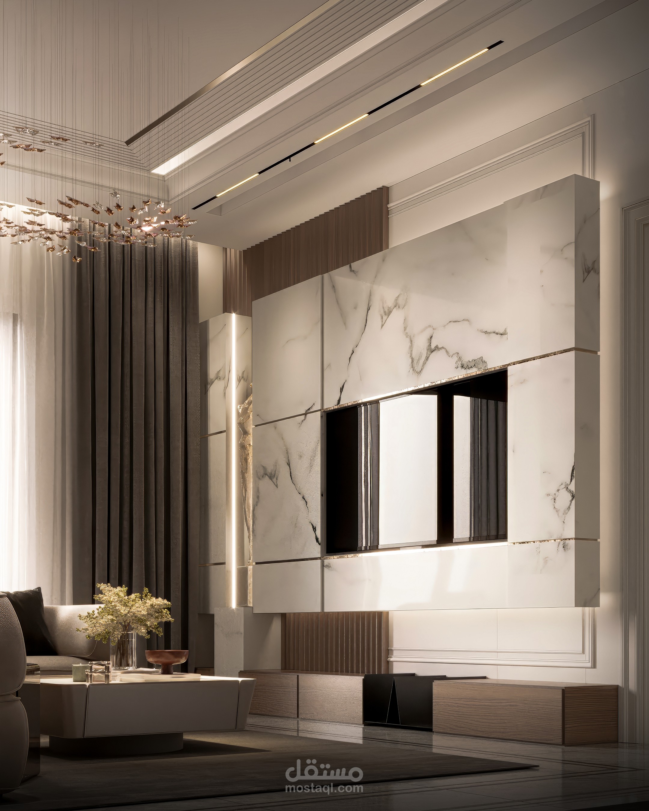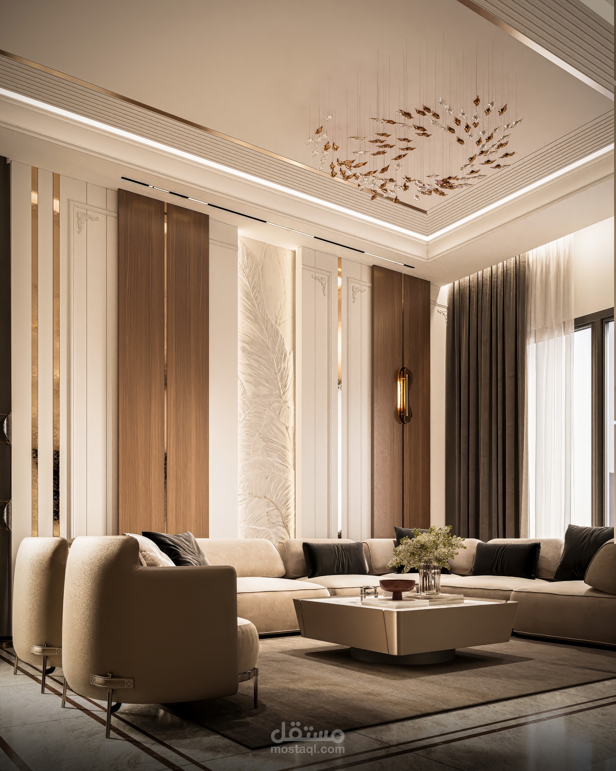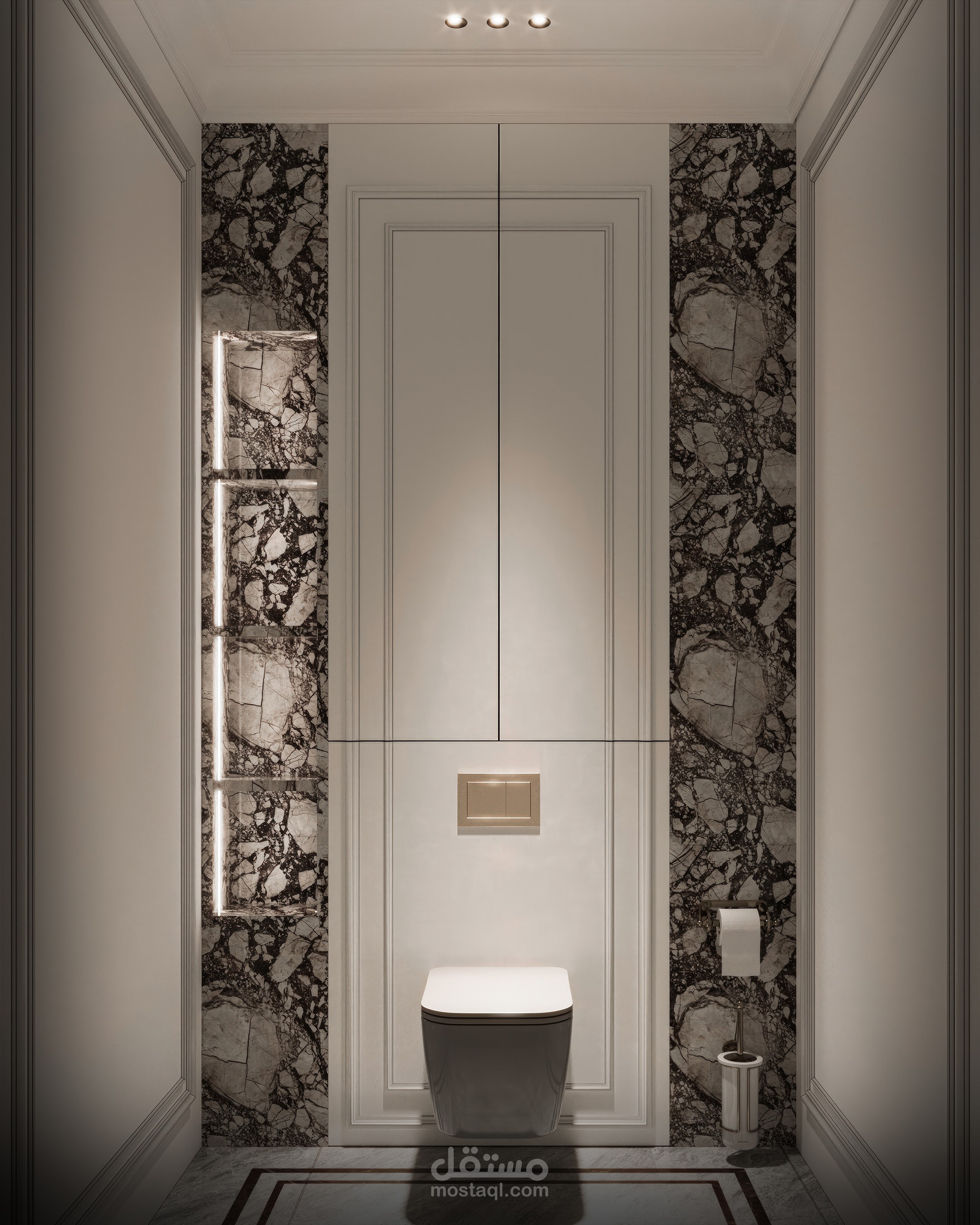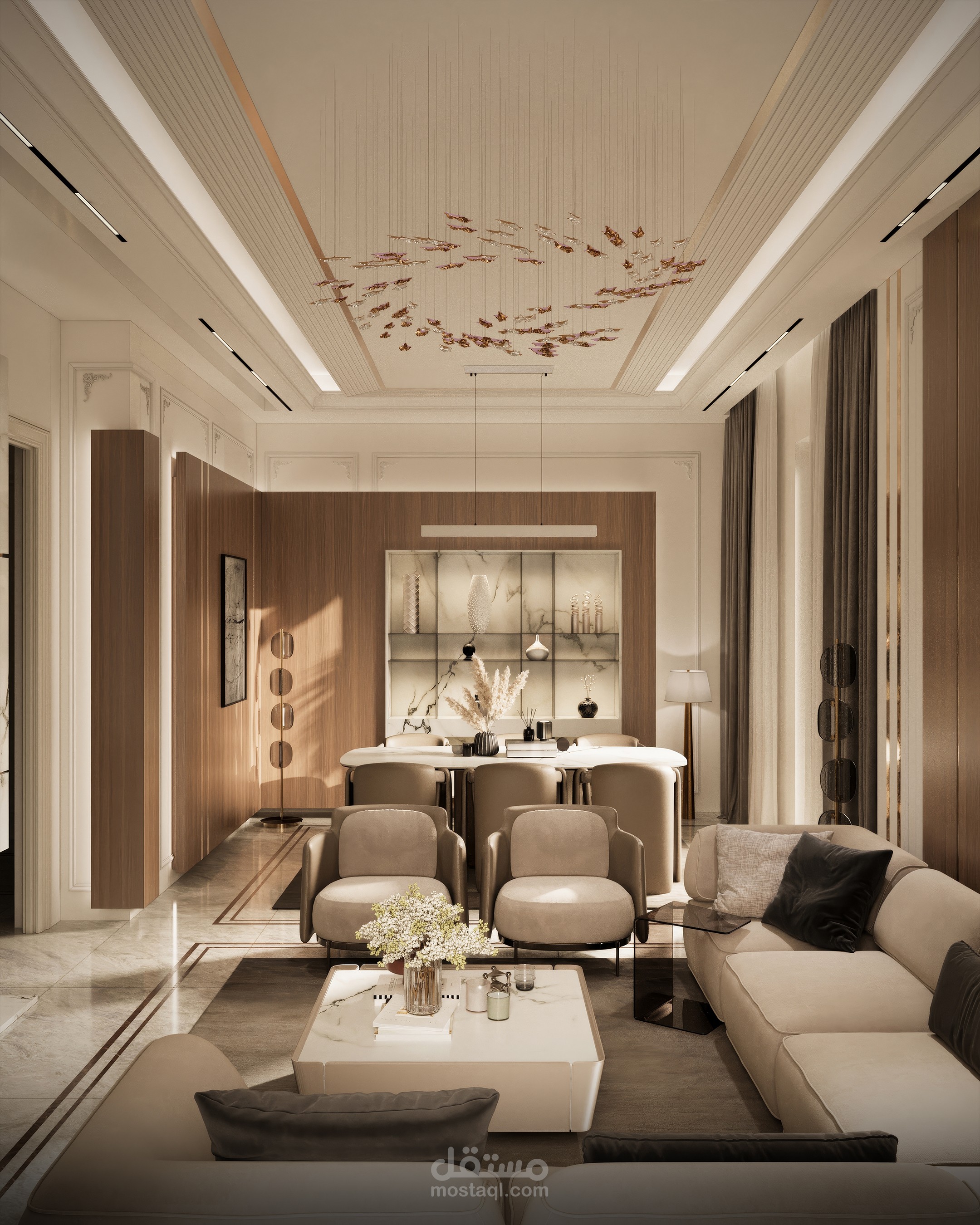 يقدّم هذا المشروع تصورًا راقيًا للتصميم الداخلي الكلاسيكي لمساحة سكنية، حيث يحتل المطبخ الفاخر قلب التصميم ومحوره الأساسي. يرتكز المفهوم على تحقيق التوازن المثالي من خلال التناظر الدقيق، والنسب الأنيقة، والتفاصيل الخالدة المستوحاة من الطراز الأوروبي الكلاسيكي.