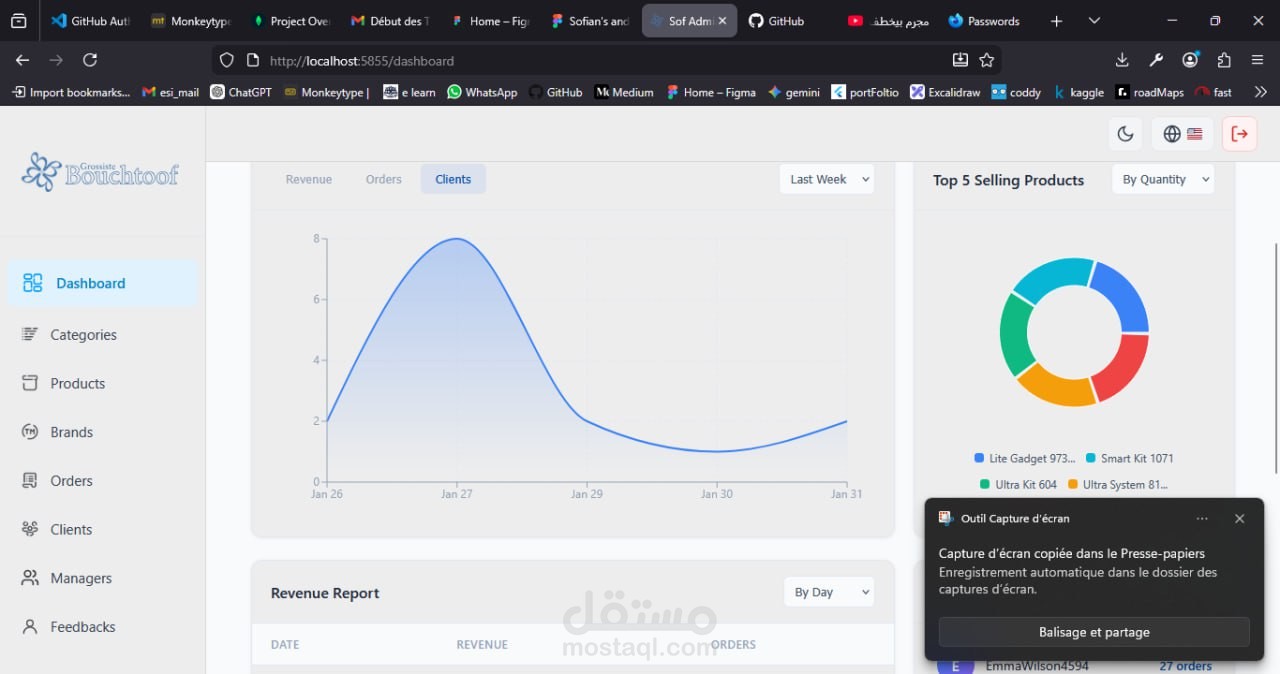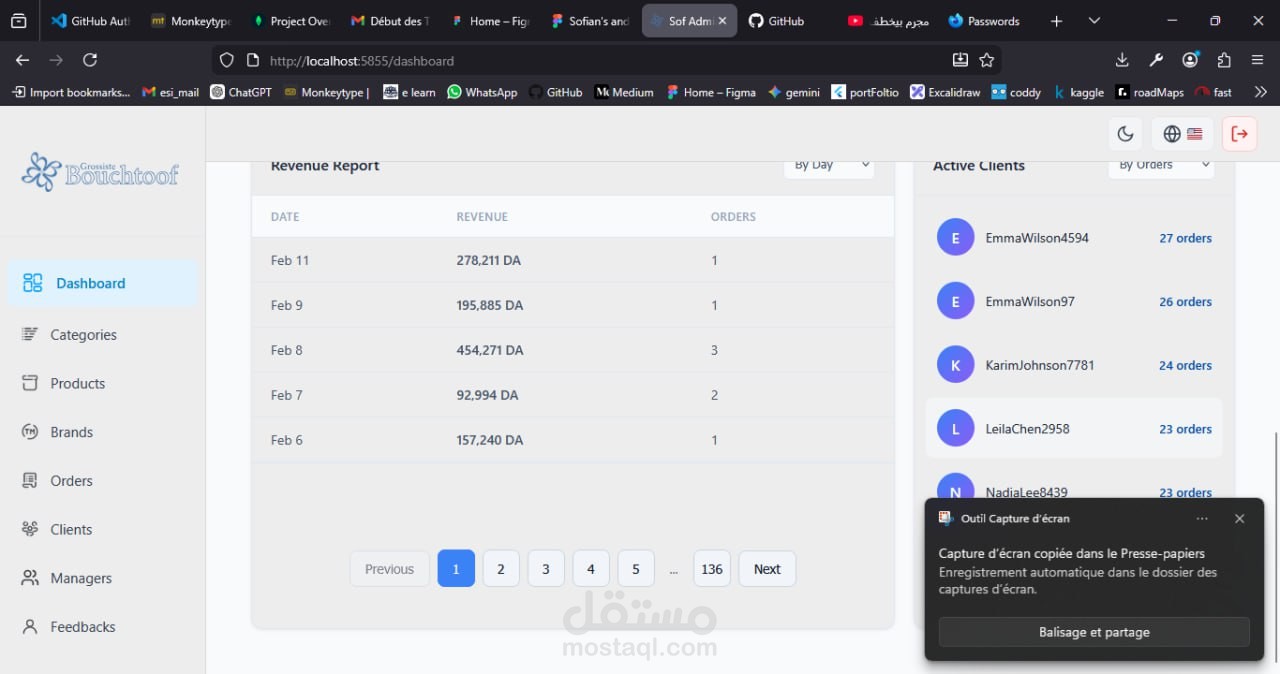 قمت بتطوير لوحة تحكم احترافية لإدارة متجر إلكتروني، وهي الجزء الذي تم نشره فعليًا، حيث تمكّن أصحاب المتاجر من التحكم الكامل في جميع جوانب المنصة بسهولة وأمان، مع وجود تطبيق منفصل مخصص للعملاء.