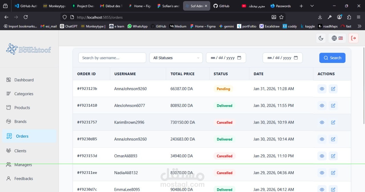 * ? **متابعة الطلبات** وتحديث حالتها (قيد المعالجة، تم الشحن، مكتمل…)