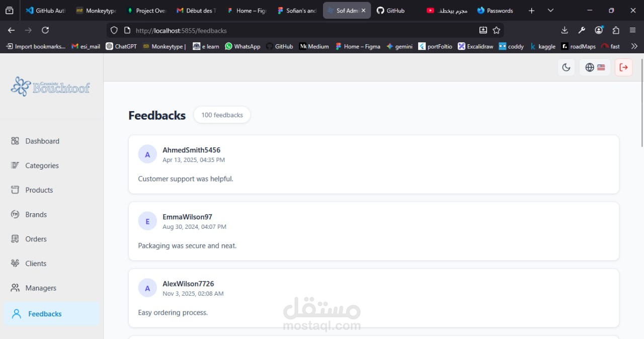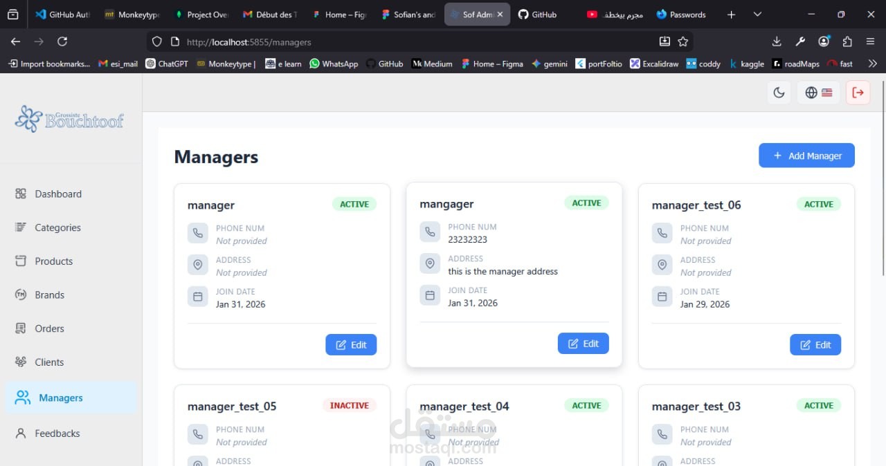 ? المشروع يعكس خبرة في بناء أنظمة تجارة إلكترونية متكاملة مع فصل واضح بين واجهة الإدارة وتجربة المستخدم.