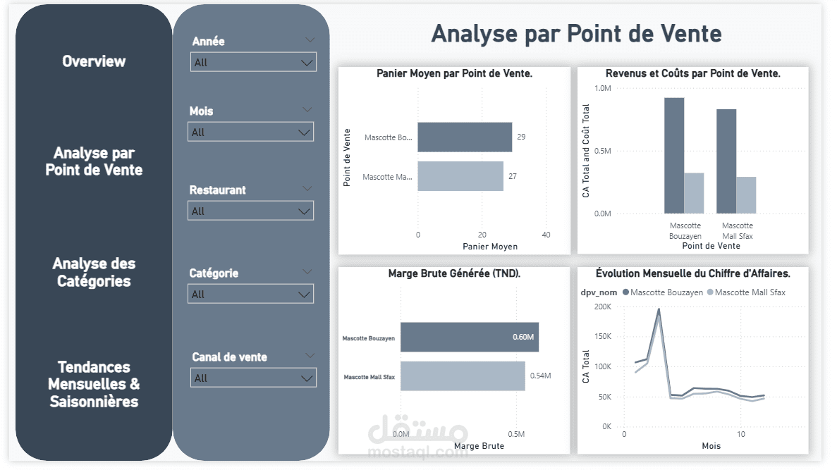 برمجة وتطوير أدوات تحليلية متقدمة، تشمل تحليل سلة المشتريات (Basket Analysis) وتحليلات هوامش الربح التنبؤية (What-if Margin Analysis).