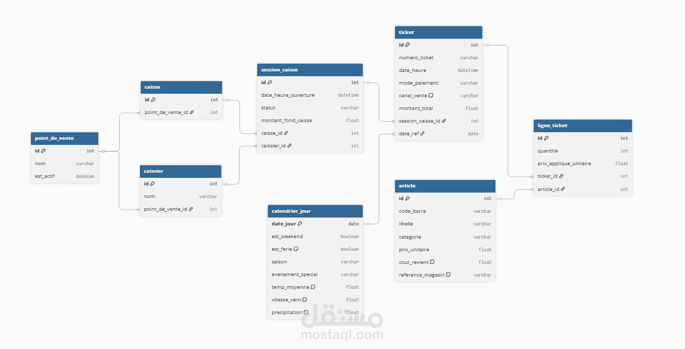 تطوير النظام الخلفي لمعالجة البيانات باستخدام Python وقواعد بيانات PostgreSQL.