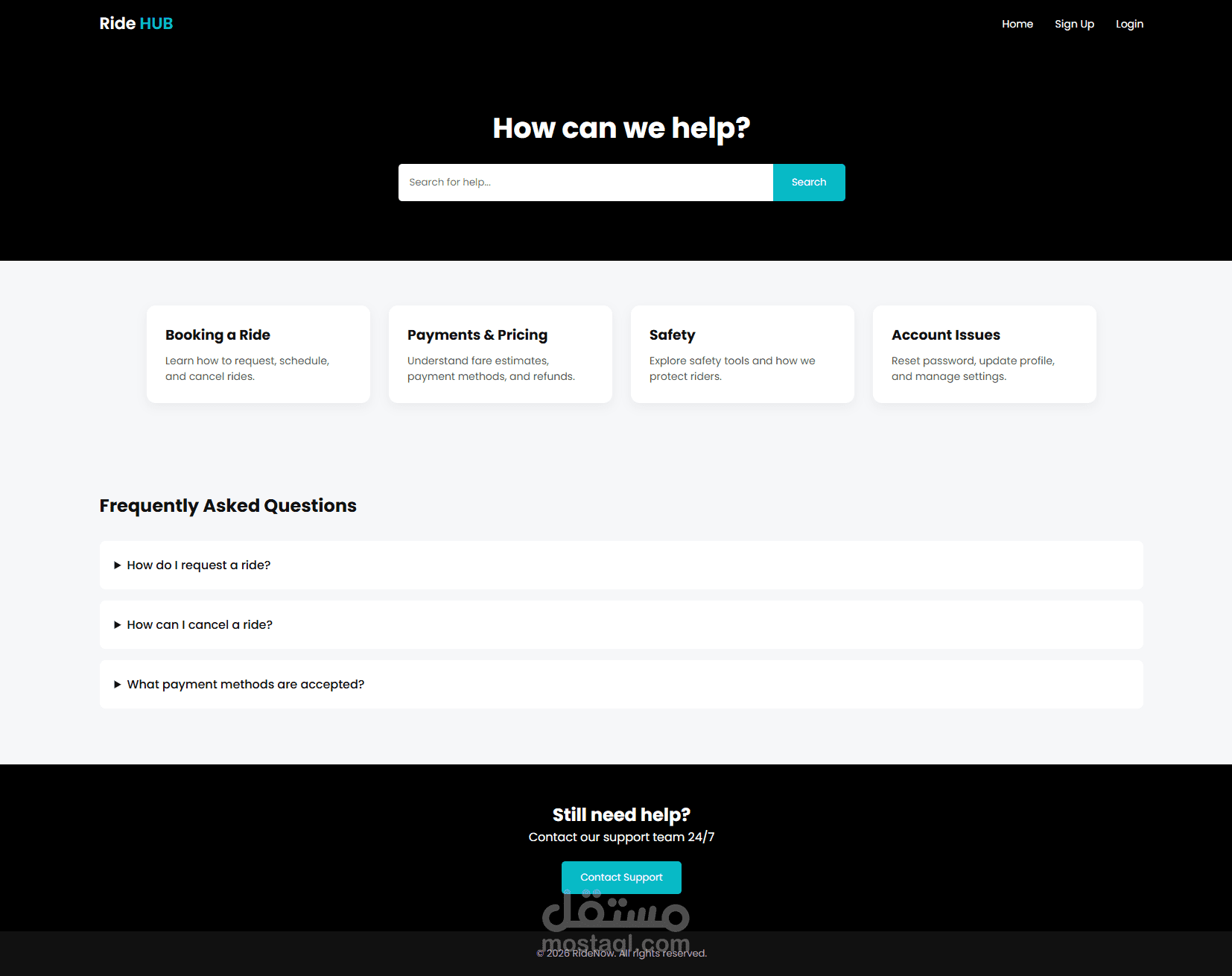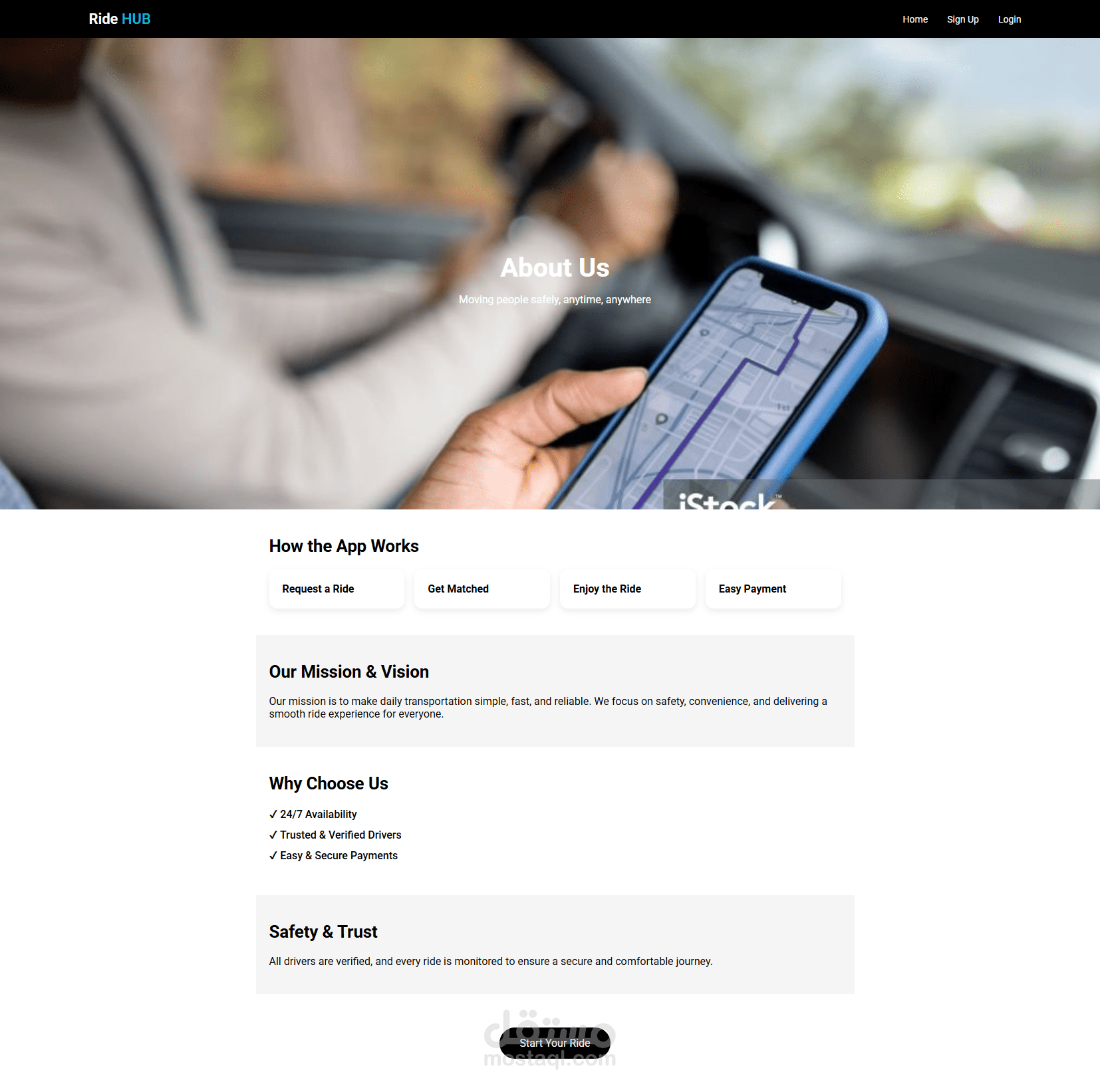يستطيع المستخدم تصفح الأقسام بسهولة والتنقل بينها داخل صفحة واحدة بتصميم بسيط ومتجاوب مع مختلف الأجهزة.