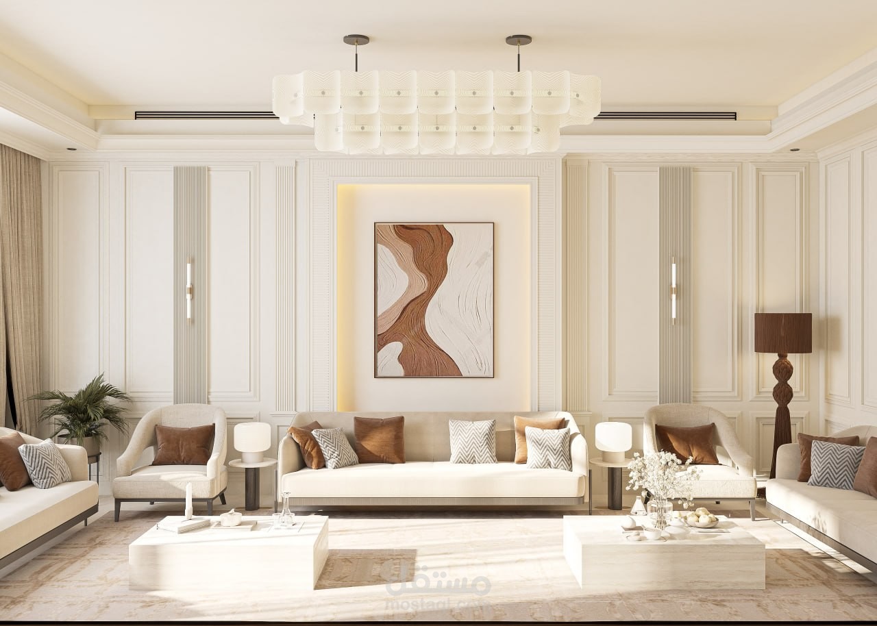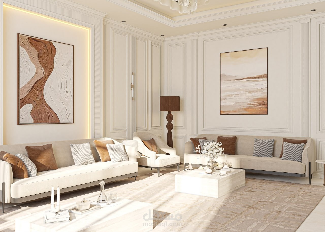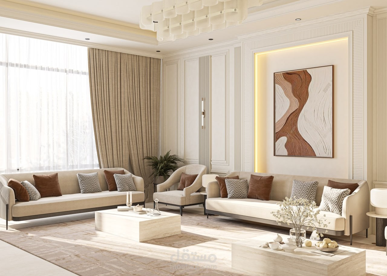 A Neo-Classical Majlis that combines classic elegance with modern simplicity. Soft tones, refined details, and balanced
