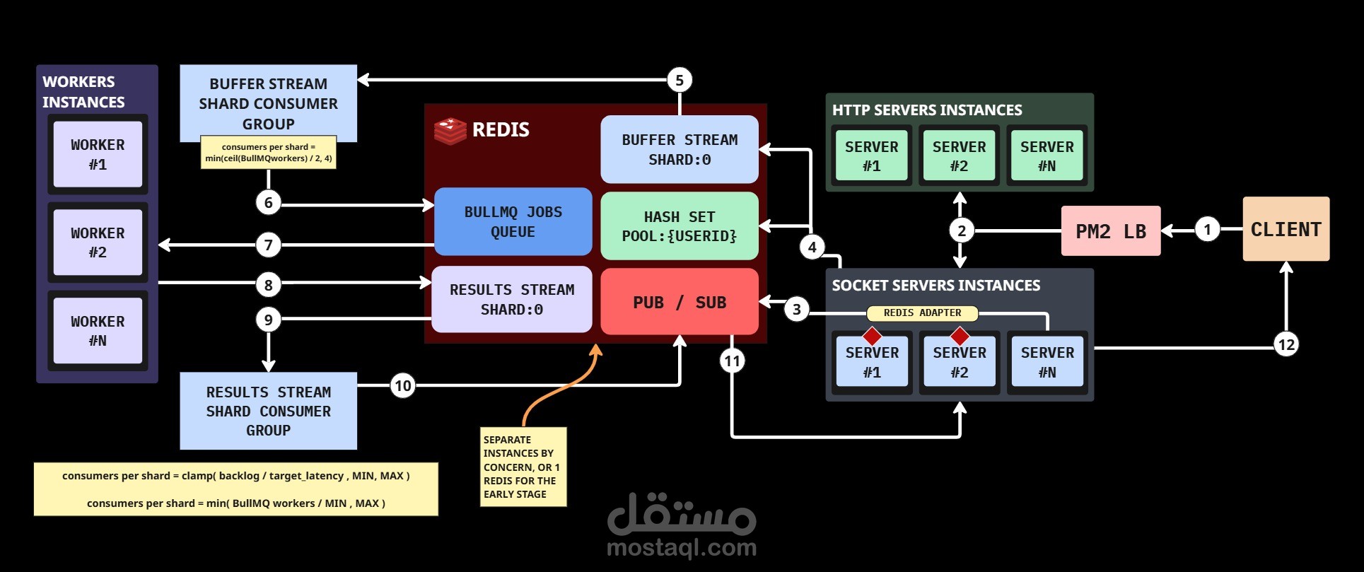 - Built a matchmaking engine on Redis Streams and BullMQ consumer groups, enabling HTTP, Socket, and Worker