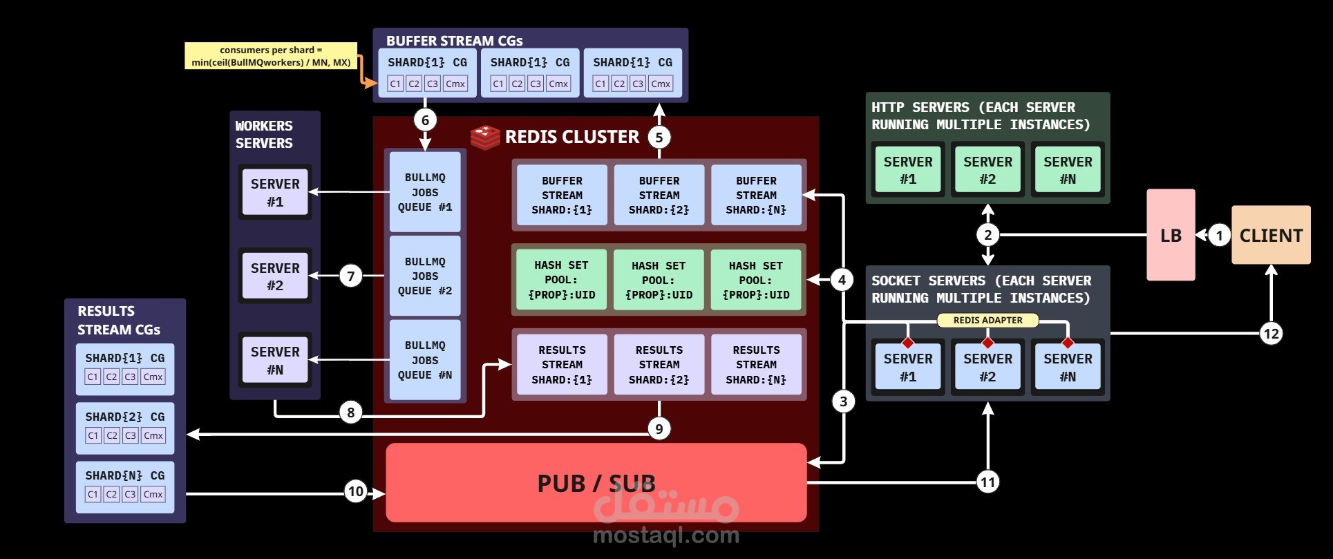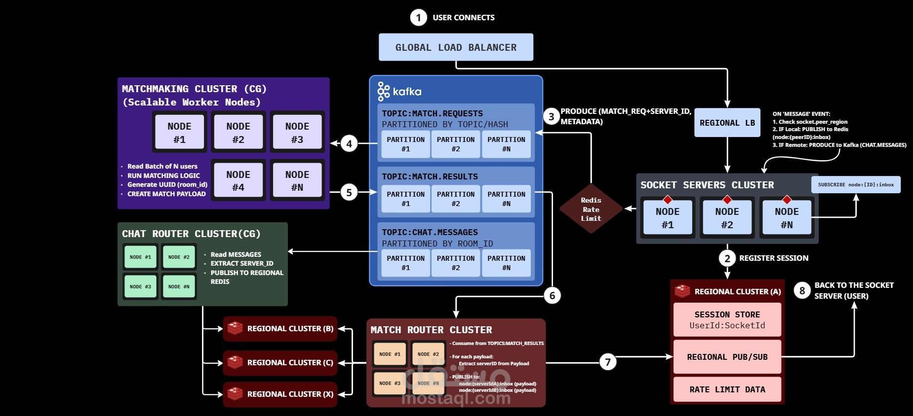- Architected a two-phase scaling strategy using Redis Streams for early growth and Kafka with partitioned topics for