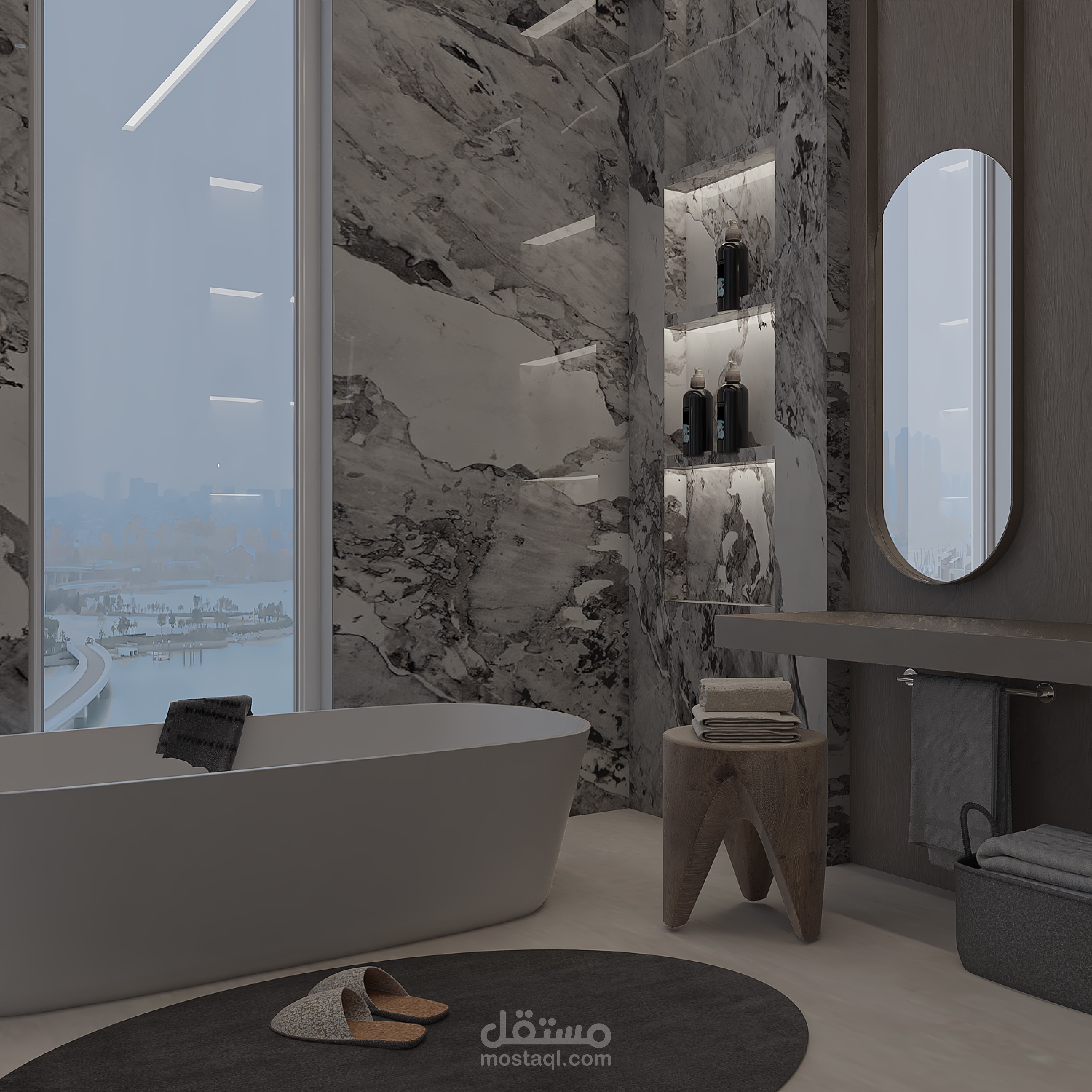 Soft lighting and minimal materials enhance the calm and elegant atmosphere.