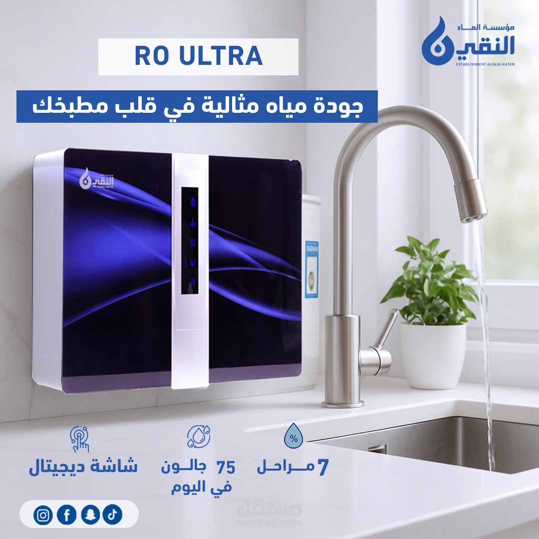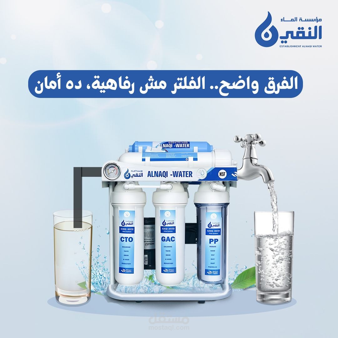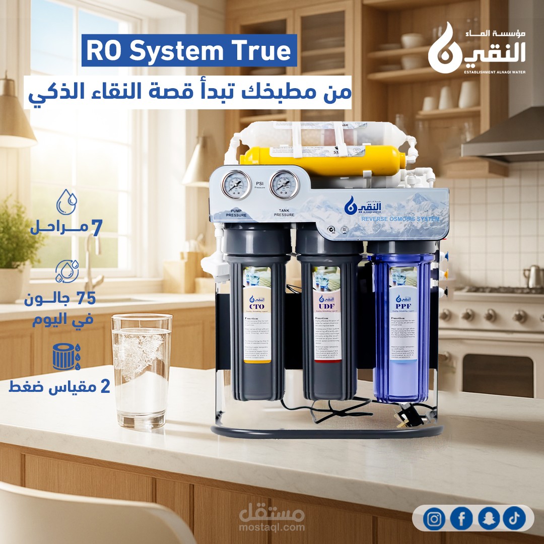 A creative social media advertisement designed for a water filter brand targeting the UAE market.