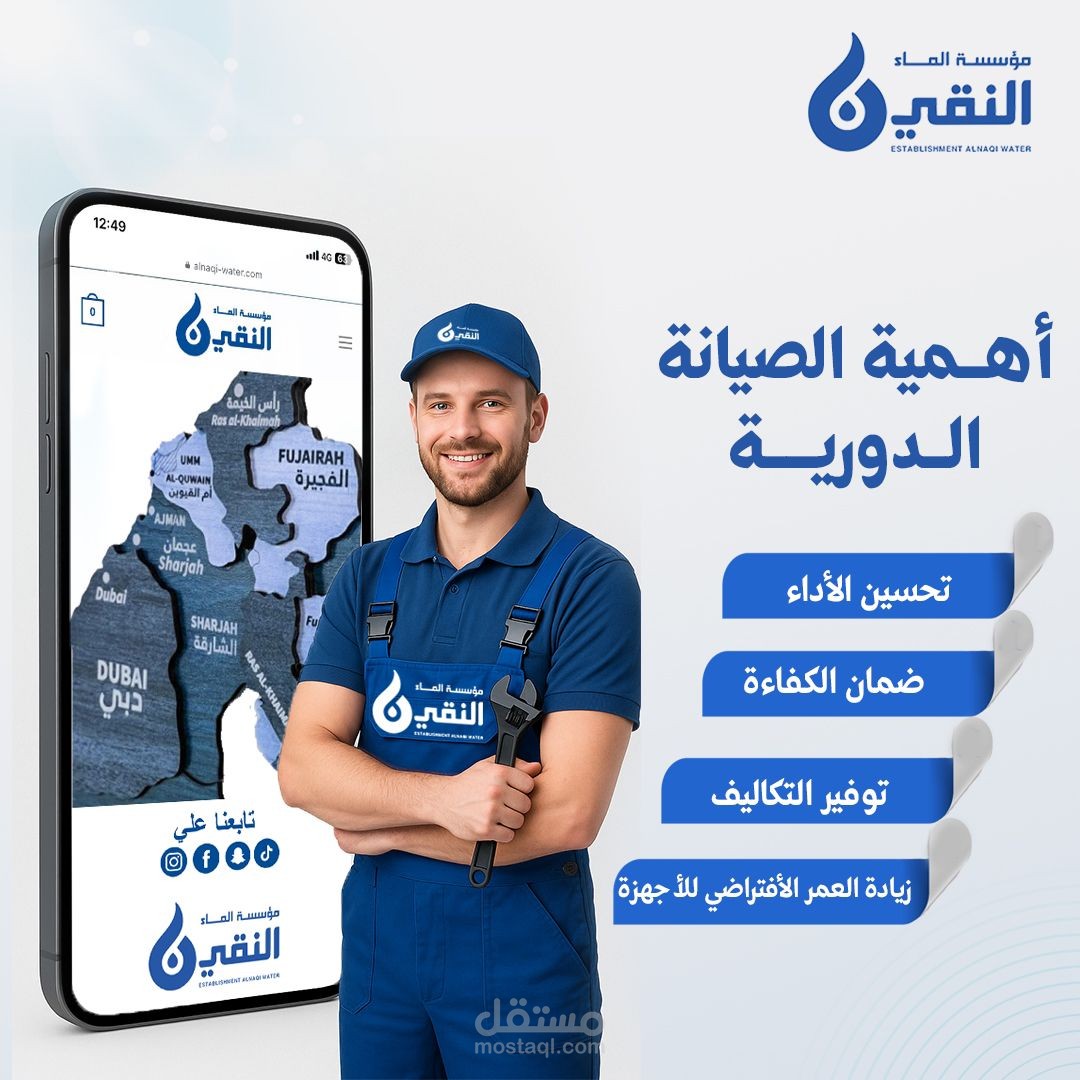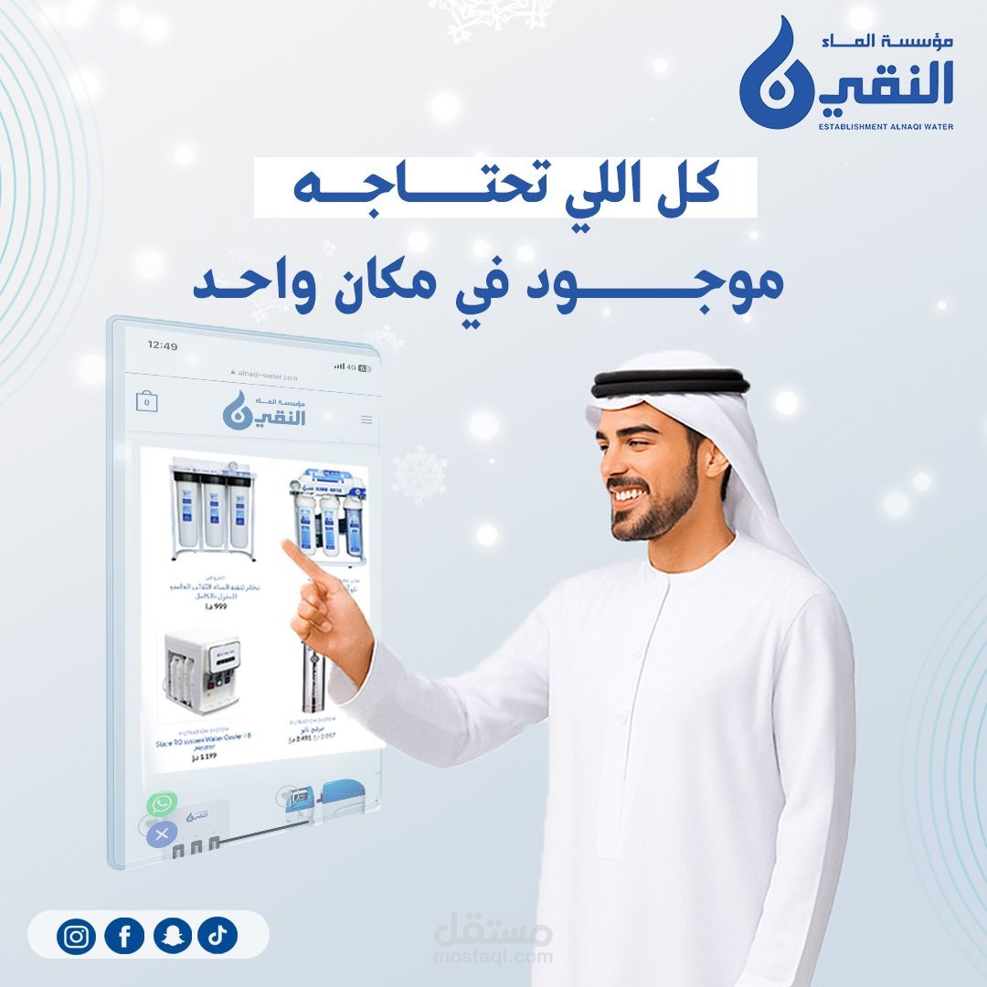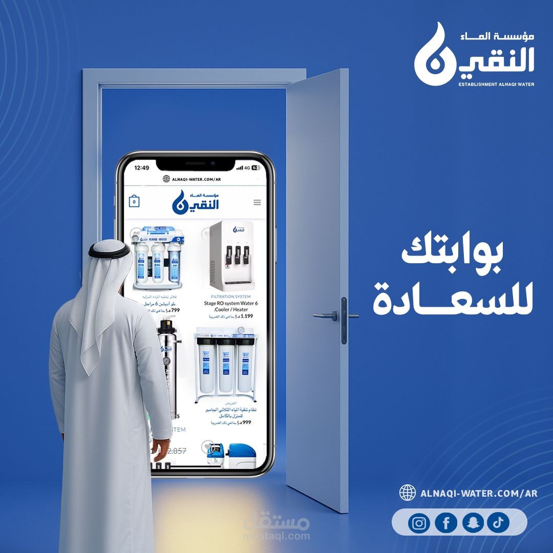 A creative social media advertisement designed for a water filter brand targeting the UAE market.