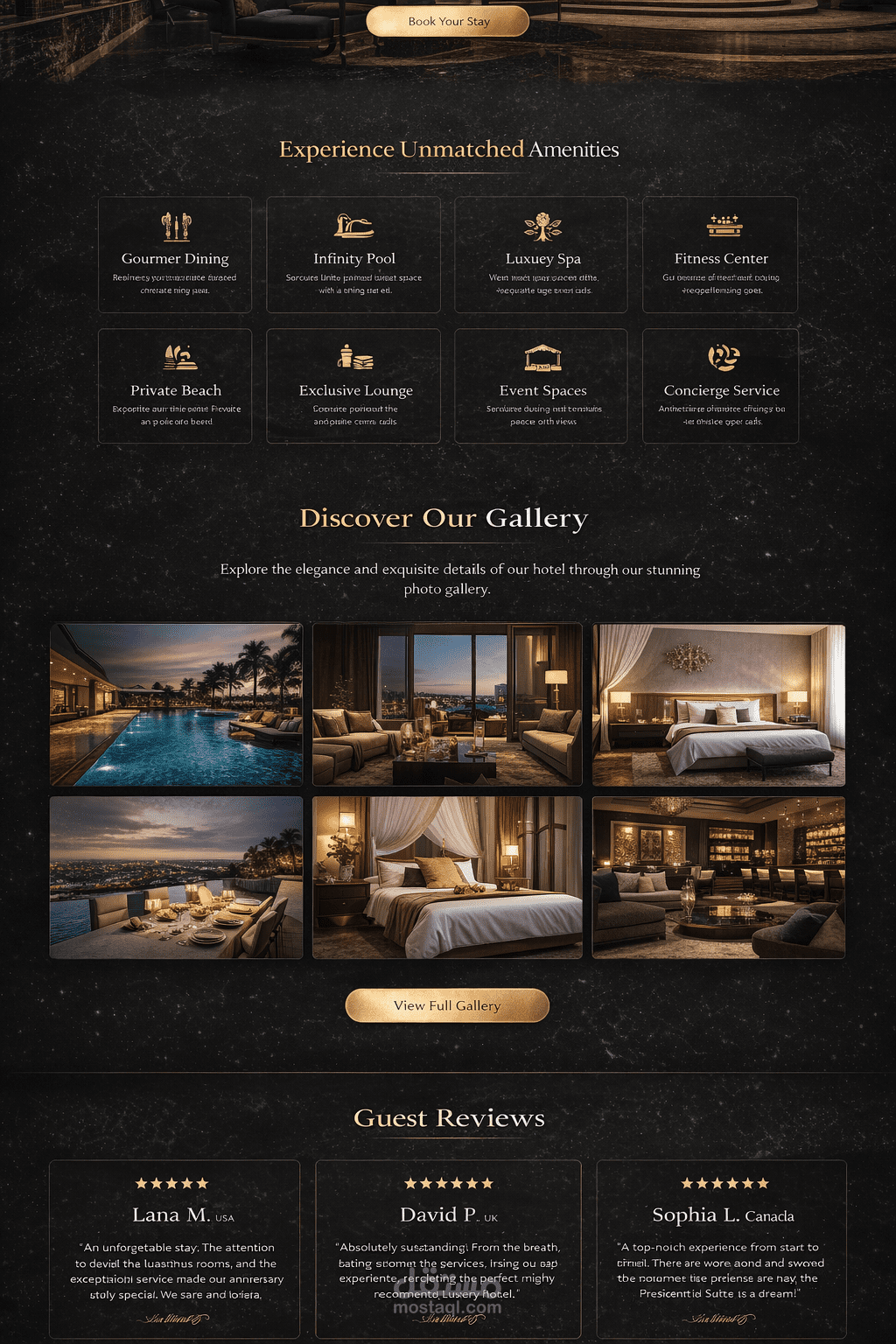 Hero Section احترافي يعرض الهوية البصرية للفندق ورسالة تسويقية قوية