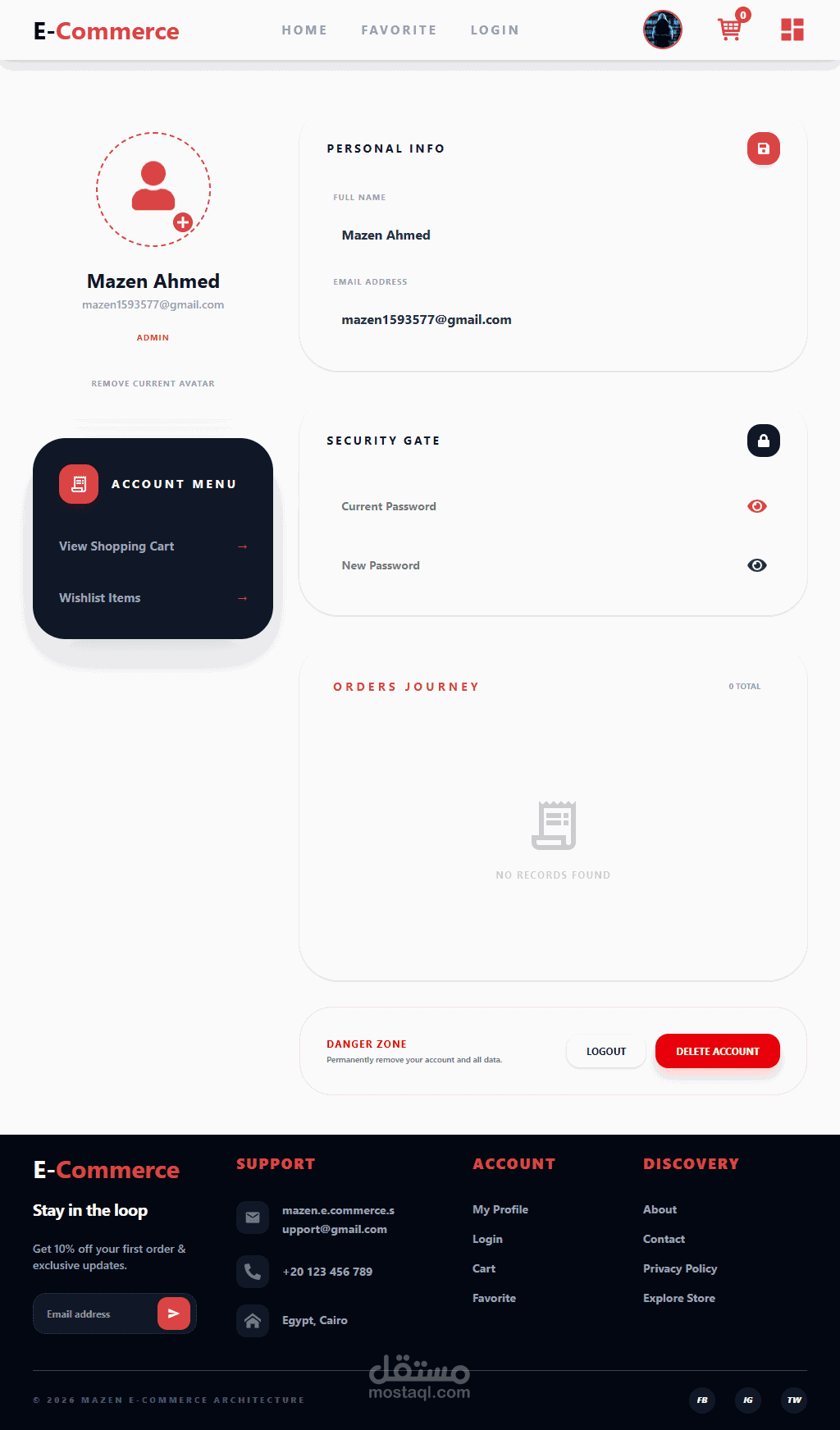 هذا المشروع عبارة عن موقع تجارة إلكترونية (E-Commerce) متكامل قمت بتصميمه وتطويره، ويشمل واجهة مستخدم احترافية بالإضافة إلى لوحة تحكم (Dashboard) لإدارة المنتجات والمحتوى.