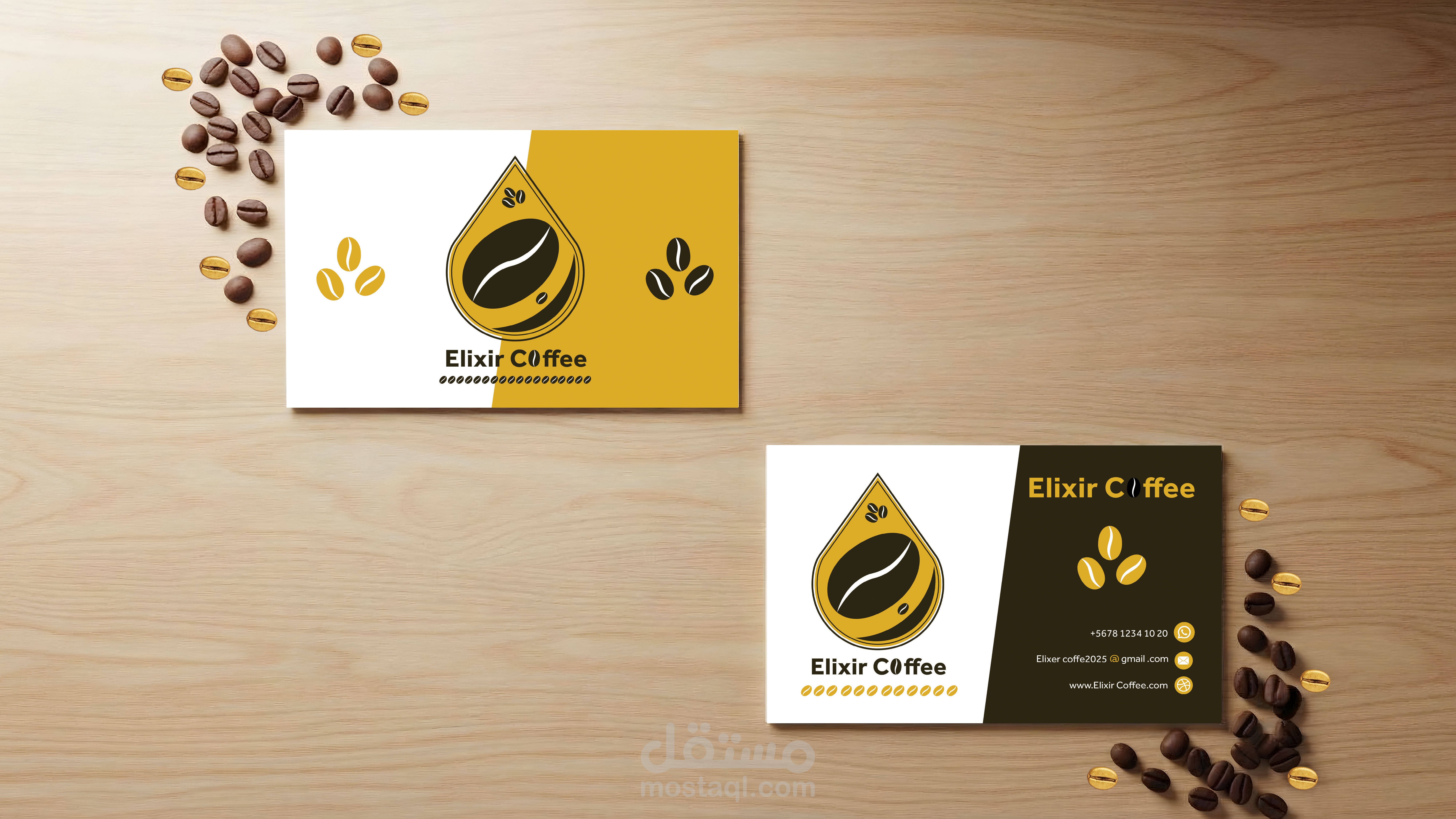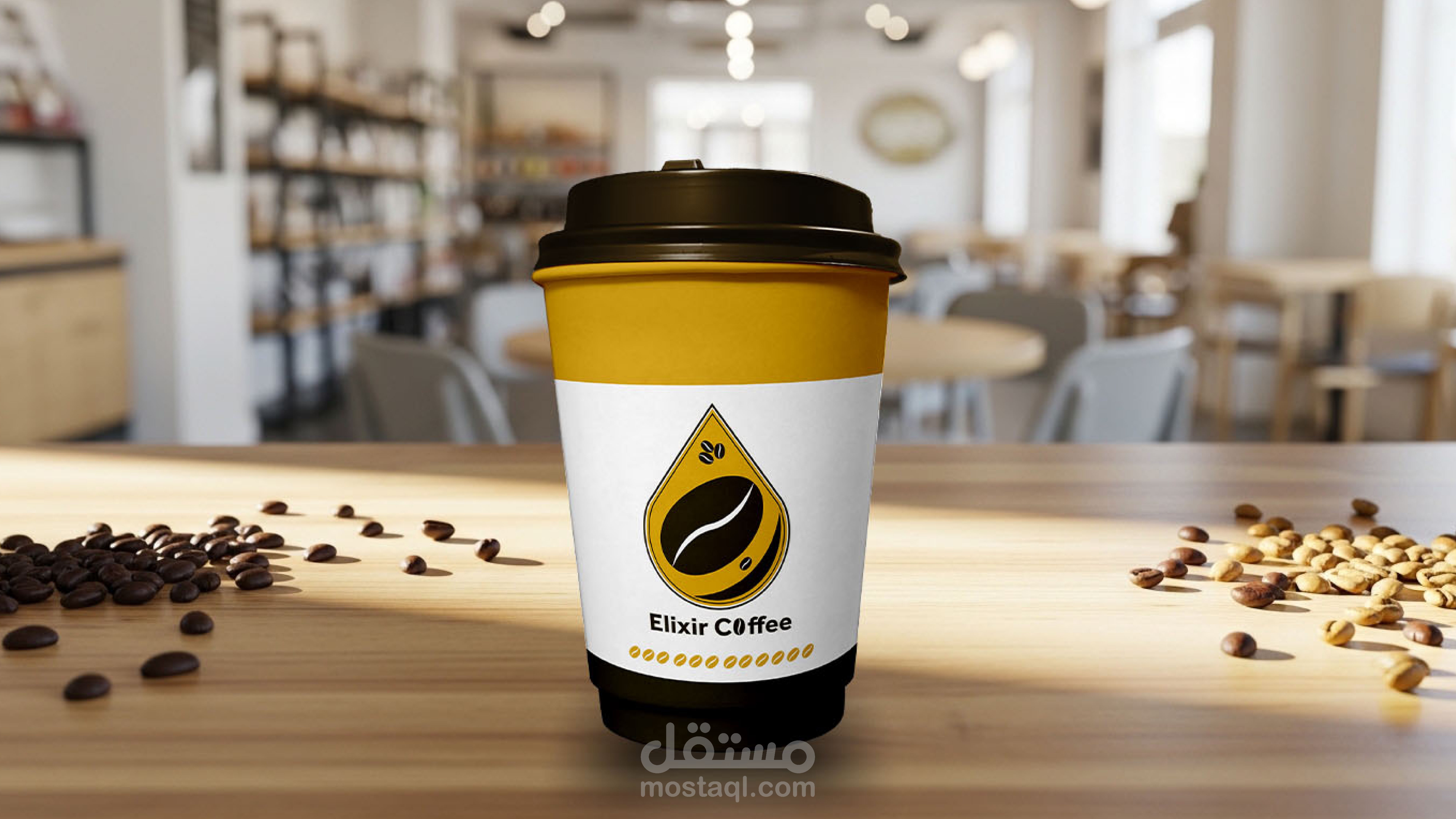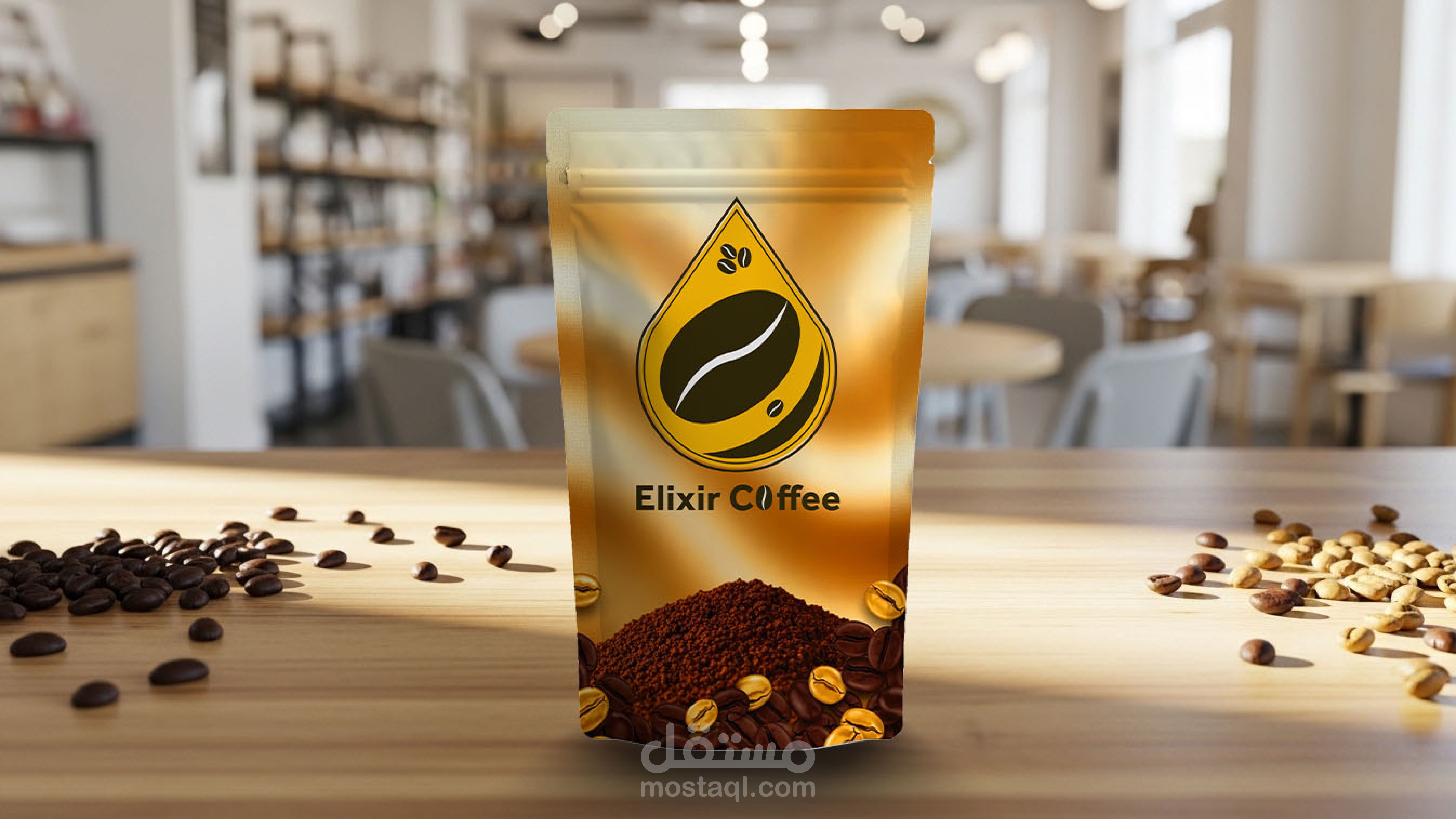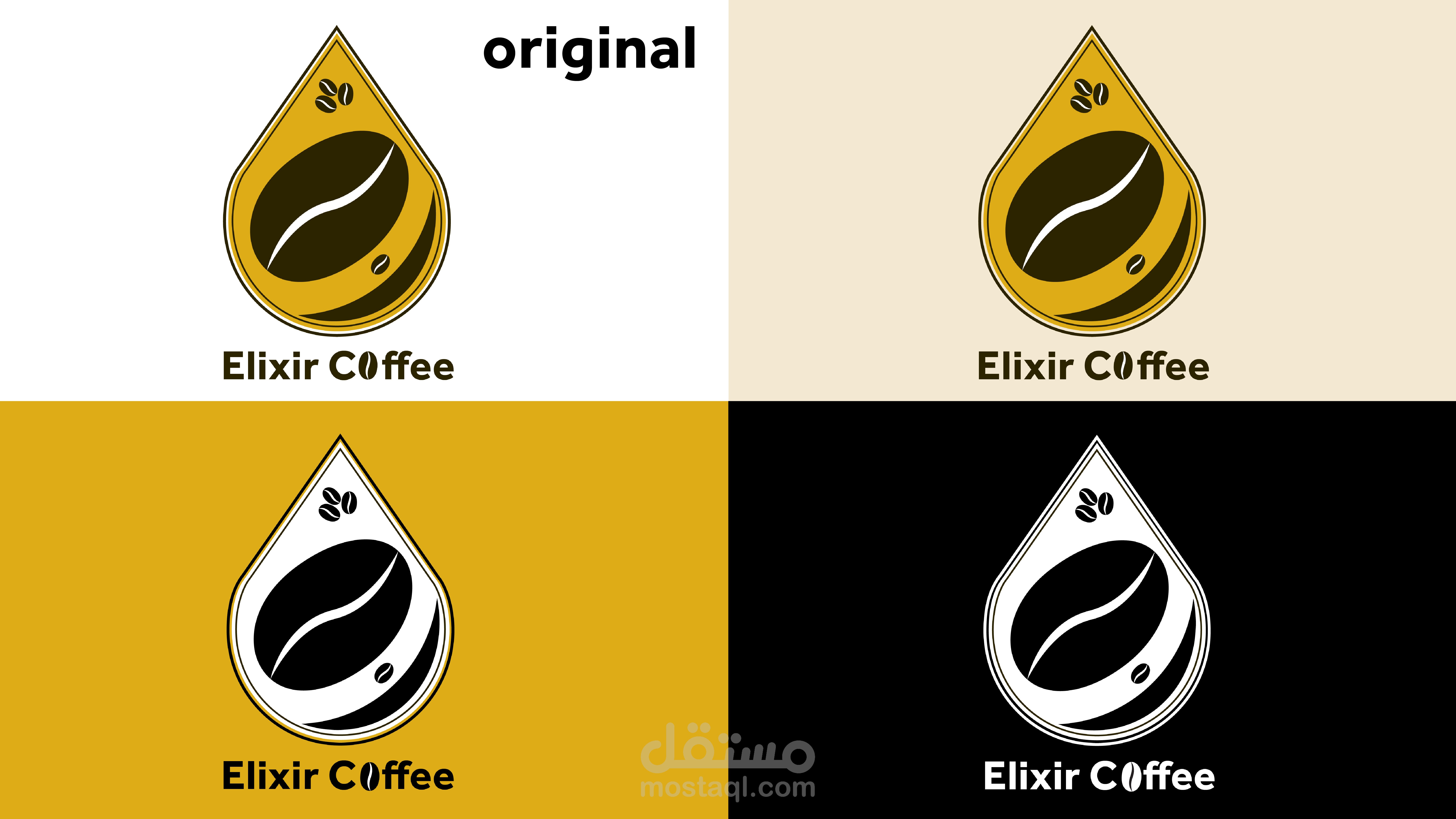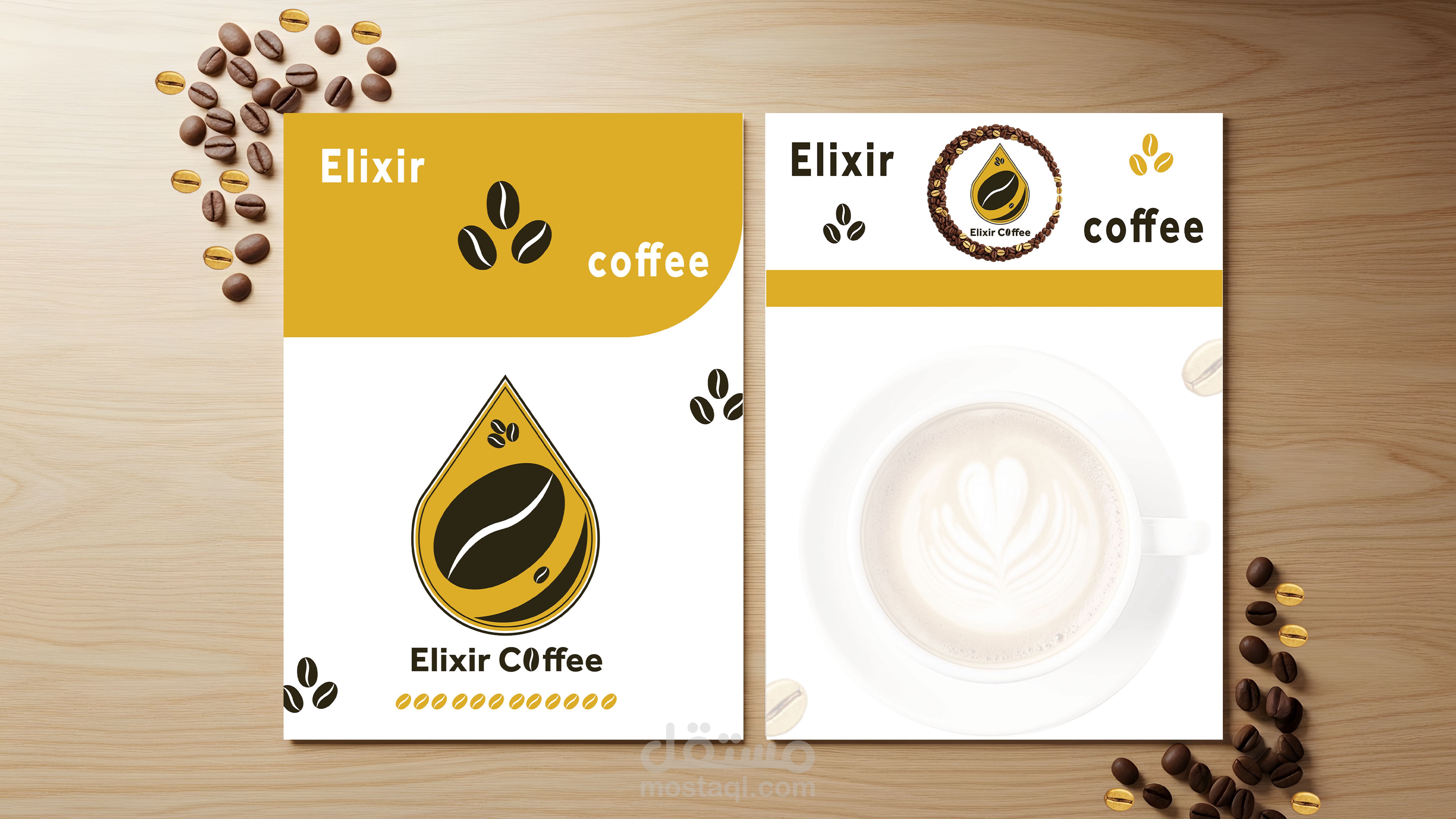تصميم هوية بصرية لبراند قهوة يسمى (elixir coffee) يوحى بالندرة و الفخامة
