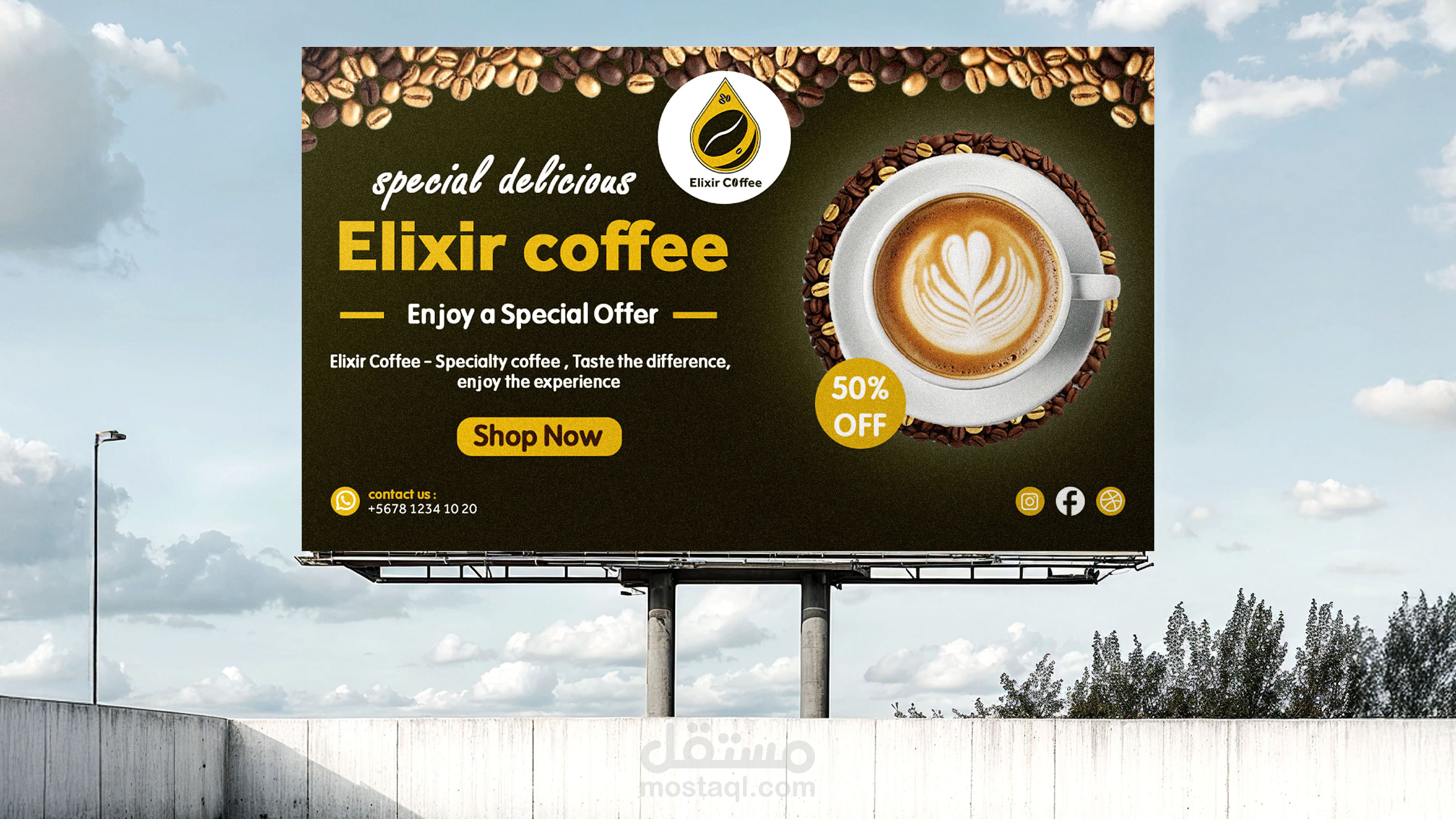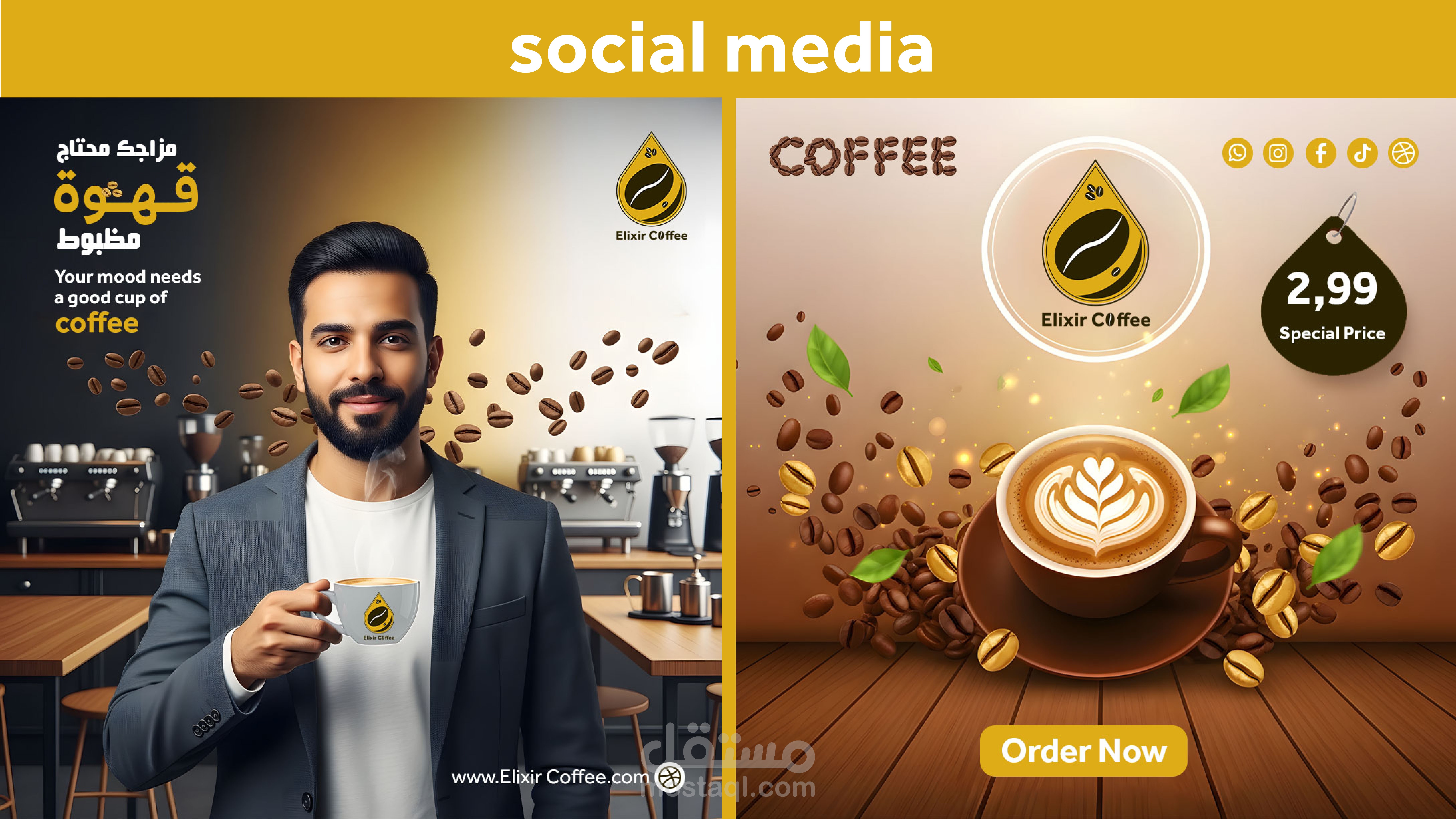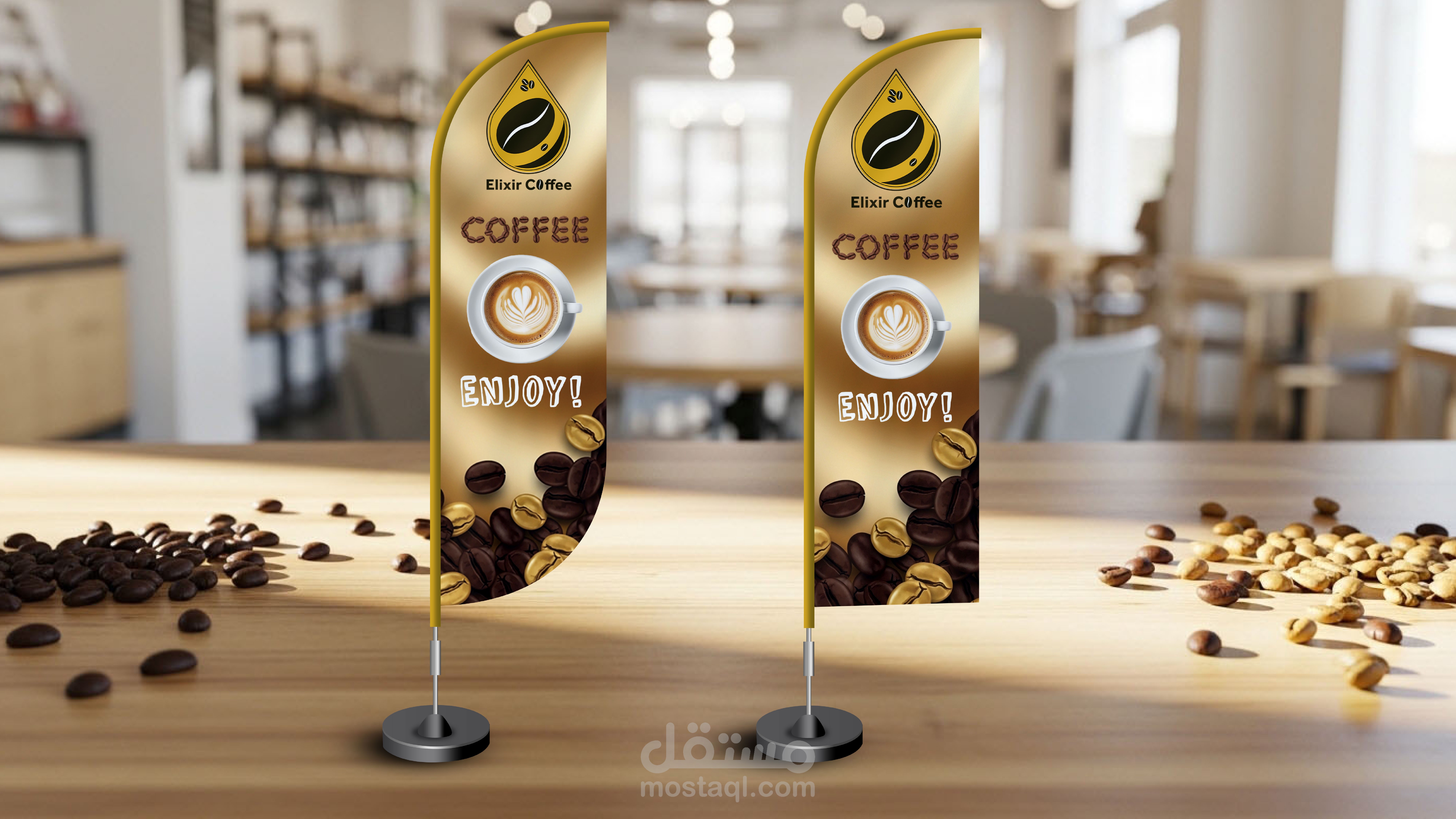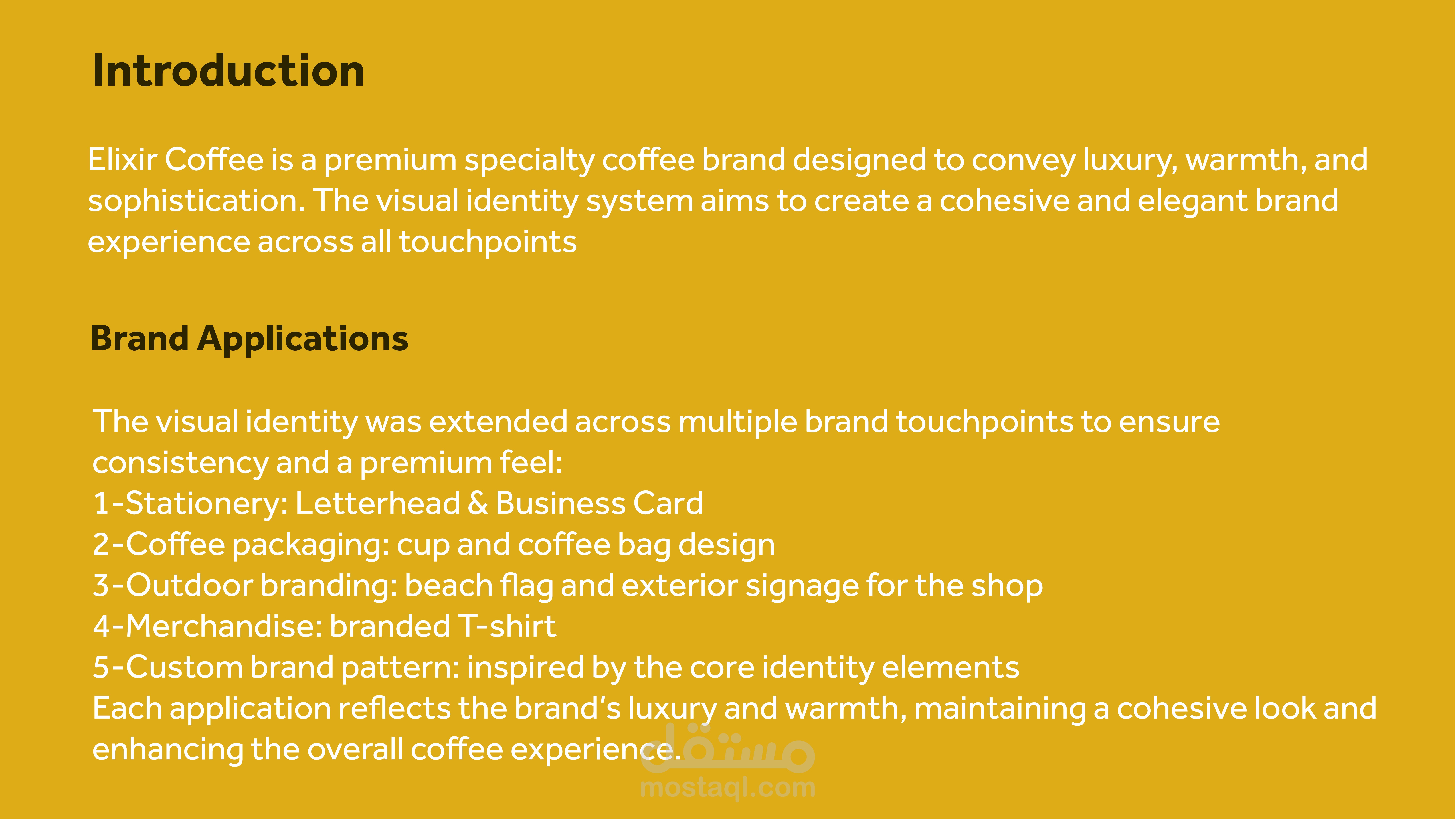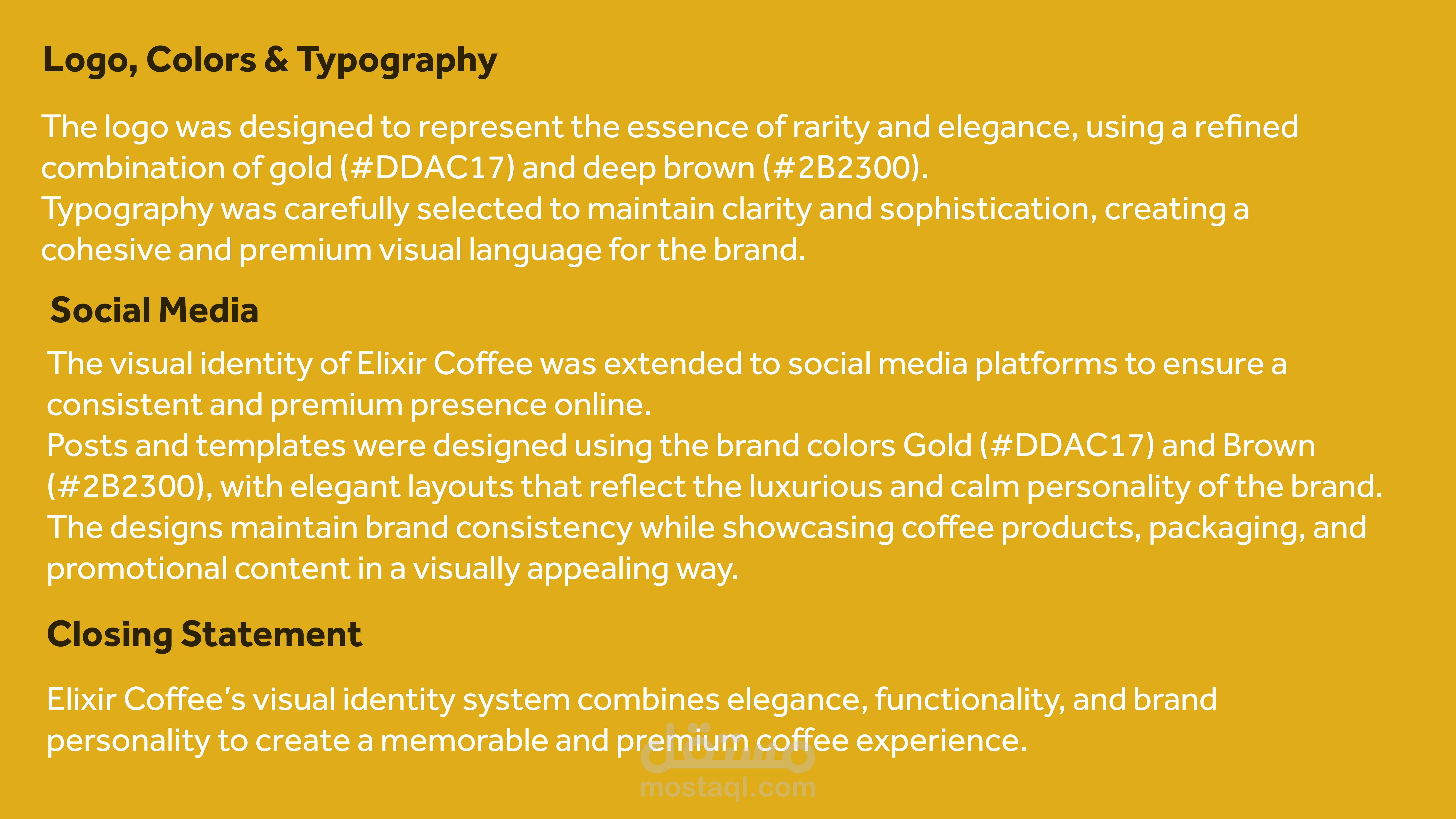 تصميم هوية بصرية لبراند قهوة يسمى (elixir coffee) يوحى بالندرة و الفخامة