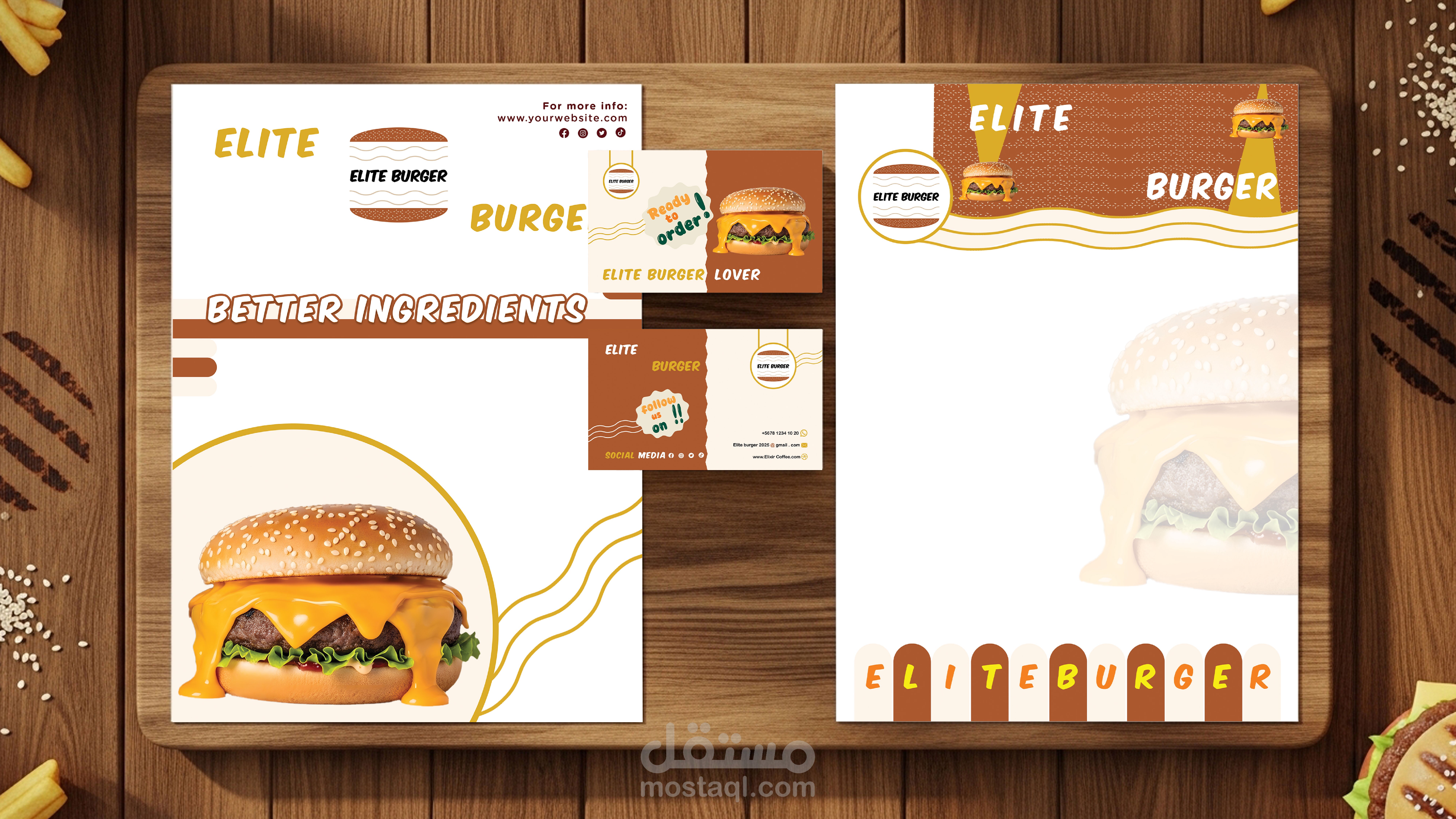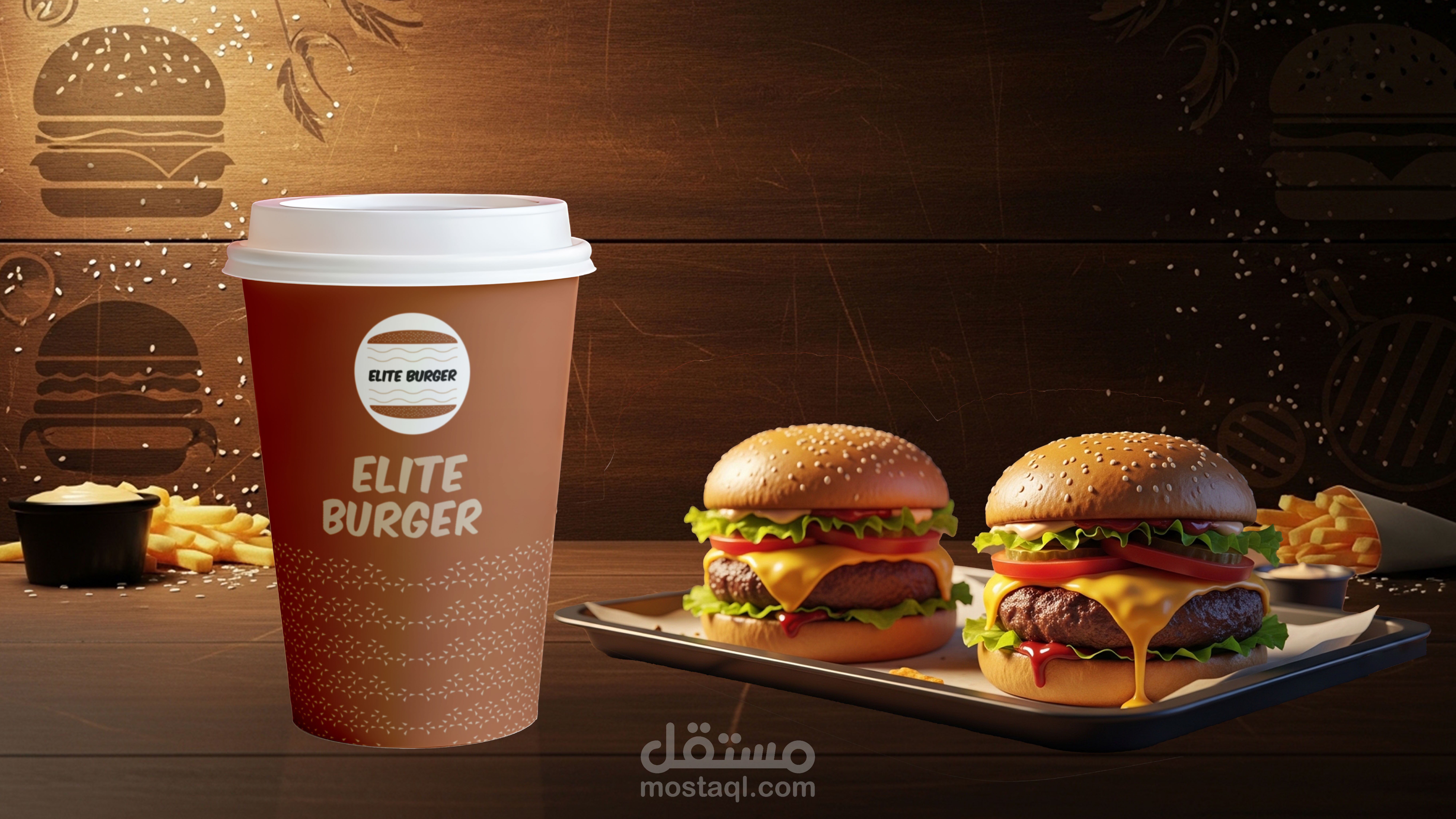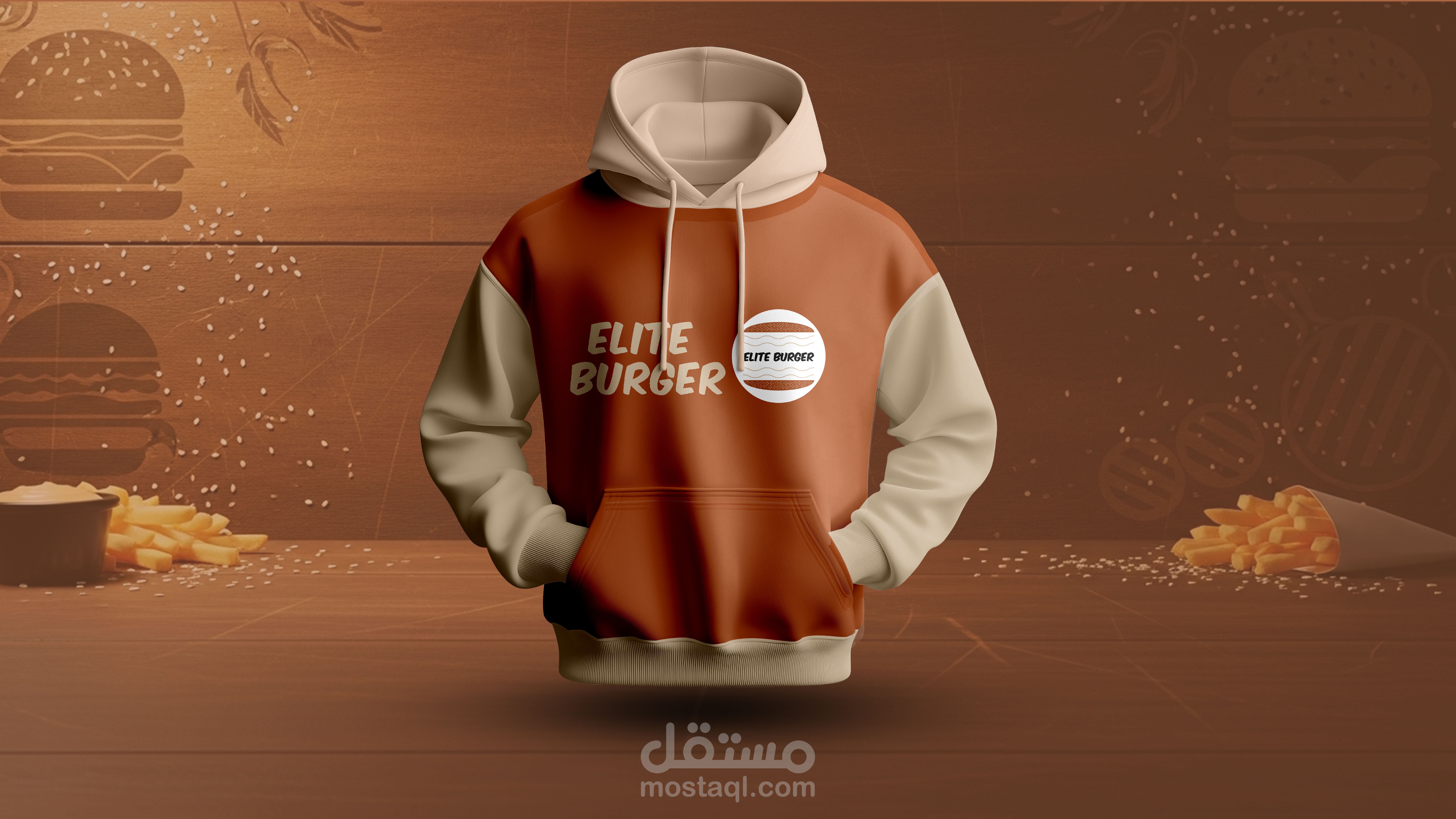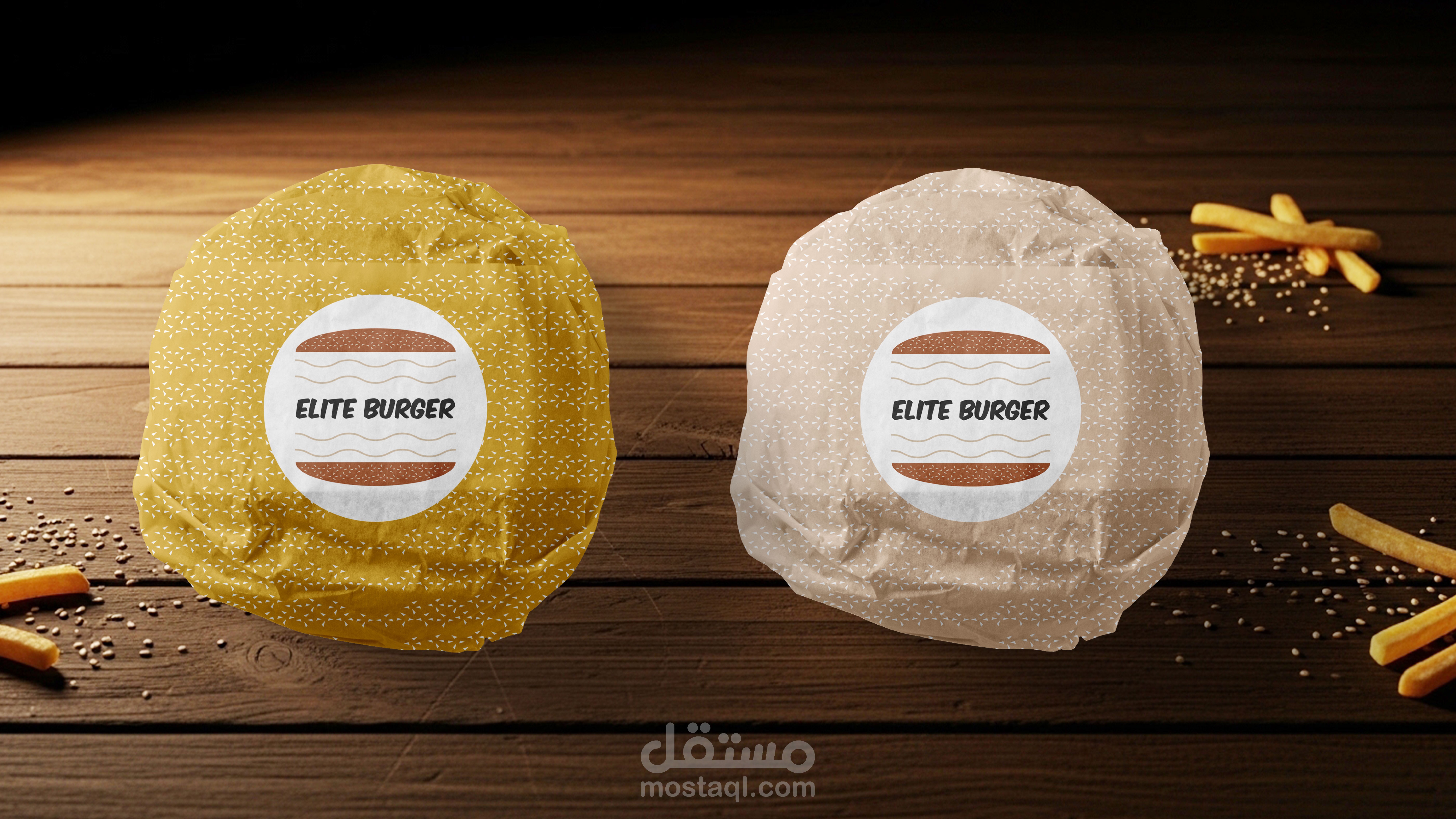 تصميم هوية بصرية لبراند برجر يسمى (Elite burger) الفئة المستهدفة الشباب