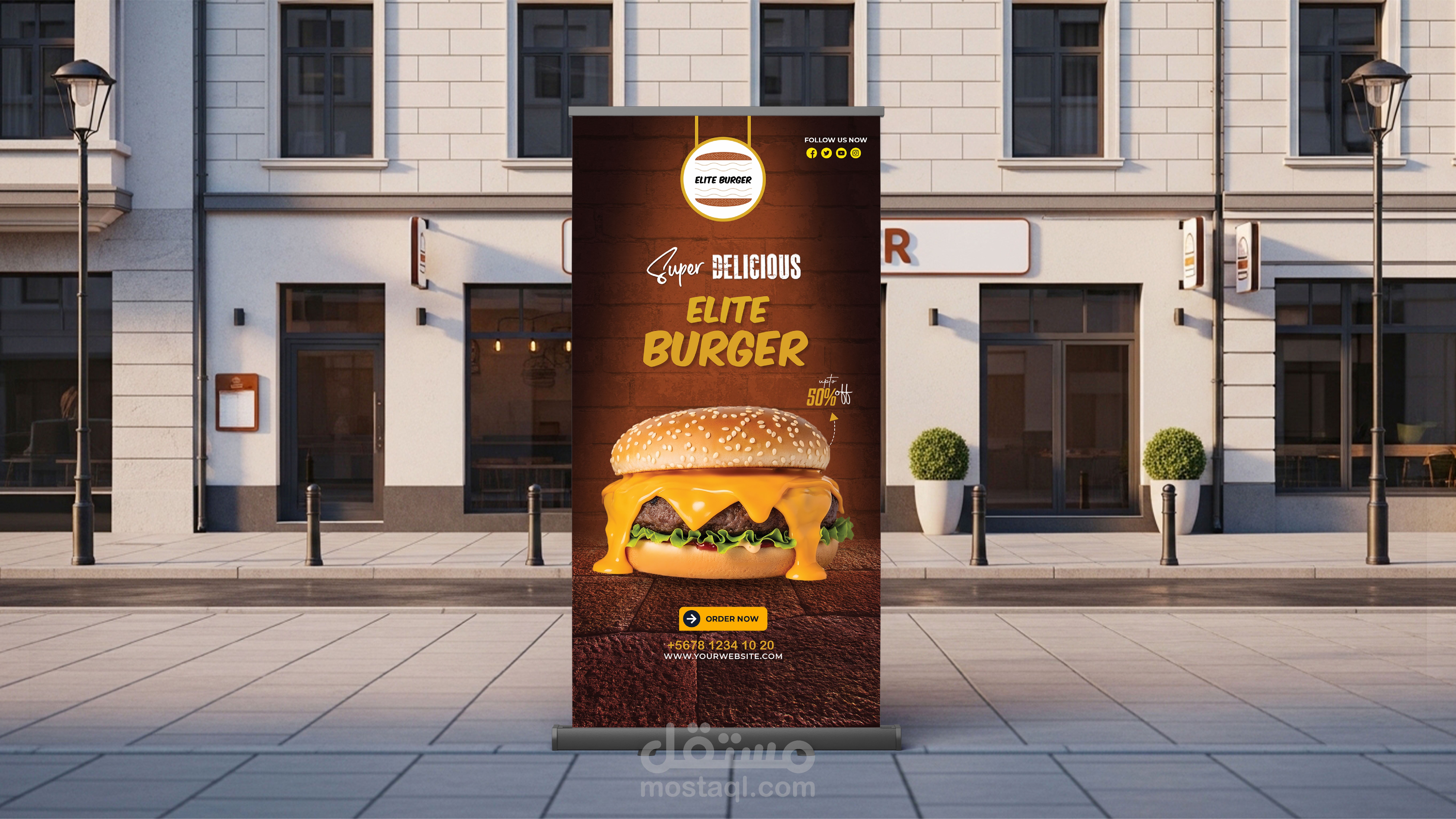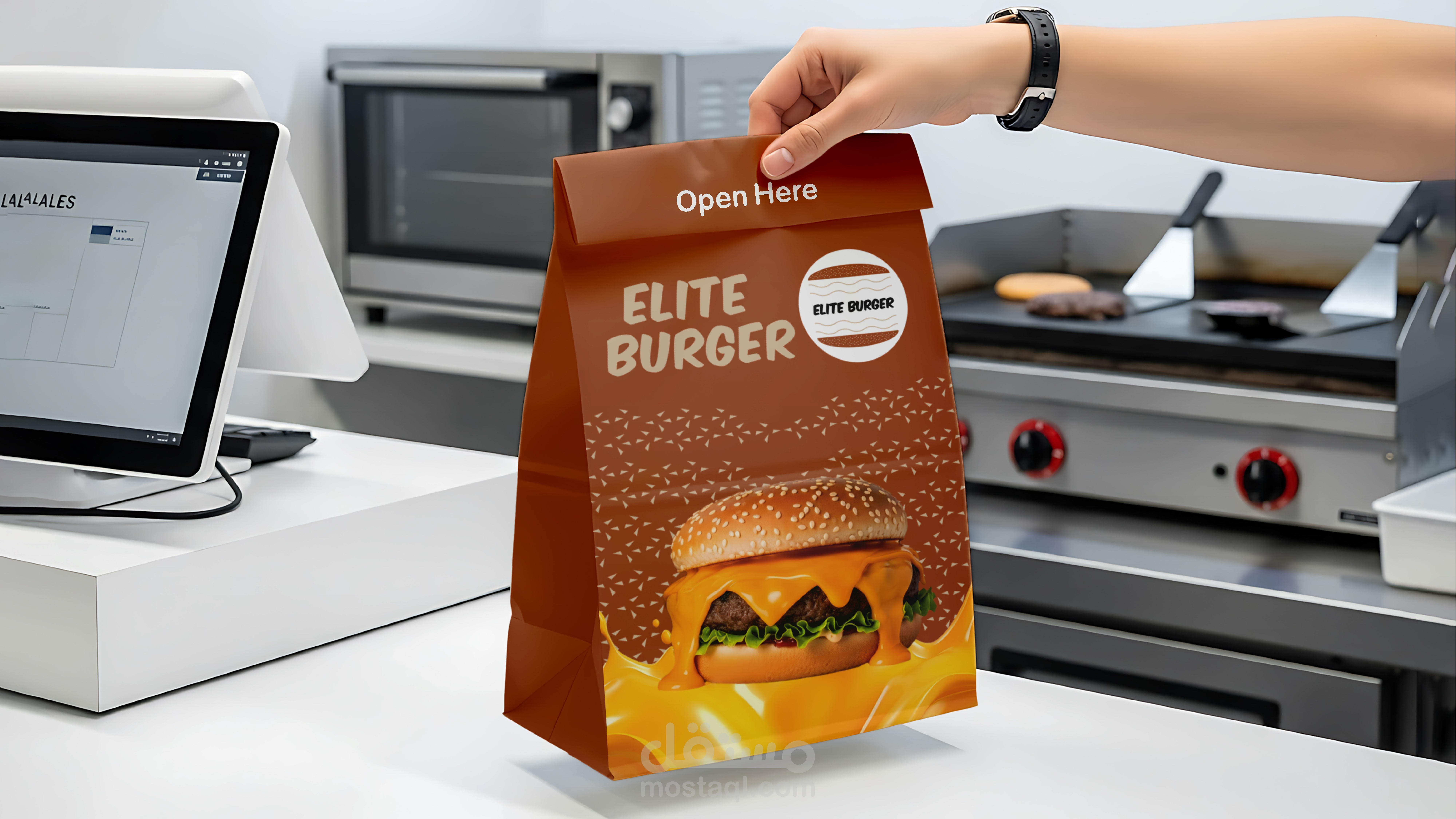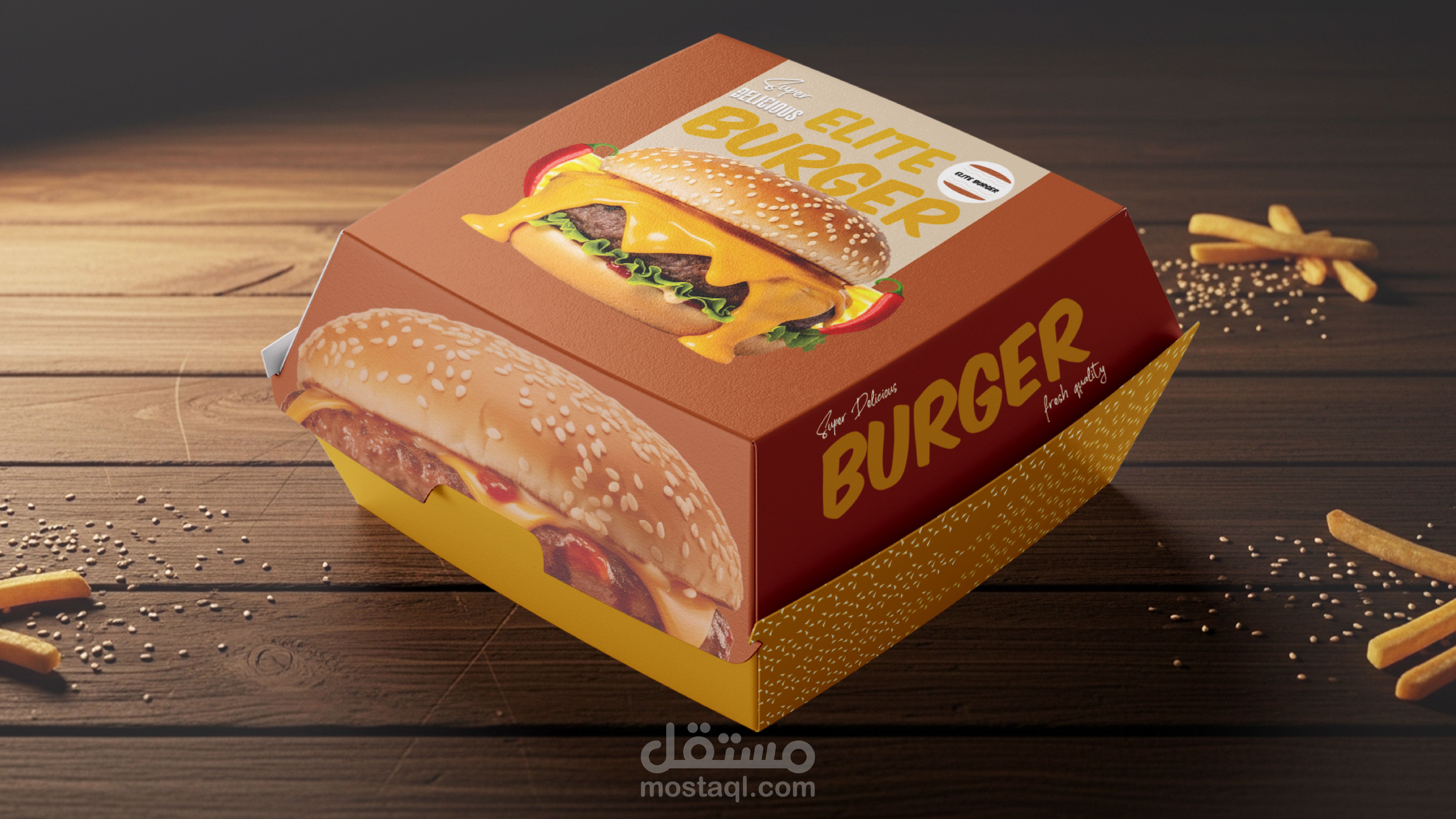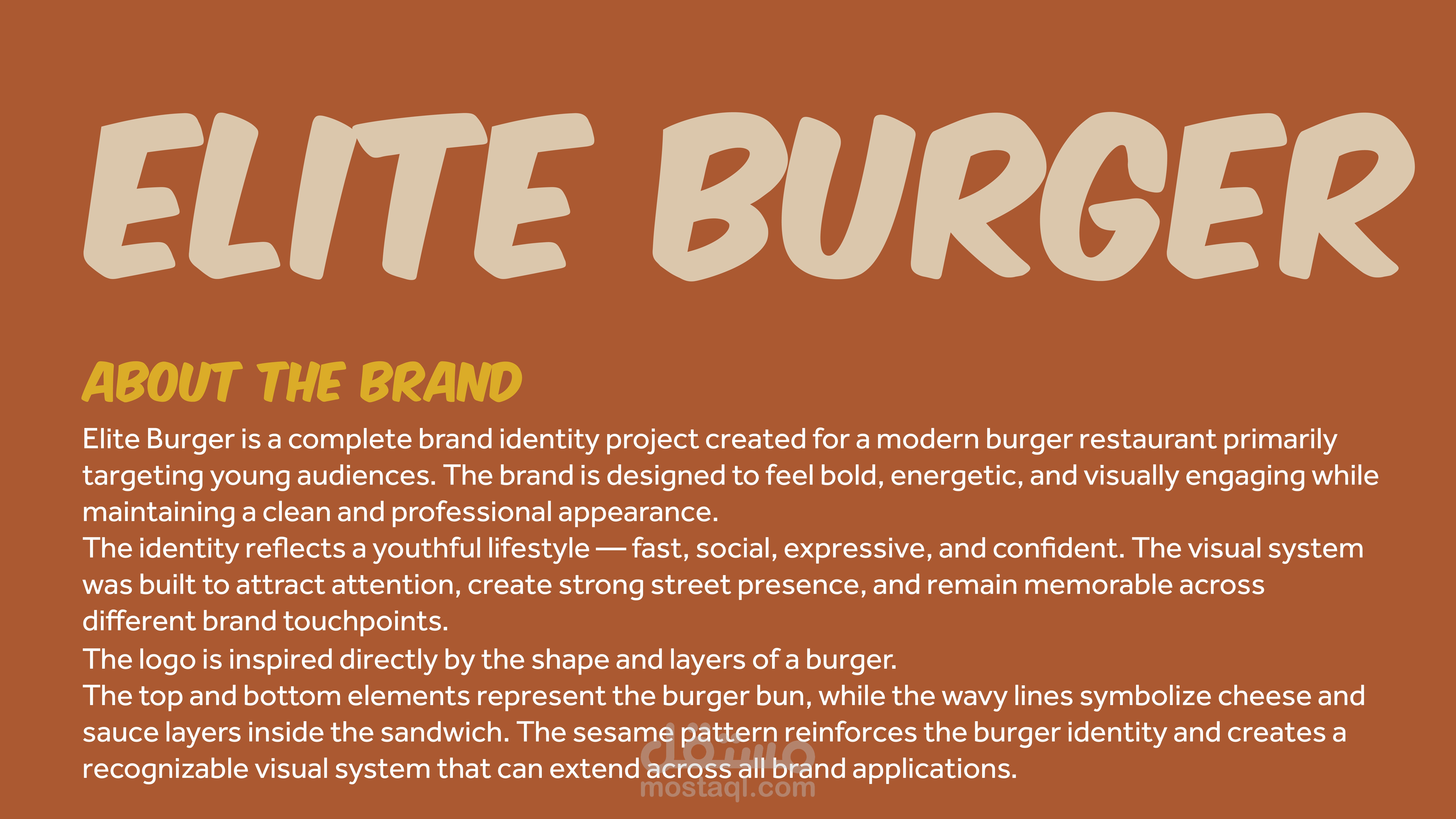 تصميم هوية بصرية لبراند برجر يسمى (Elite burger) الفئة المستهدفة الشباب