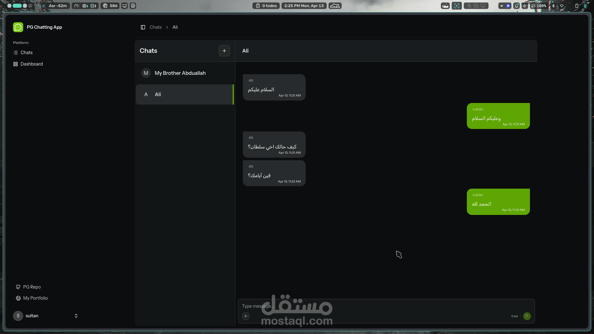 تطبيق محادثة فورية (Real-time) مصمم لتقديم تجربة استخدام سريعة وسلسة مع تركيز قوي على الأمان وقابلية التوسع..