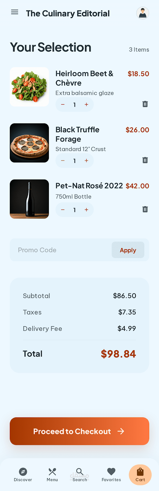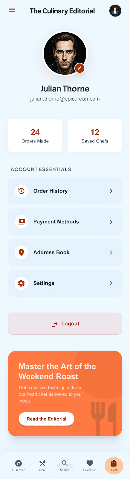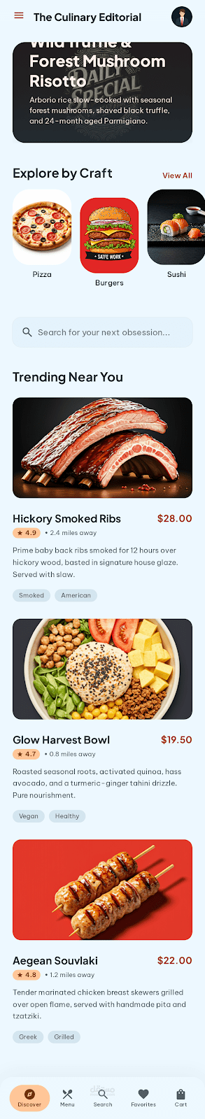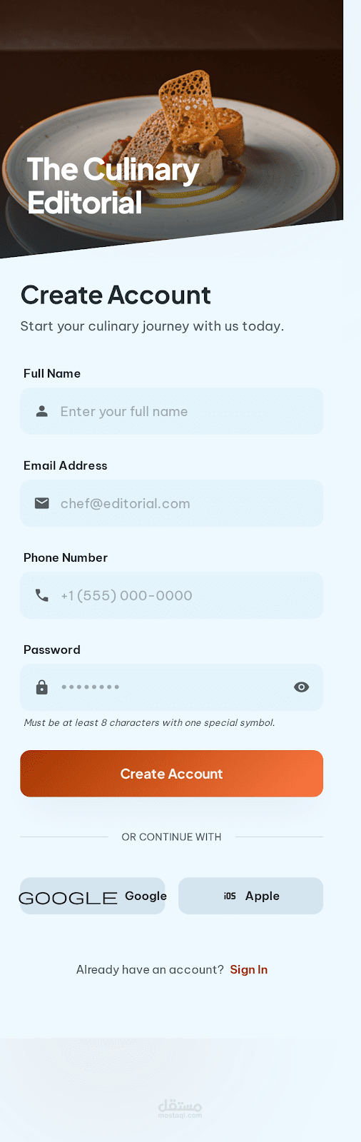 mobile app for a restaurant have login ,signup , menu ,cart , profile