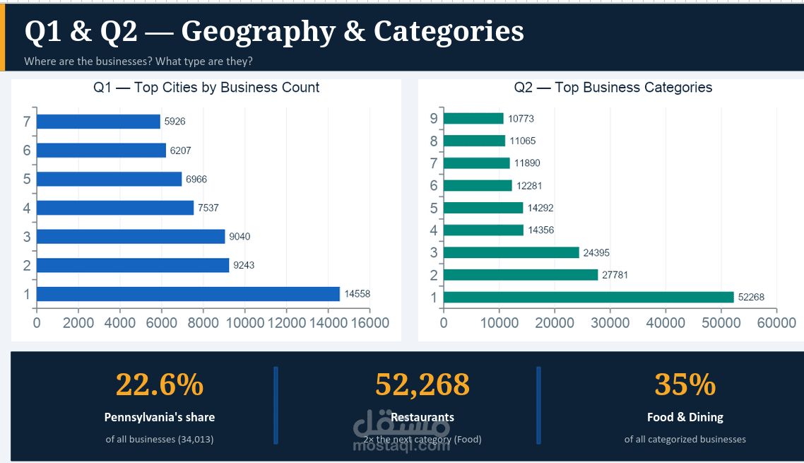 قمت بتنفيذ مشروع متكامل لتحليل البيانات الضخمة باستخدام Apache Spark (PySpark) على Yelp Open Dataset الذي يحتوي على أكثر من 10.2 مليون سجل موزعة على عدة ملفات مترابطة، مما يعكس سيناريو حقيقي لتحليل البيانات على نطاق واسع.