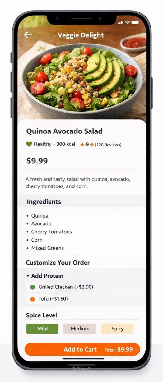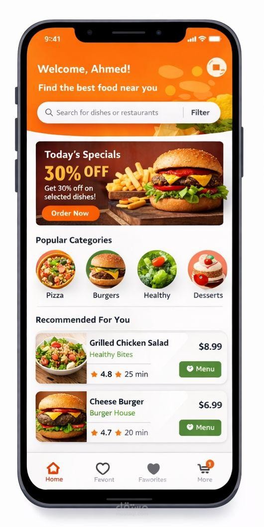 FoodFiesta هو تطبيق حديث لطلب الطعام بيقدّم تجربة سهلة وسريعة للمستخدمين في اكتشاف أفضل المطاعم والأكلات القريبة منهم. التطبيق مصمم بواجهة عصرية وسلسة تساعد المستخدم يتصفح ويطلب الأكل في ثواني.