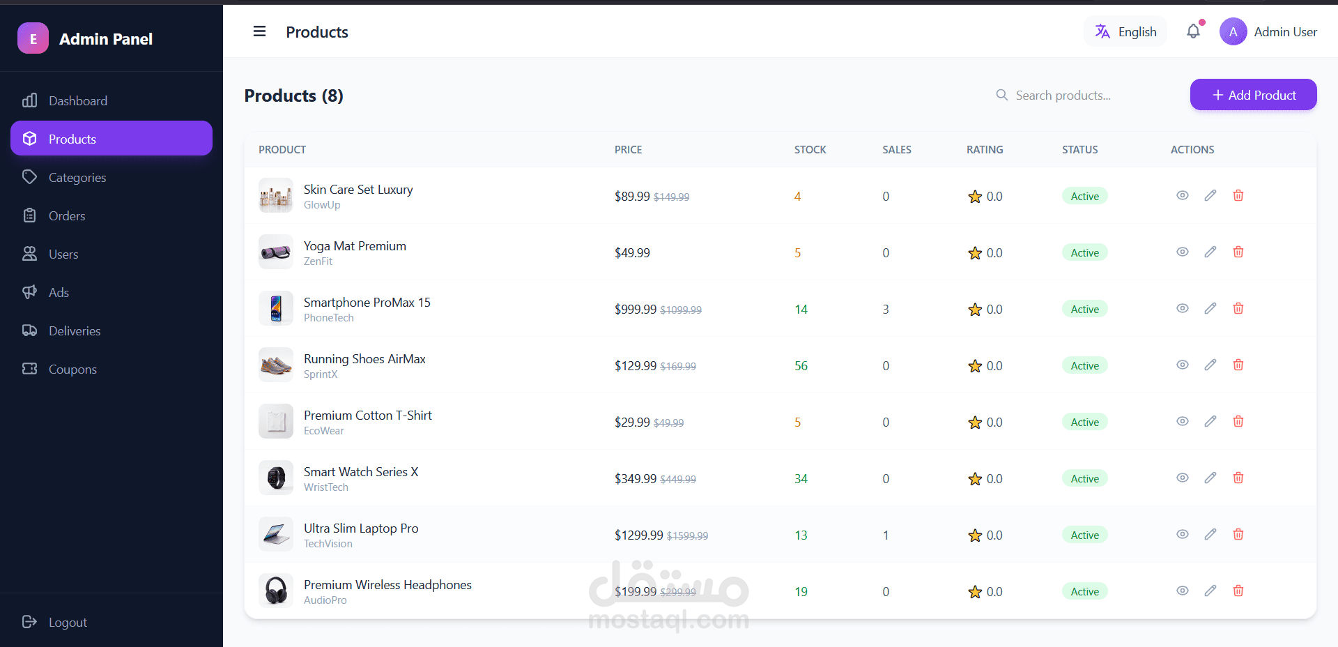 • إدارة المنتجات (إضافة / تعديل / حذف)