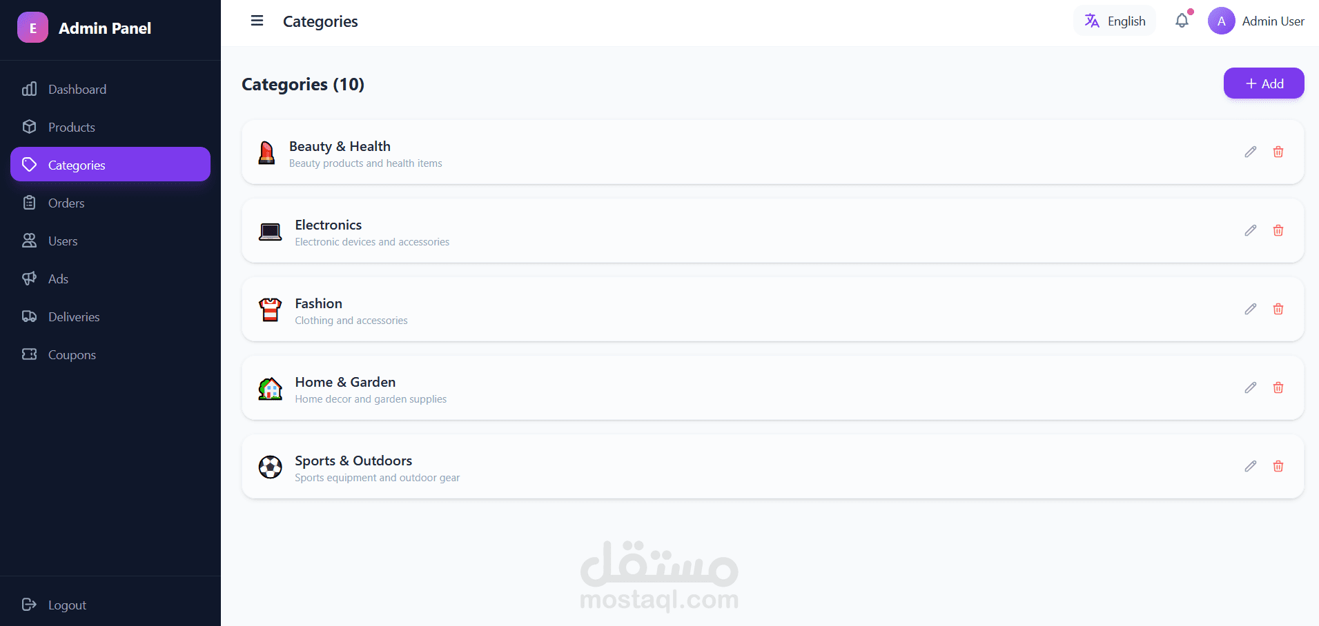 • إدارة الأقسام (Categories)